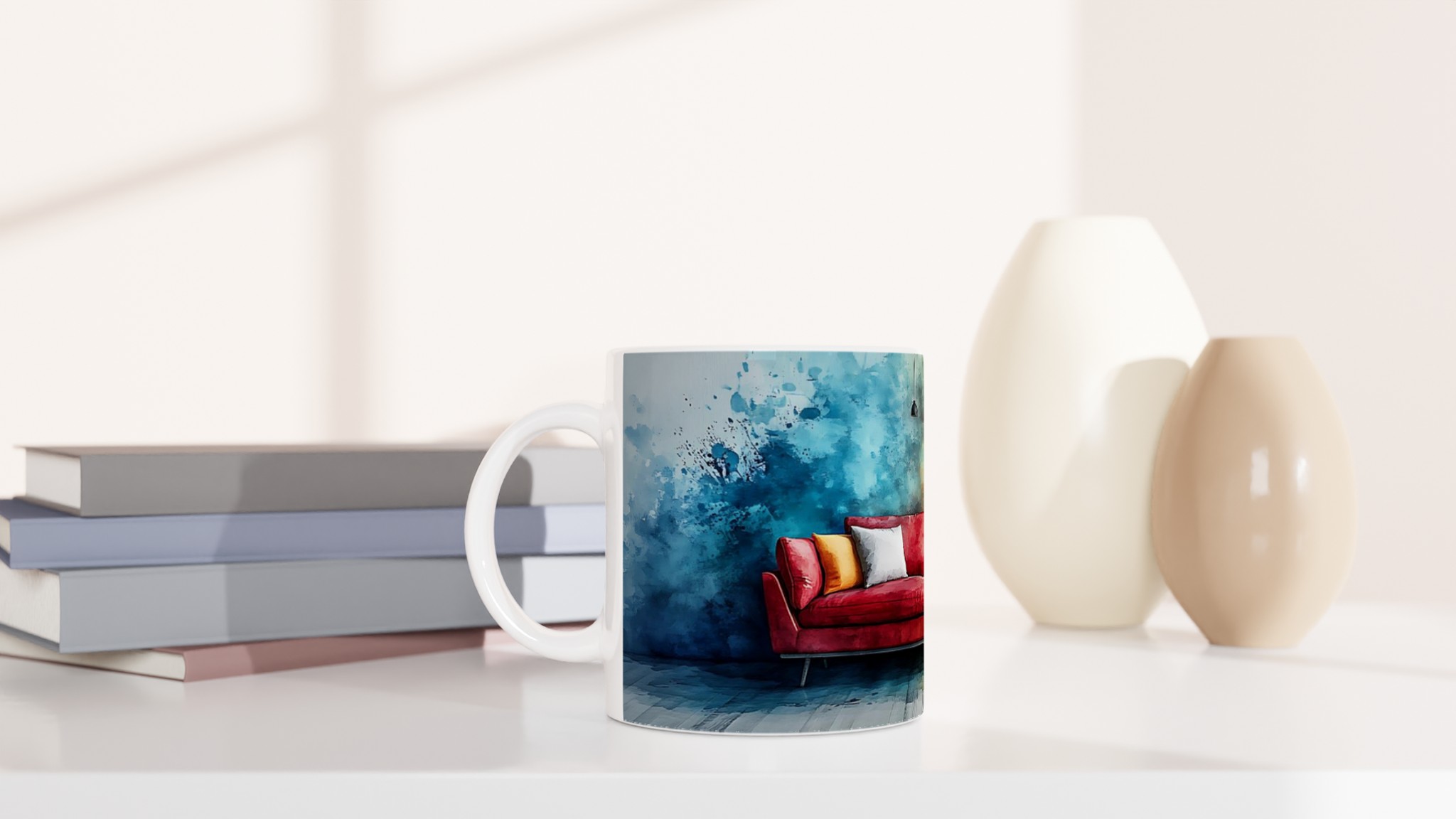 Abstrakt Akvarell 11oz Keramisk Mugg – Färgglad Design för Kaffet, i ditt val av 7 nyanser