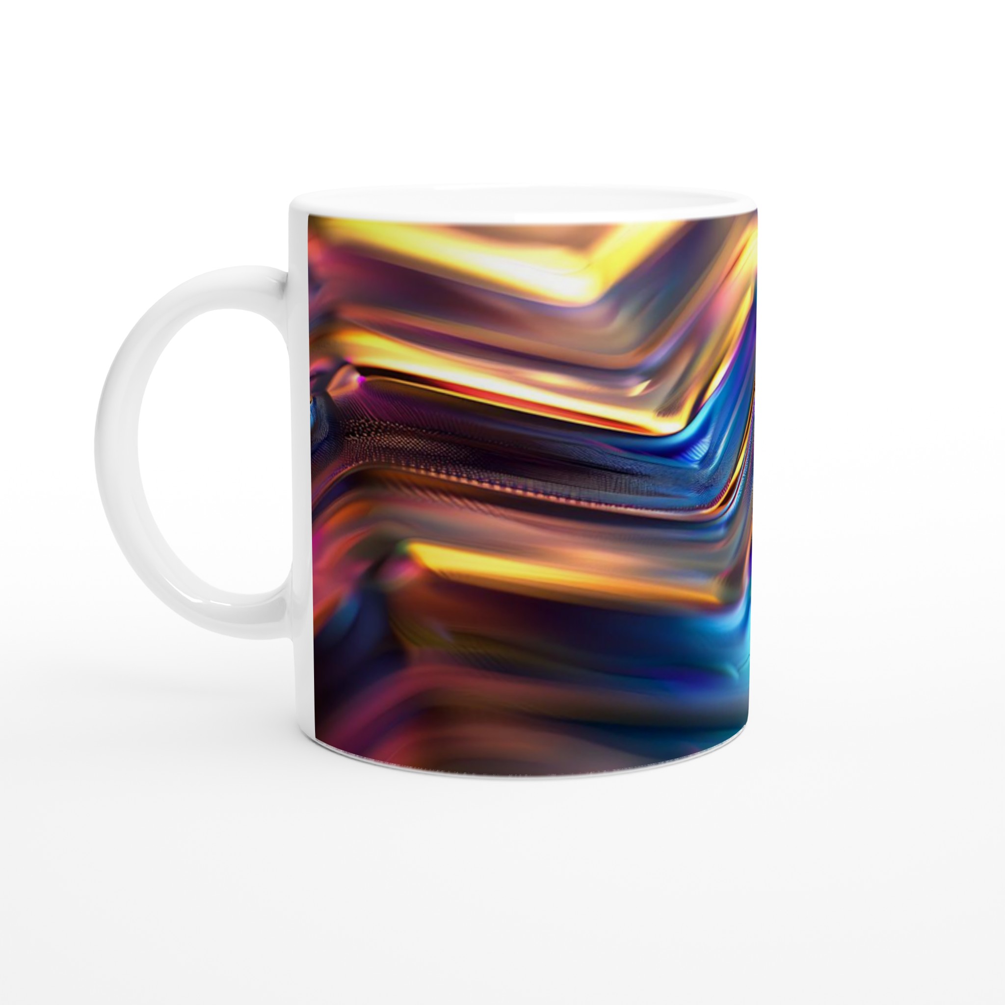 Inspirerad av dynamiska färgskiftningar och den eteriska skönheten hos norrskenet, fångar denna mugg en abstrakt aura av ljus och rörelse. Den blanka vita ytan ger ett skarpt och levande tryck som verkligen sticker ut, oavsett om det är en personlig design, ett roligt citat eller en present till någon du tycker om.