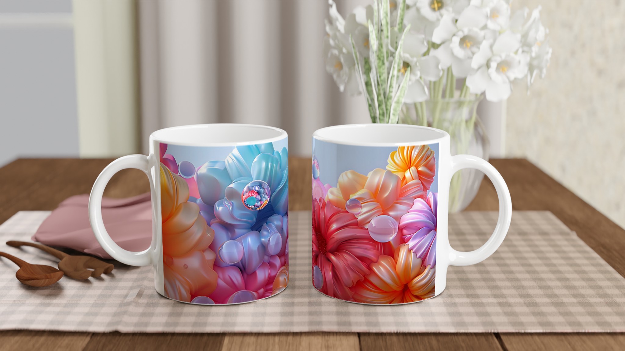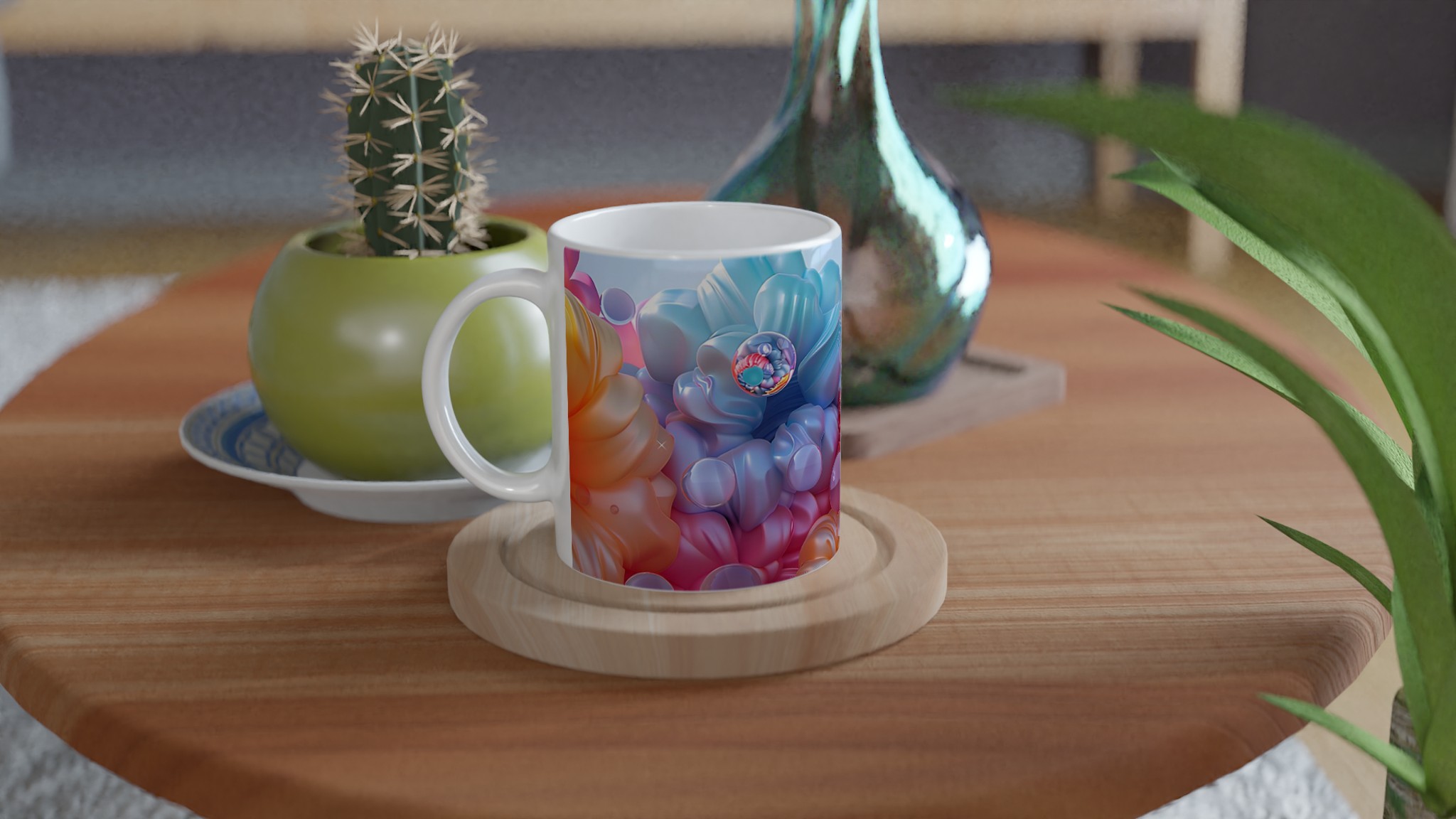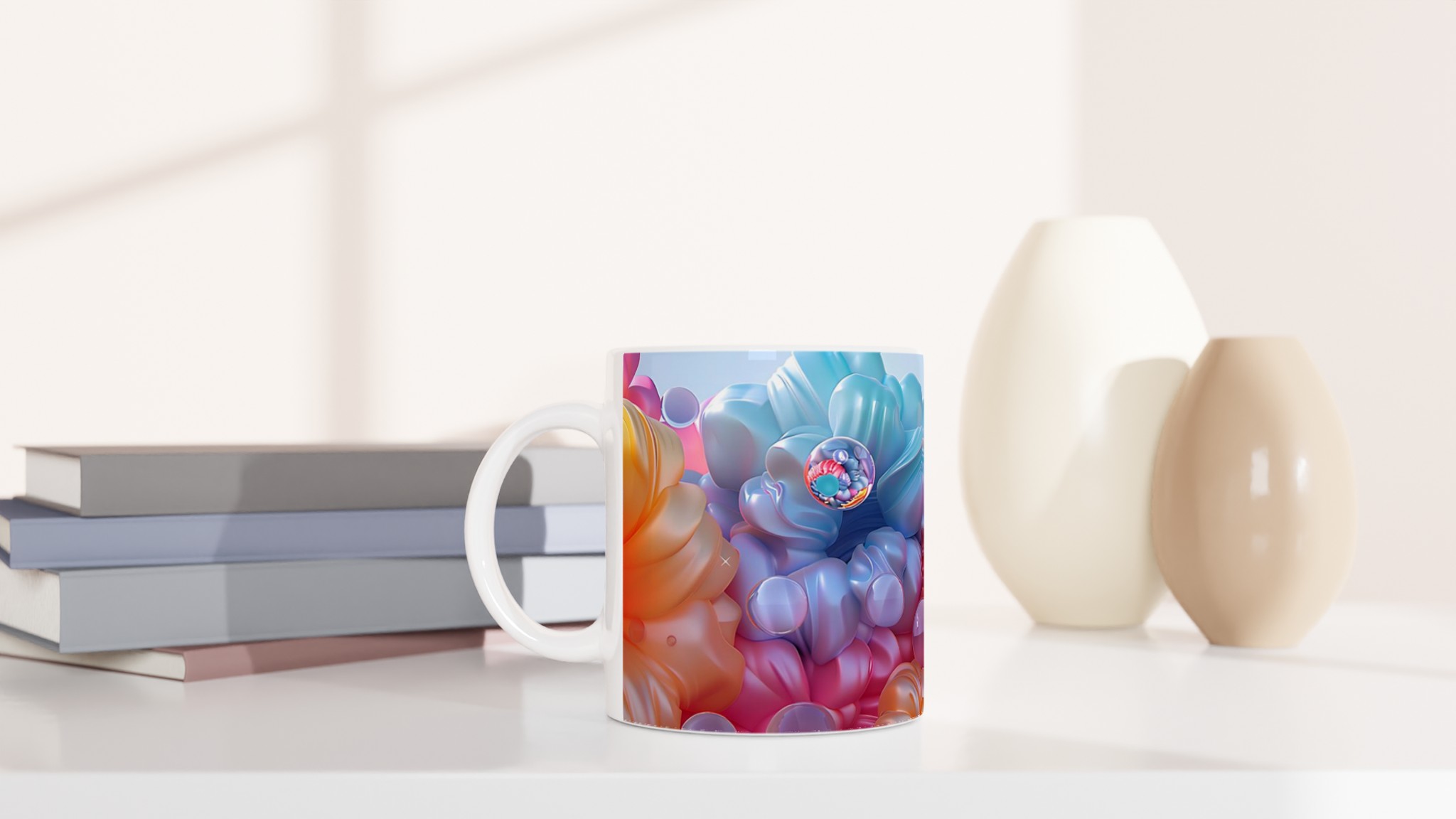 Den blanka ytan säkerställer att trycket framträder med enastående klarhet och färgåtergivning, vilket gör varje detalj i den abstrakta designen levande. Förutom sin skönhet är muggen byggd för att hålla – den är både mikrovågsugn- och diskmaskinssäker, så att du enkelt kan njuta av din favoritdryck om och om igen utan att trycket förlorar sin lyster. Med en volym på 11 oz (ca 3,25 dl) är den den perfekta storleken för både kontoret och hemmets lugna stunder. Dessutom kan du välja din mugg i en färg som passar just dig – från klassiskt Ceramic White till pigga nyanser som Ceramic Yellow, Pink, Green, Red, Black eller Blue.