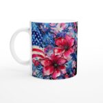 Låt din kaffestund blomstra med denna enastående keramiska mugg, prydd med en abstrakt explosion av färgstarka blommor. Den djärva paletten av fuchsia, lila och turkos, kompletterad med inslag av den amerikanska flaggan, skapar en dynamisk och konstnärlig känsla. Den blanka vita ytan framhäver tryckets livfulla färger, vilket gör varje klunk till en visuell njutning. Oavsett om det är morgonkaffet, kvällens varma choklad eller en lugn stund med te, blir denna mugg snabbt en favorit.