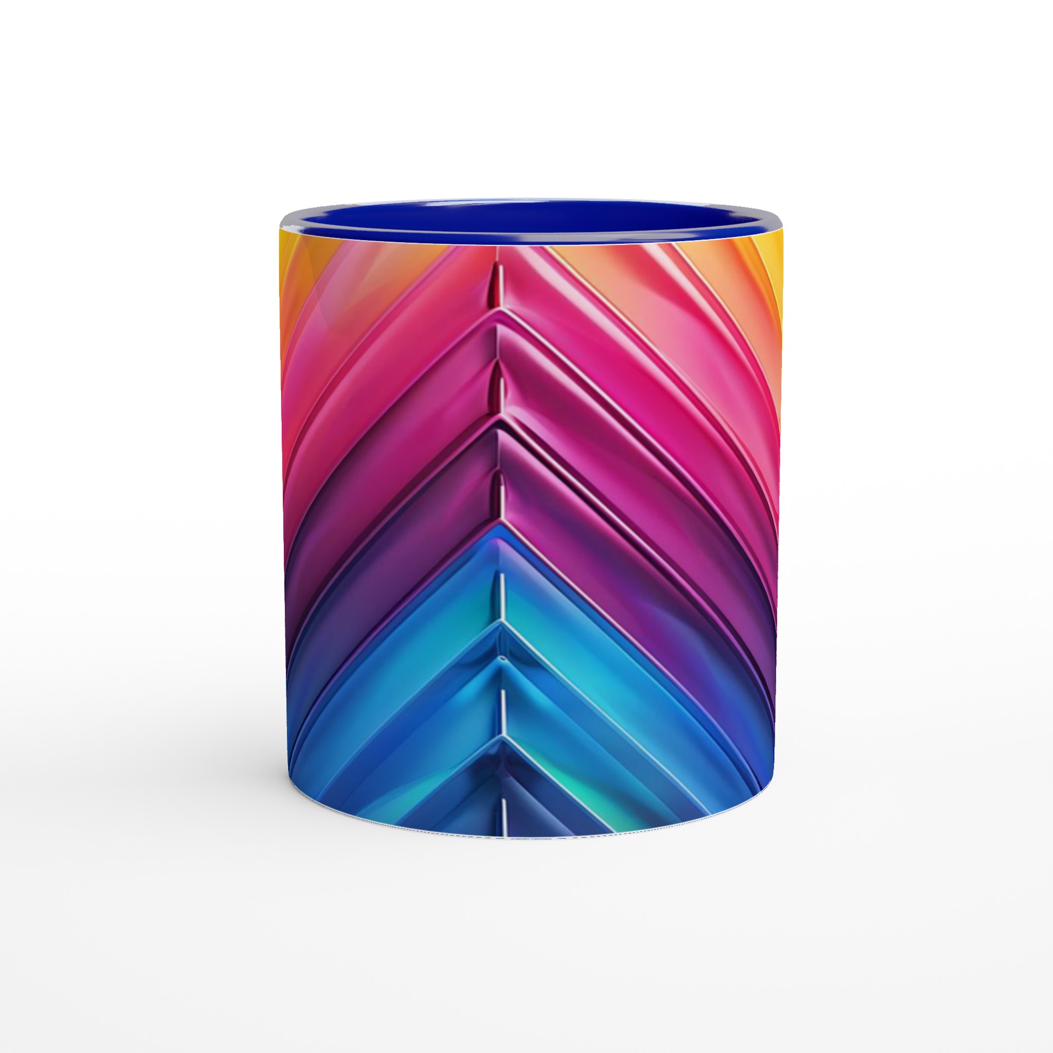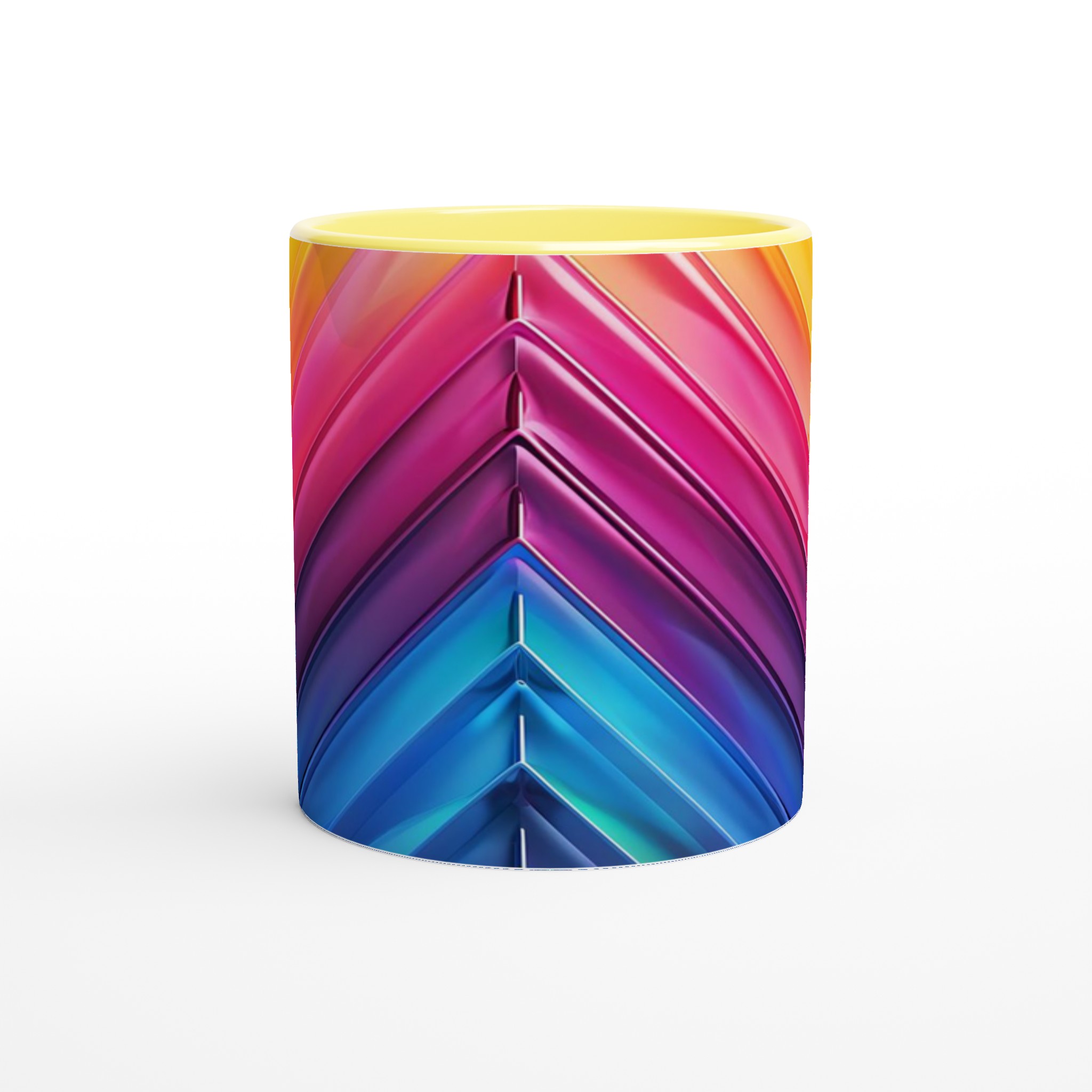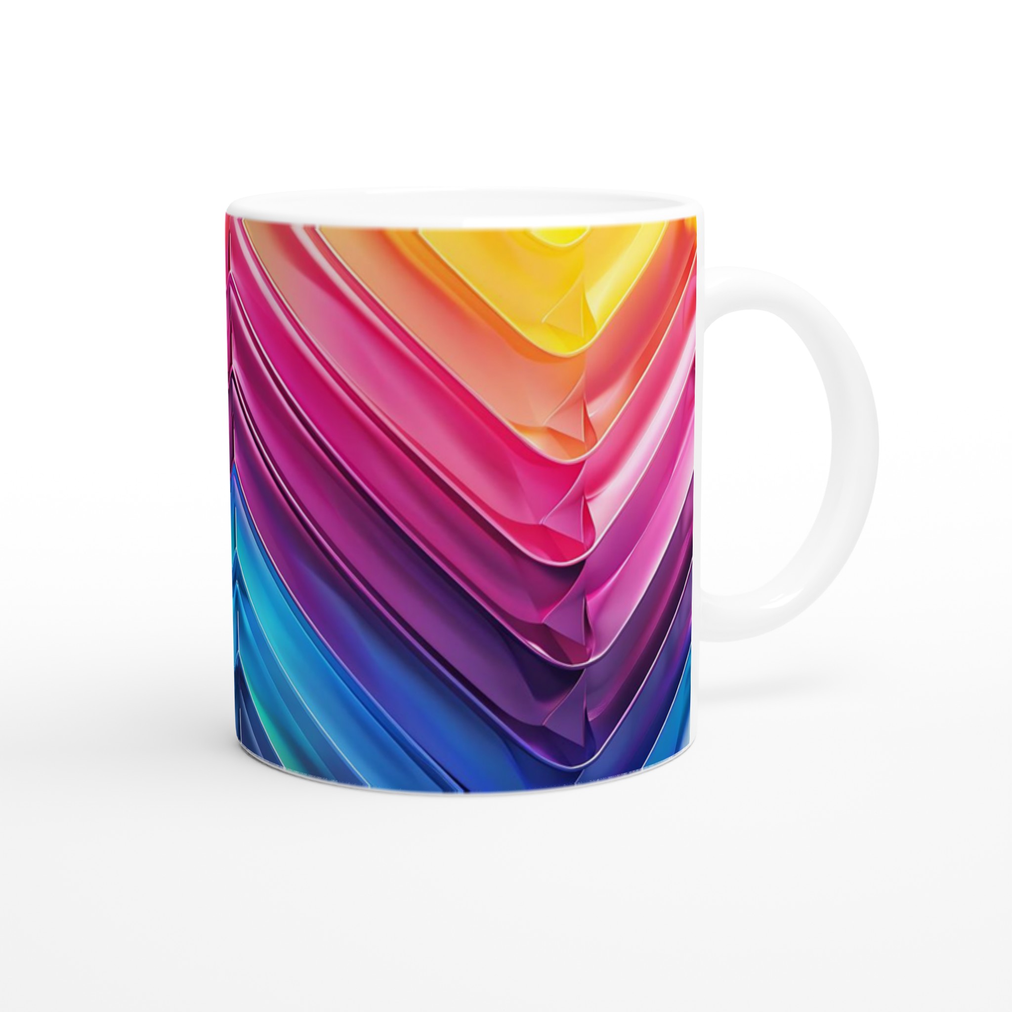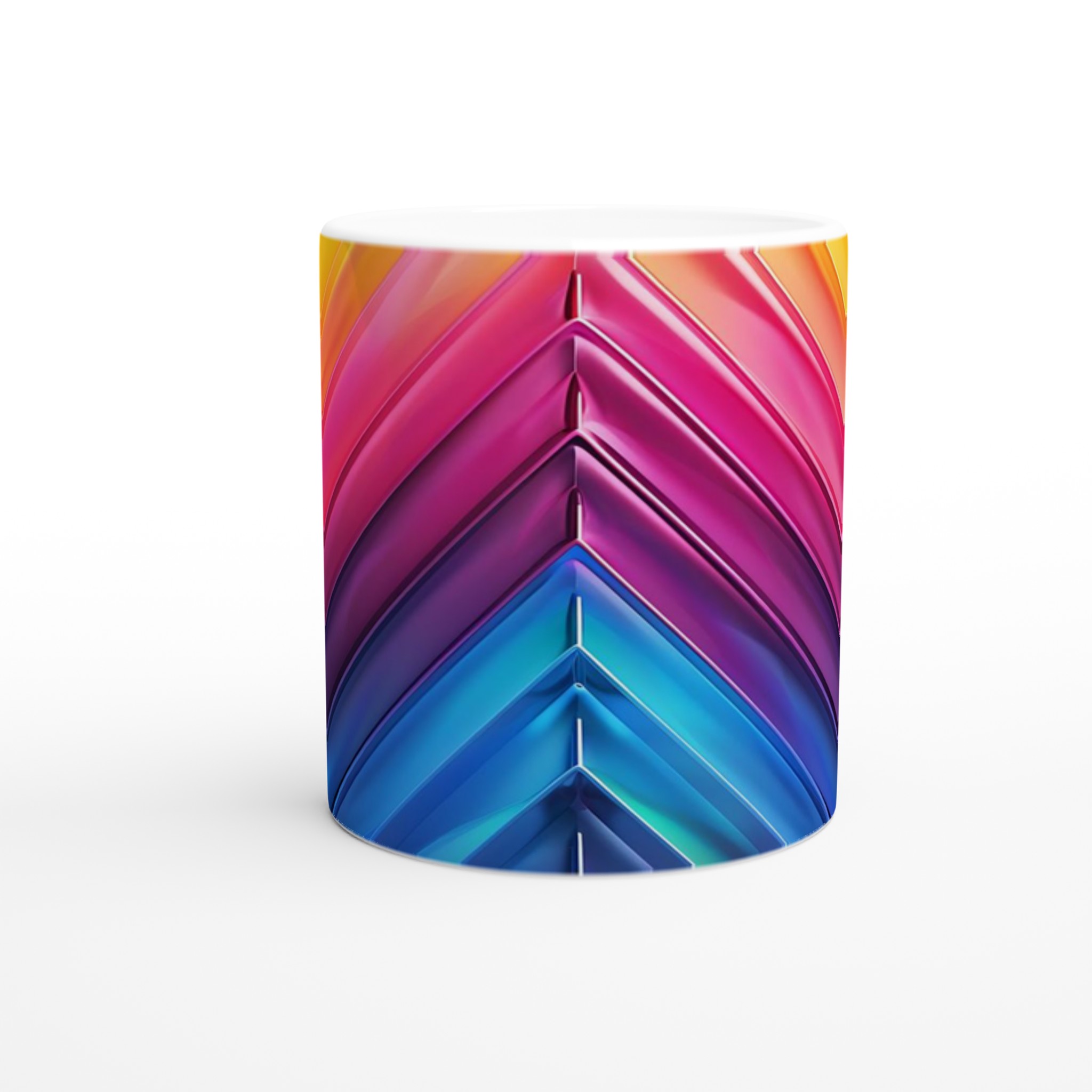 Fånga dagens energi med vår Abstrakt Chevron Keramiska Mugg, där levande färggradienter möter modern design. Denna stilrena och vackra keramikmugg är perfekt för alla dagens stunder – morgonkaffet, en värmande kopp te eller en härlig varm choklad. Med dess dynamiska färgsättning från soligt gult till djupa blå toner, skapar den en känsla av rörelse och modern elegans som livar upp varje paus. Den blanka vita ytan gör att trycken framträder klart och färgstarkt, vilket gör muggen till en riktig favorit i vardagen. Tack vare den höga kvaliteten behåller trycket sin lyster även efter många omgångar i både mikrovågsugn och diskmaskin.