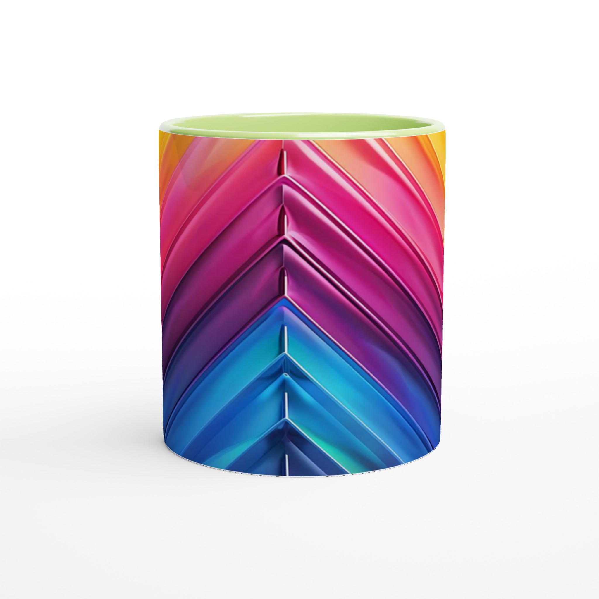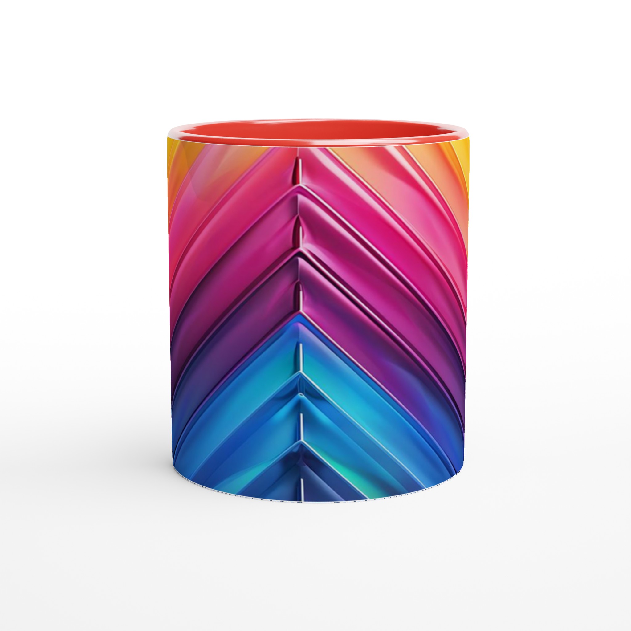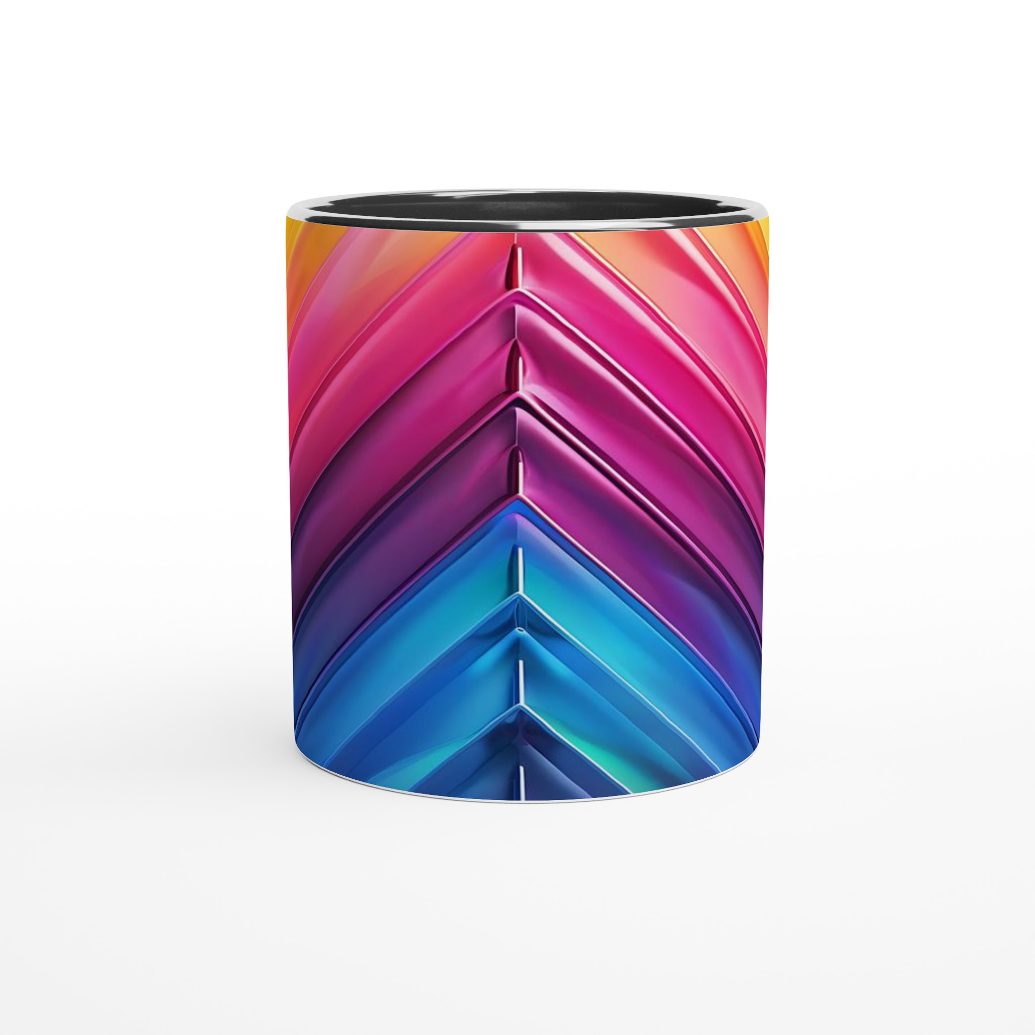 Fånga dagens energi med vår Abstrakt Chevron Keramiska Mugg, där levande färggradienter möter modern design. Denna stilrena och vackra keramikmugg är perfekt för alla dagens stunder – morgonkaffet, en värmande kopp te eller en härlig varm choklad. Med dess dynamiska färgsättning från soligt gult till djupa blå toner, skapar den en känsla av rörelse och modern elegans som livar upp varje paus. Den blanka vita ytan gör att trycken framträder klart och färgstarkt, vilket gör muggen till en riktig favorit i vardagen. Tack vare den höga kvaliteten behåller trycket sin lyster även efter många omgångar i både mikrovågsugn och diskmaskin.