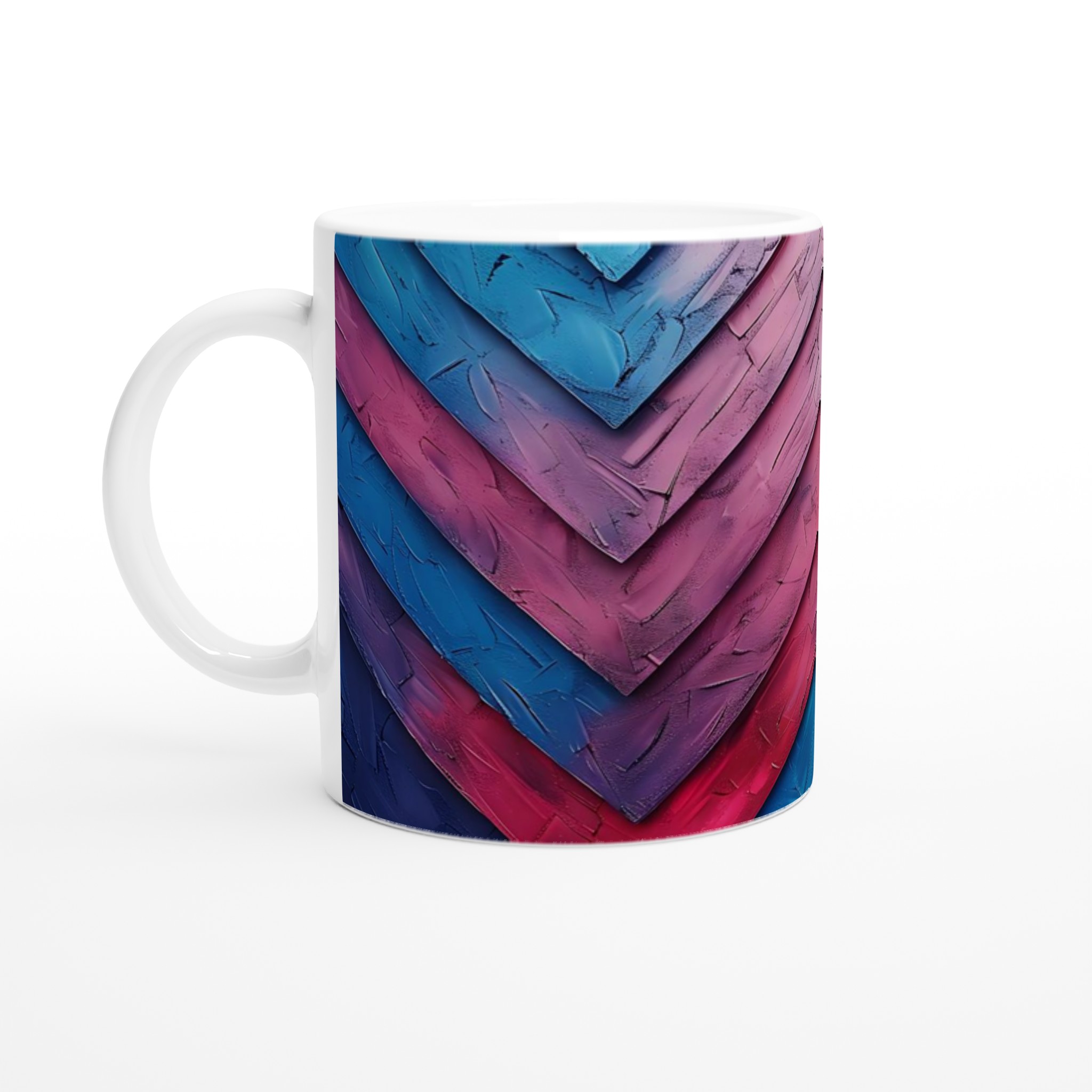 Inspirerad av den livfulla paletten av abstrakta chevronmönster, ger denna mugg en explosion av färg och modern design till din vardag. Den blanka ytan ger ett skarpt och levande tryck som verkligen sticker ut, perfekt för att visa upp din personliga stil, ett motiverande citat eller som en omtänksam present.