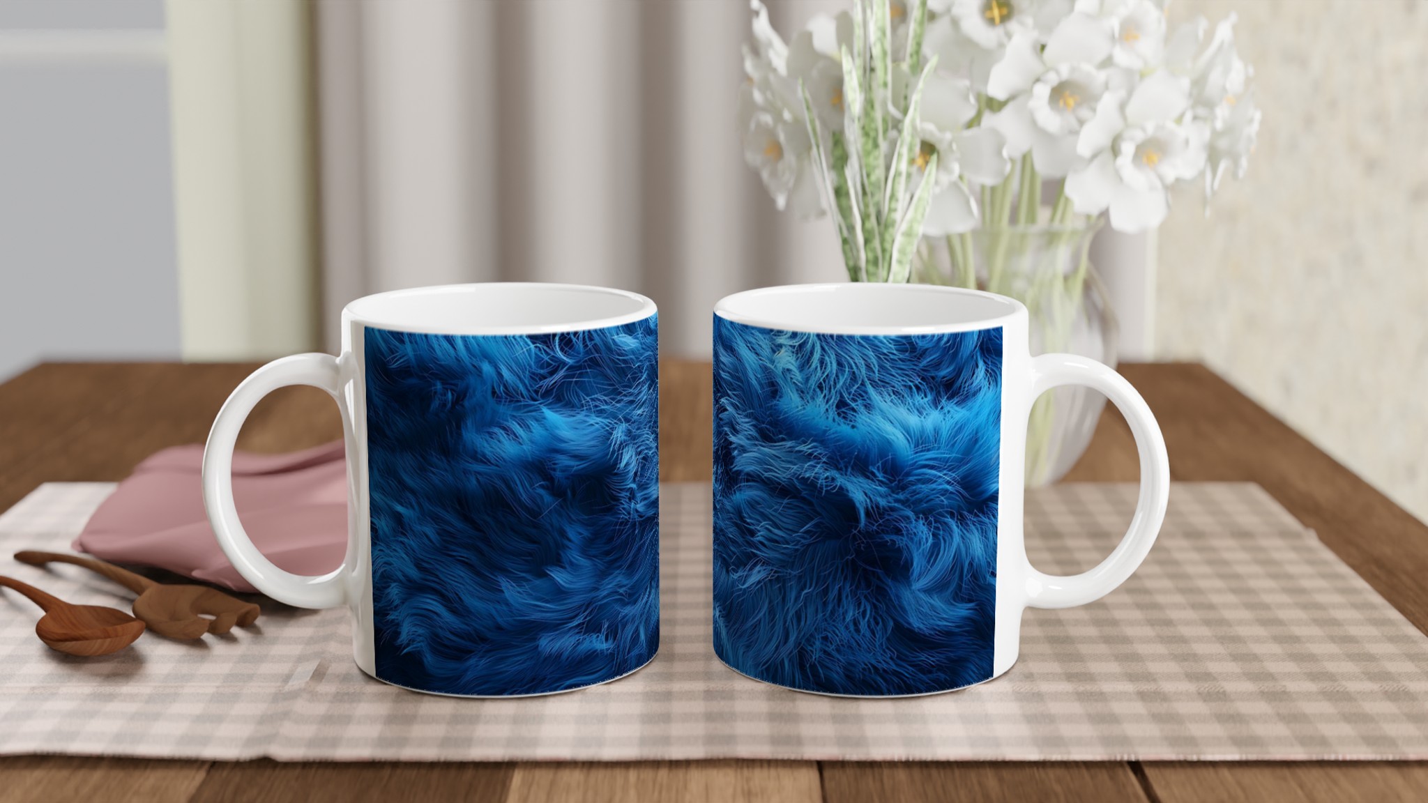 Fånga känslan av djupa havsströmmar med vår ”Abstrakt Havsdrömmar” keramiska mugg. Dess fascinerande blåa design, inspirerad av vågornas rörelse, gör varje klunk till en liten flykt. Den här stilrena keramiska muggen blir snabbt en vardagsfavorit. Perfekt för morgonkaffet, kvällens varma choklad eller när du bara vill njuta av en kopp te. Den blanka vita ytan gör att trycken framhävs med klara och levande färger, som håller sig fina även efter många turer i mikron och diskmaskinen.