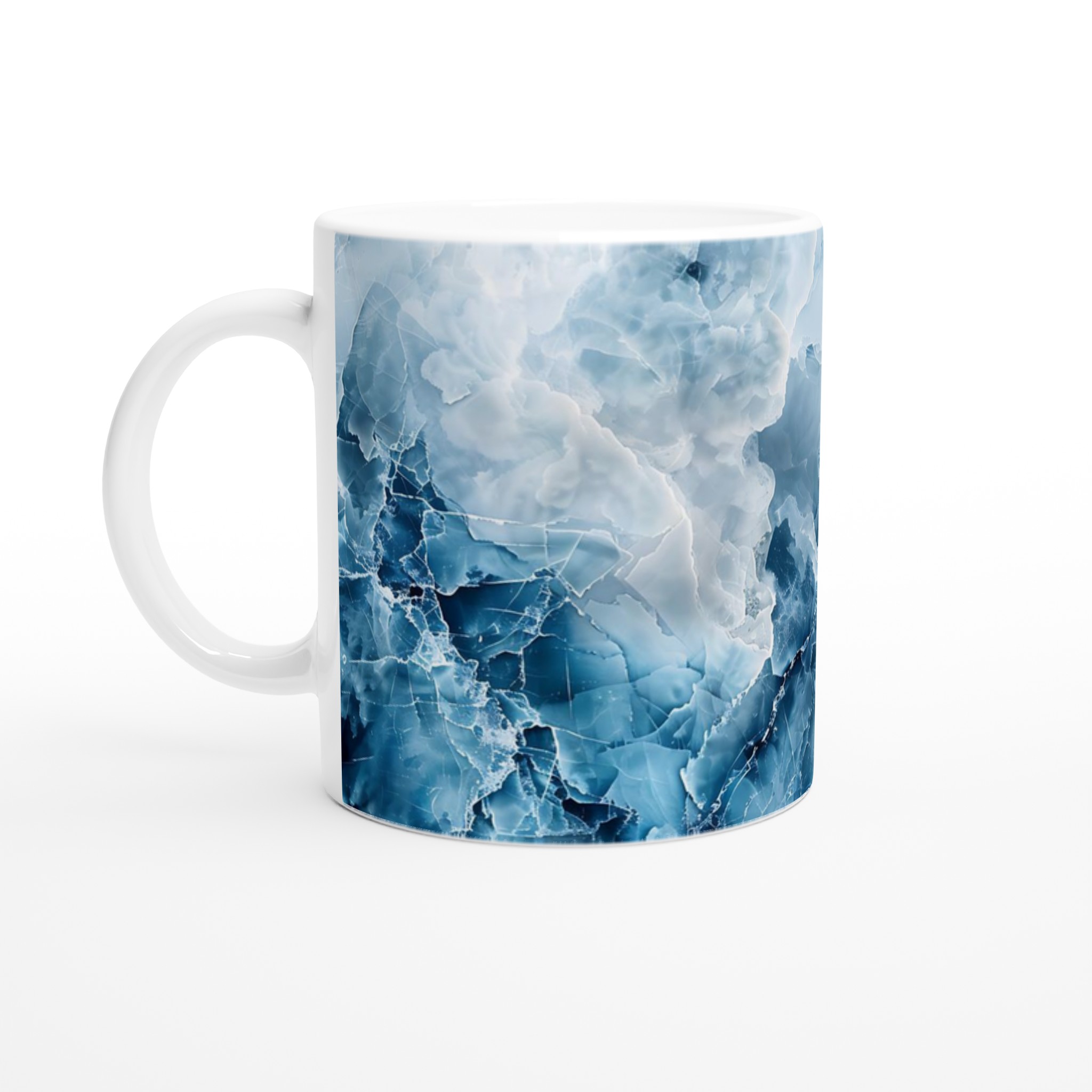 Inspirerad av arktiska landskap, med subtila skiftningar i blått och vitt som påminner om sprickande is eller virvlande moln, ger denna mugg en lugnande och modern känsla till din dryckesupplevelse. Den blanka vita ytan ger ett skarpt och levande tryck som verkligen sticker ut, oavsett om det är en personlig design, ett roligt citat eller en present till någon du tycker om.