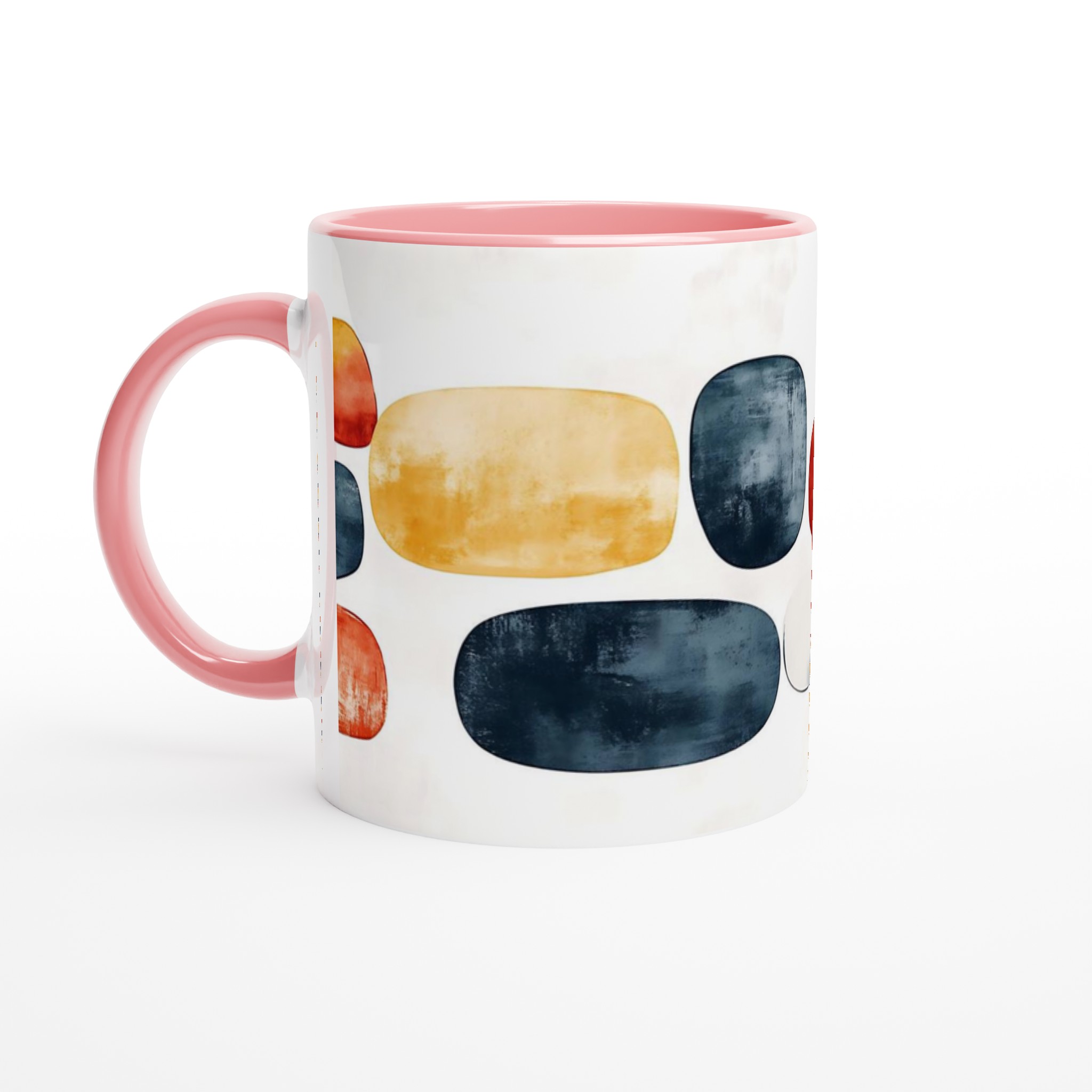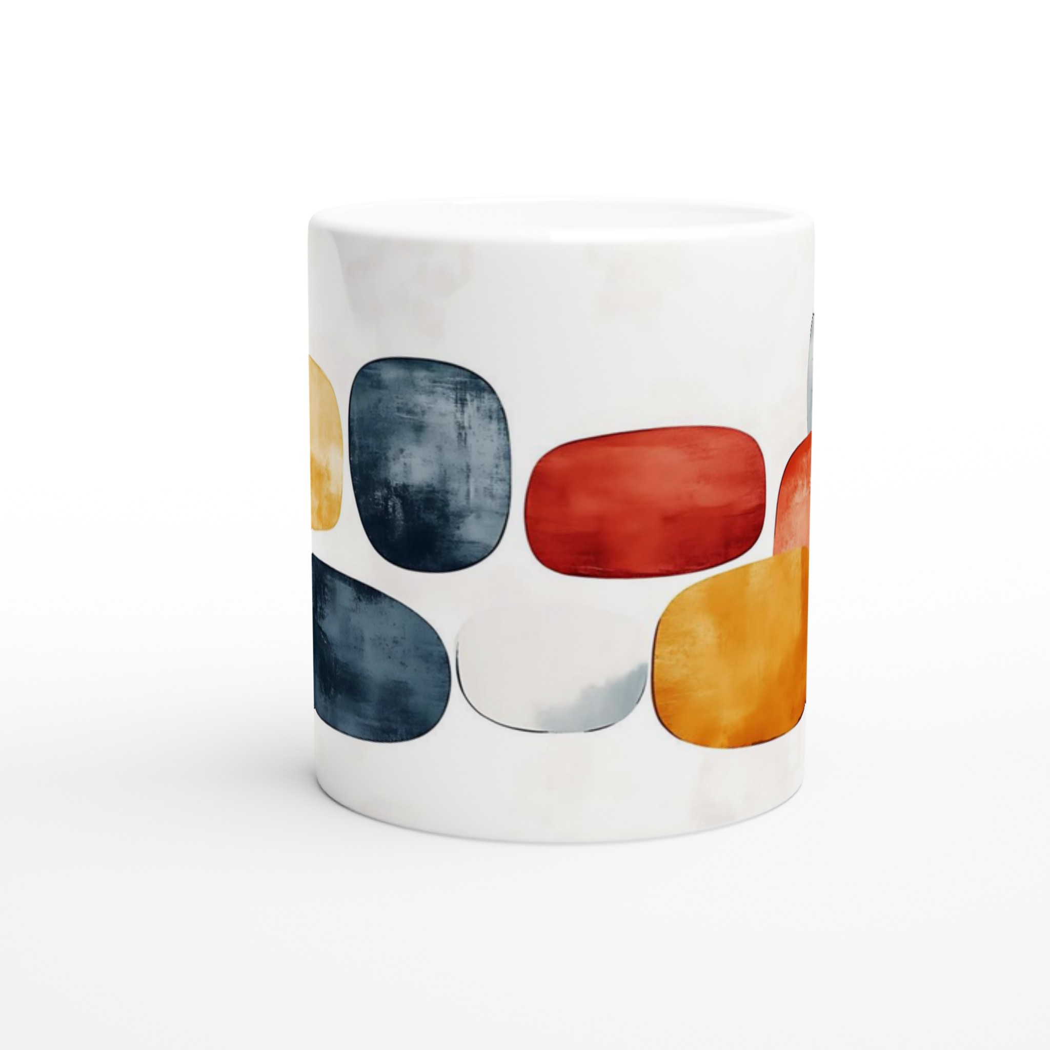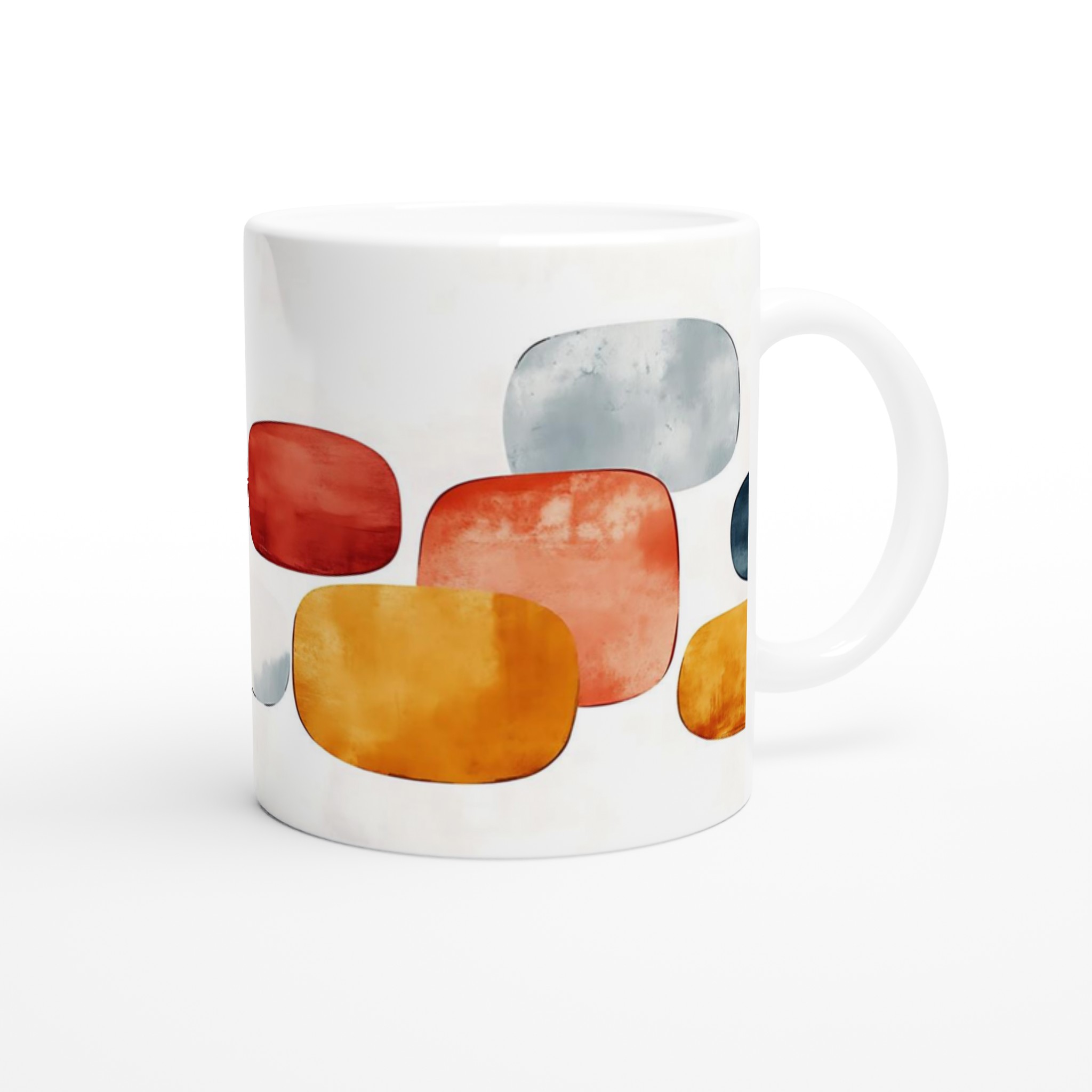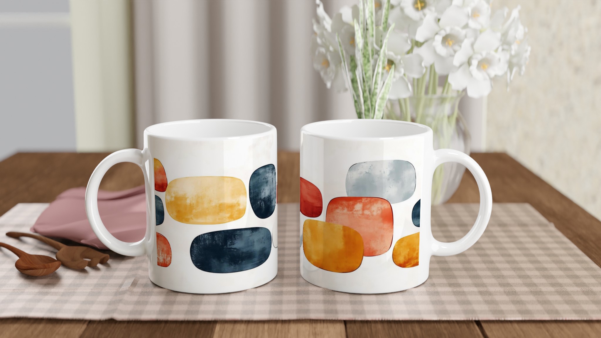 Lyft din fikastund med vår abstrakta keramiska mugg, en sann vardagsfavorit som kombinerar konstnärlig design med praktisk funktion. Med sitt moderna mönster och lugnande färgpalett, inspirerad av naturtoner och jordnära kulörer, blir denna mugg snabbt ditt självklara val. Den är perfekt för morgonkaffet, kvällens varma choklad eller när du bara vill njuta av en kopp te. Den blanka ytan får trycken att framhävas med klara och levande färger, som håller sig fina även efter många turer i mikron och diskmaskinen.