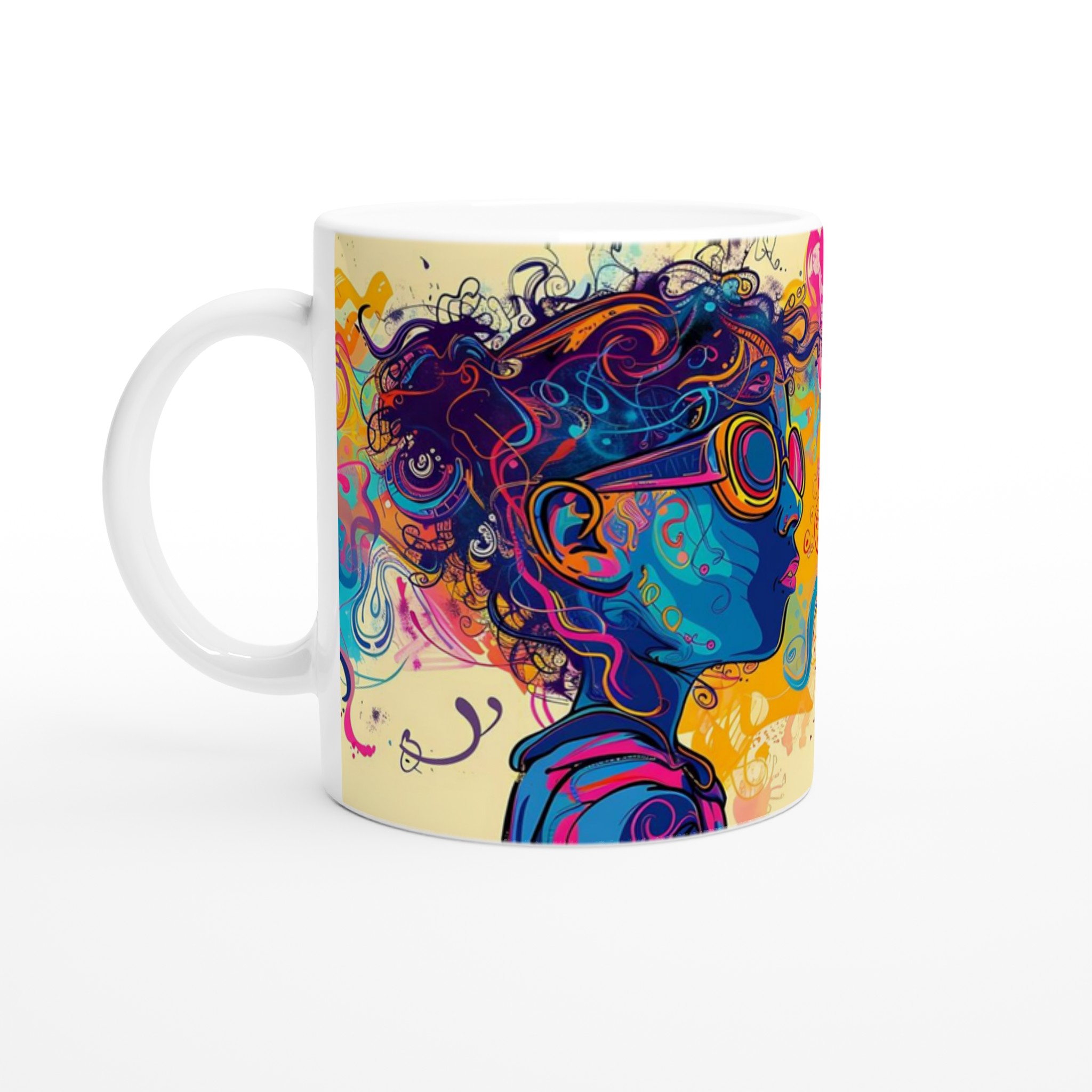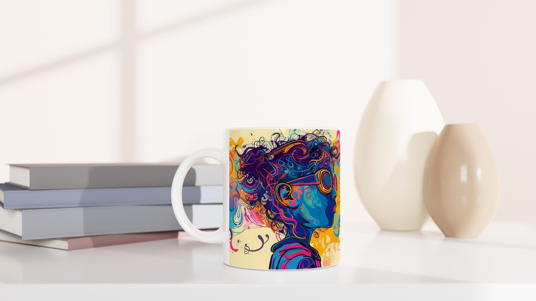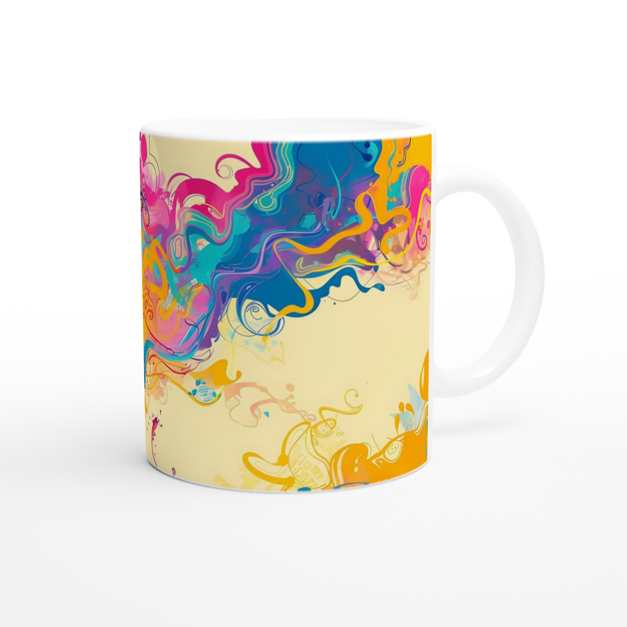 Väck dina sinnen med denna färgsprakande keramiska mugg, inspirerad av abstrakt konst och en explosion av kreativ energi. Perfekt för den som älskar att starta dagen med en dos färg, varva ner med en varm dryck eller helt enkelt omge sig med konst som speglar en levande personlighet. Den blanka ytan låter de dynamiska färgerna i det abstrakta trycket verkligen poppa, och motivet håller sig lika vackert oavsett hur många gånger du värmer eller diskar den.