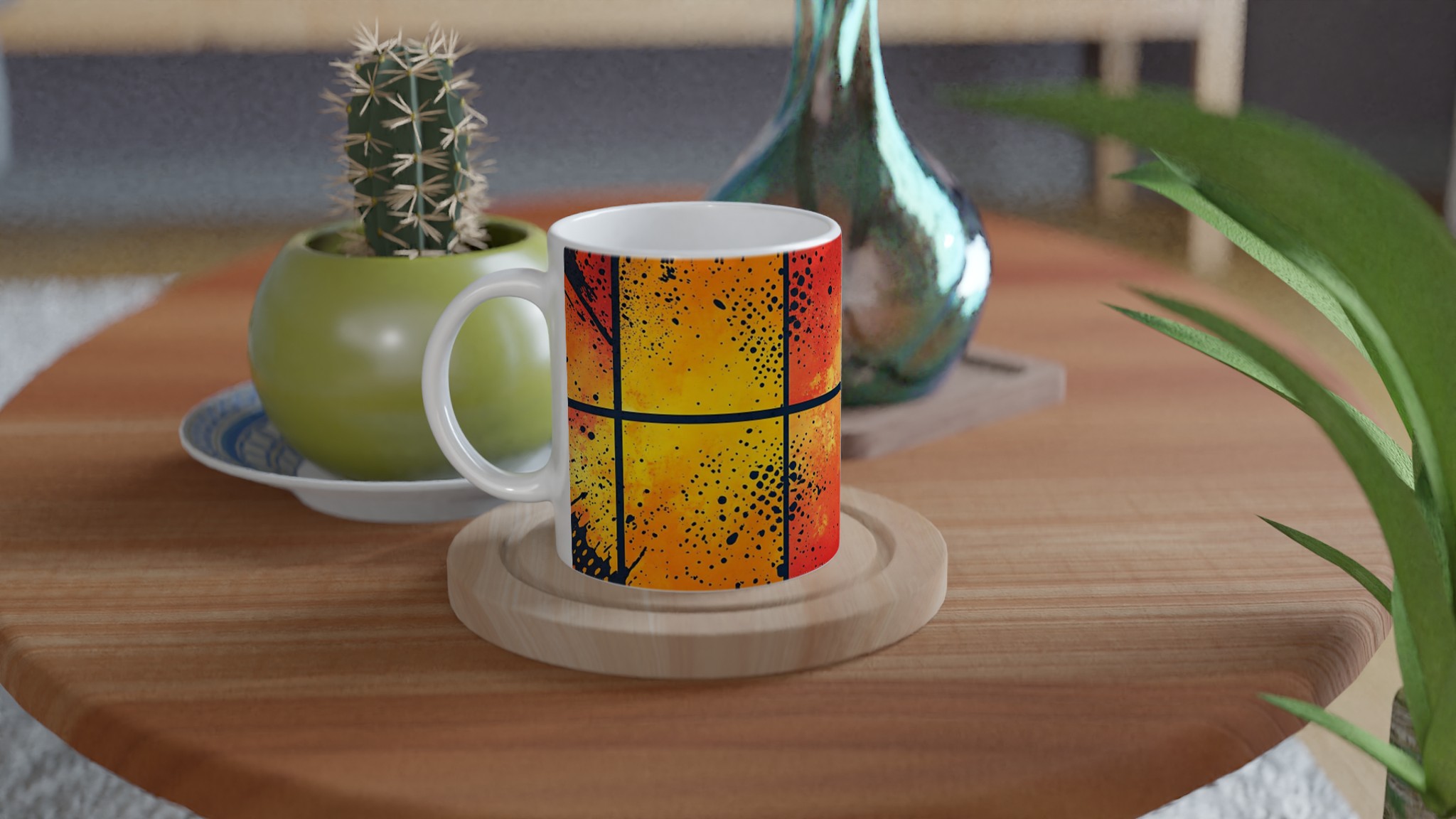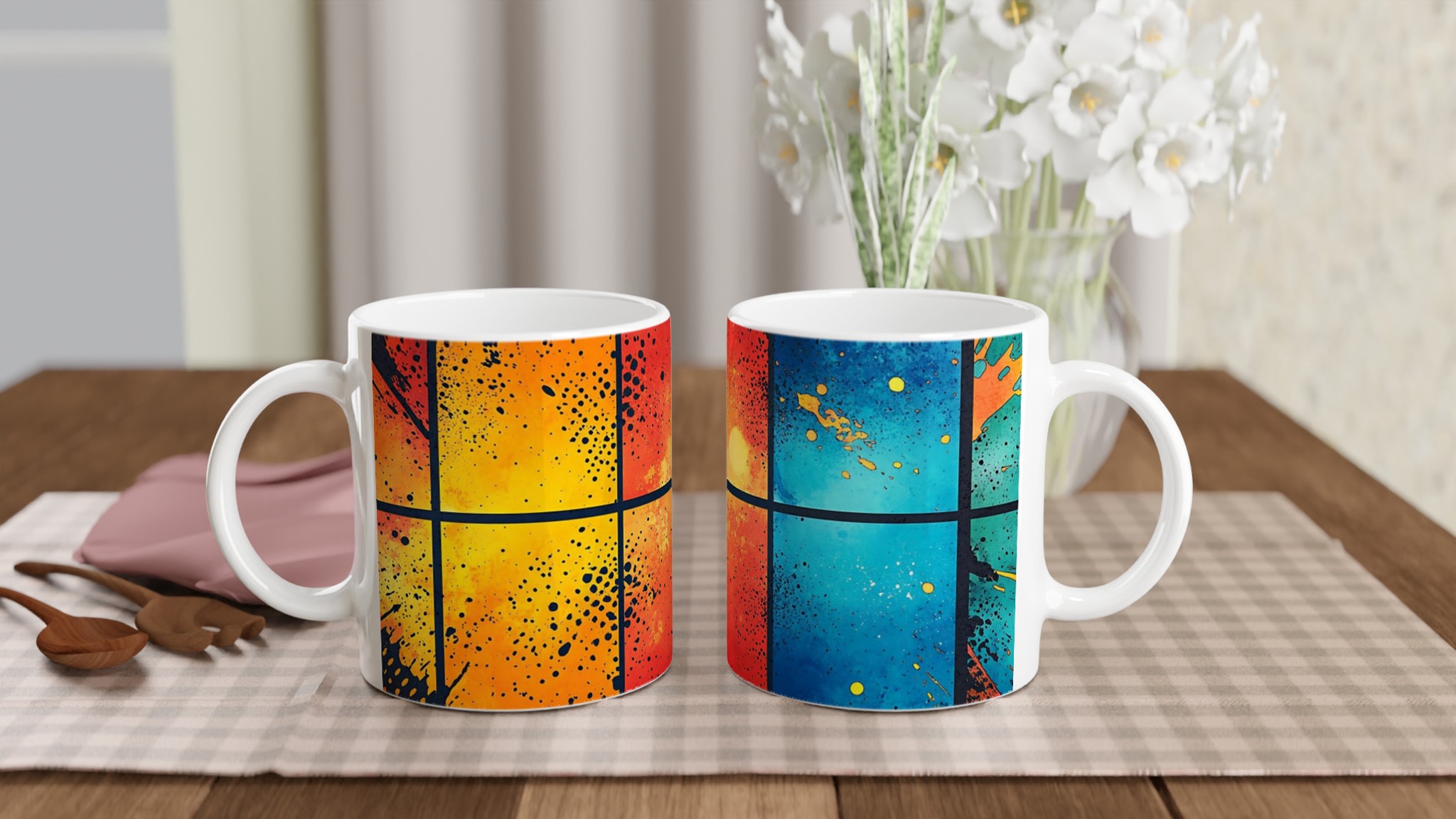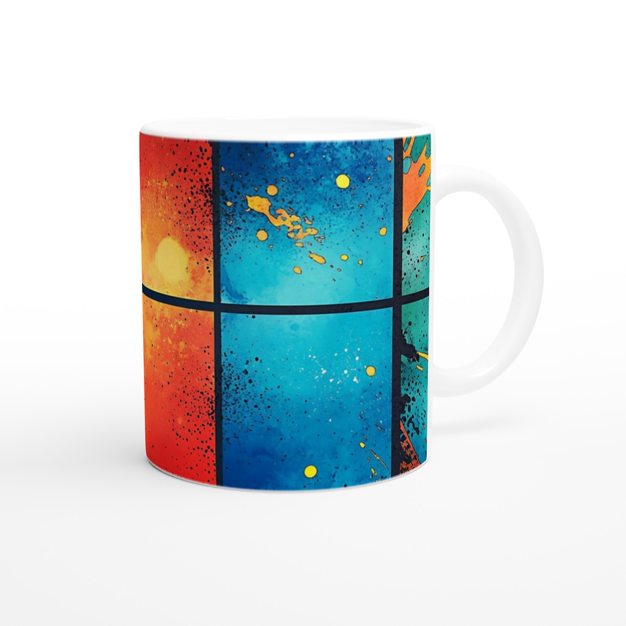 Abstrakt Konstmugg i Vibrerande Färger – 11oz Keramisk Kaffemugg med Stänkdesign – Välj bland 7 Livliga Nyanser