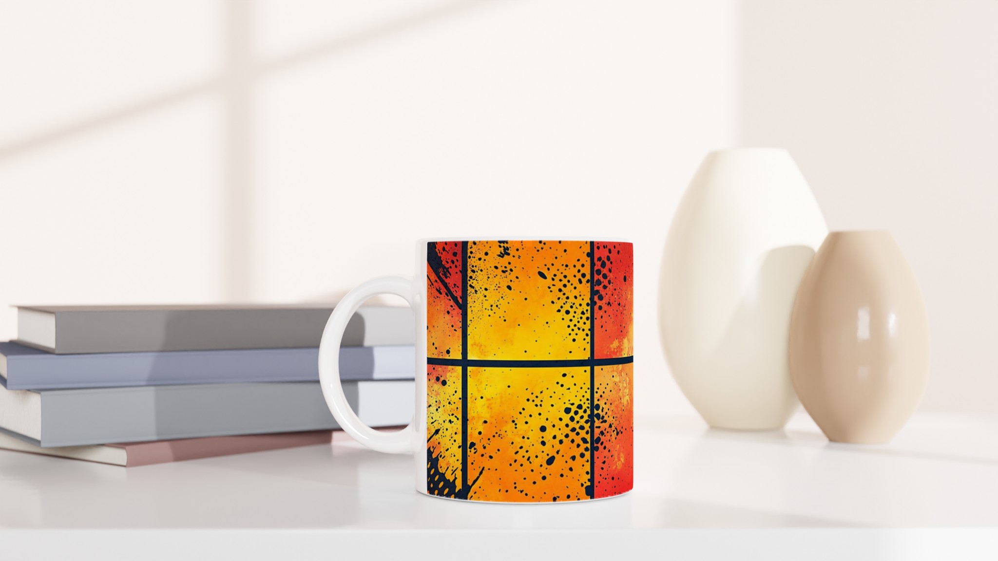 Väck dina sinnen varje morgon med vår Abstrakt Konstmugg, inspirerad av dynamiska färgstänk och energiska nyanser. Denna unika design, med sina flödande övergångar från varma orangea och röda toner till svala blå och turkosa, kompletteras perfekt av kontrasterande svarta och gula prickar som ger en modern, konstnärlig känsla. Välj din favorit bland sju livfulla färger som Ceramic White, Ceramic Yellow, Ceramic Pink, Ceramic Green, Ceramic Red, Ceramic Black eller Ceramic Blue, och låt din personlighet stråla vid varje kopp kaffe eller te.