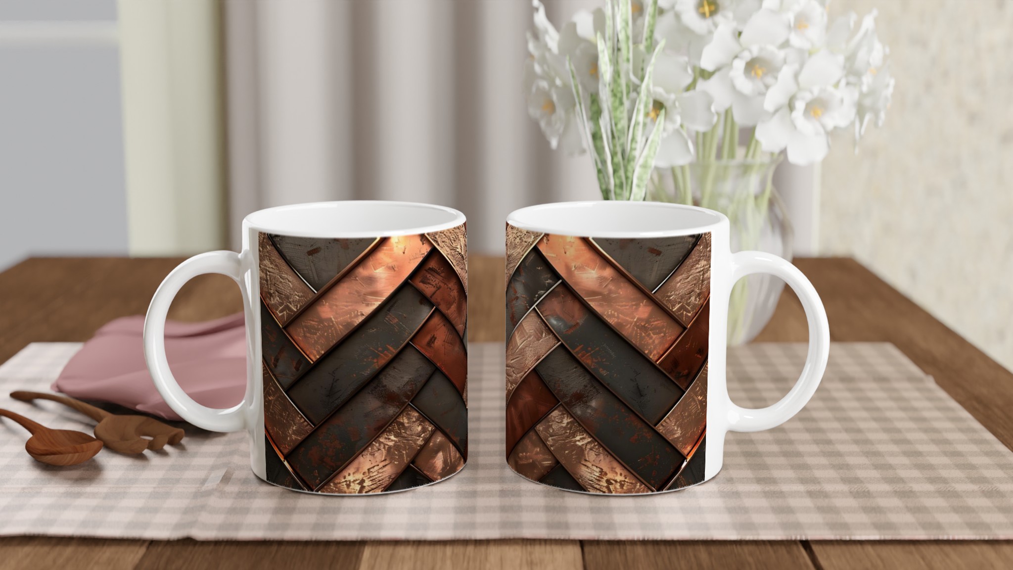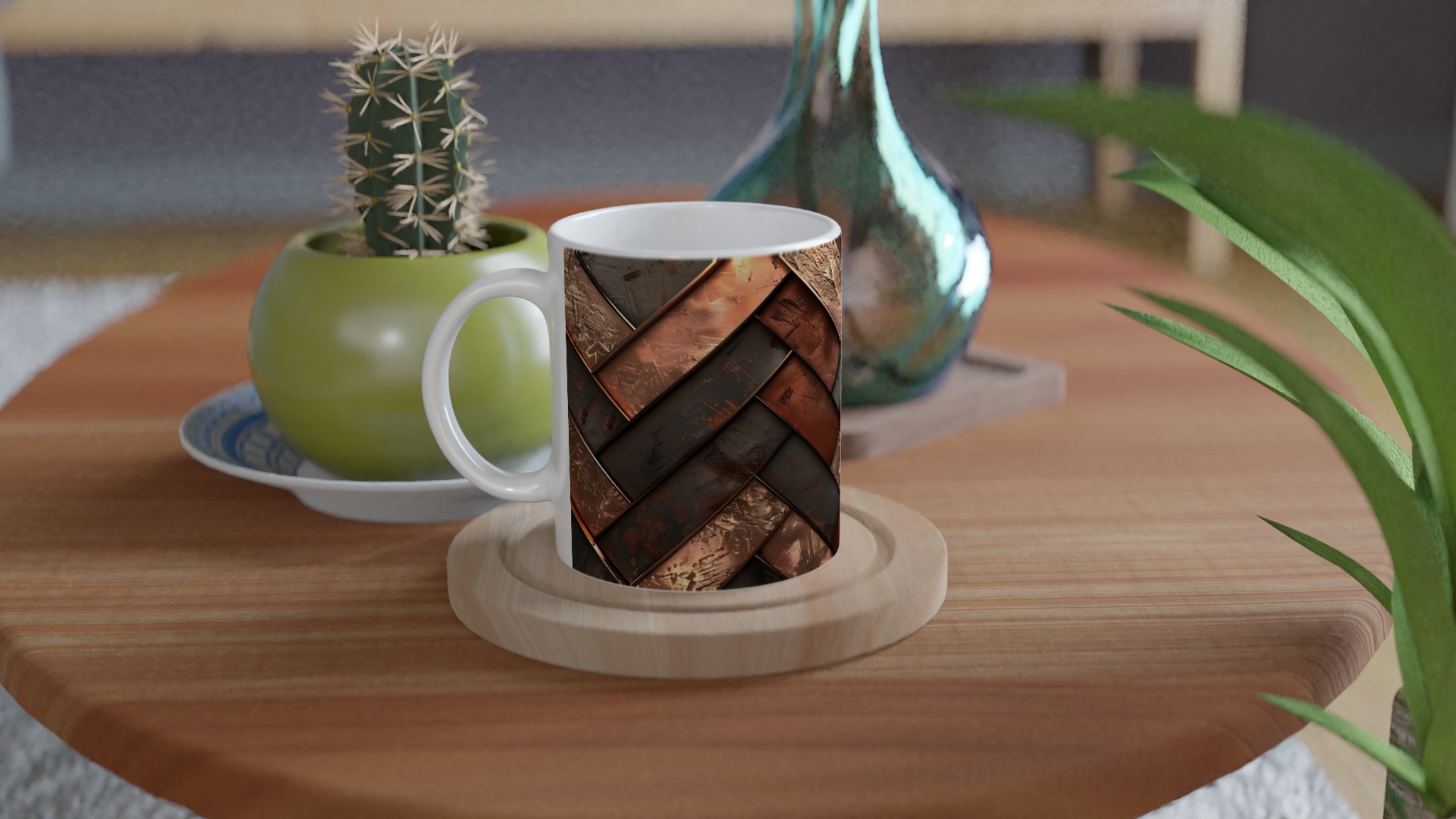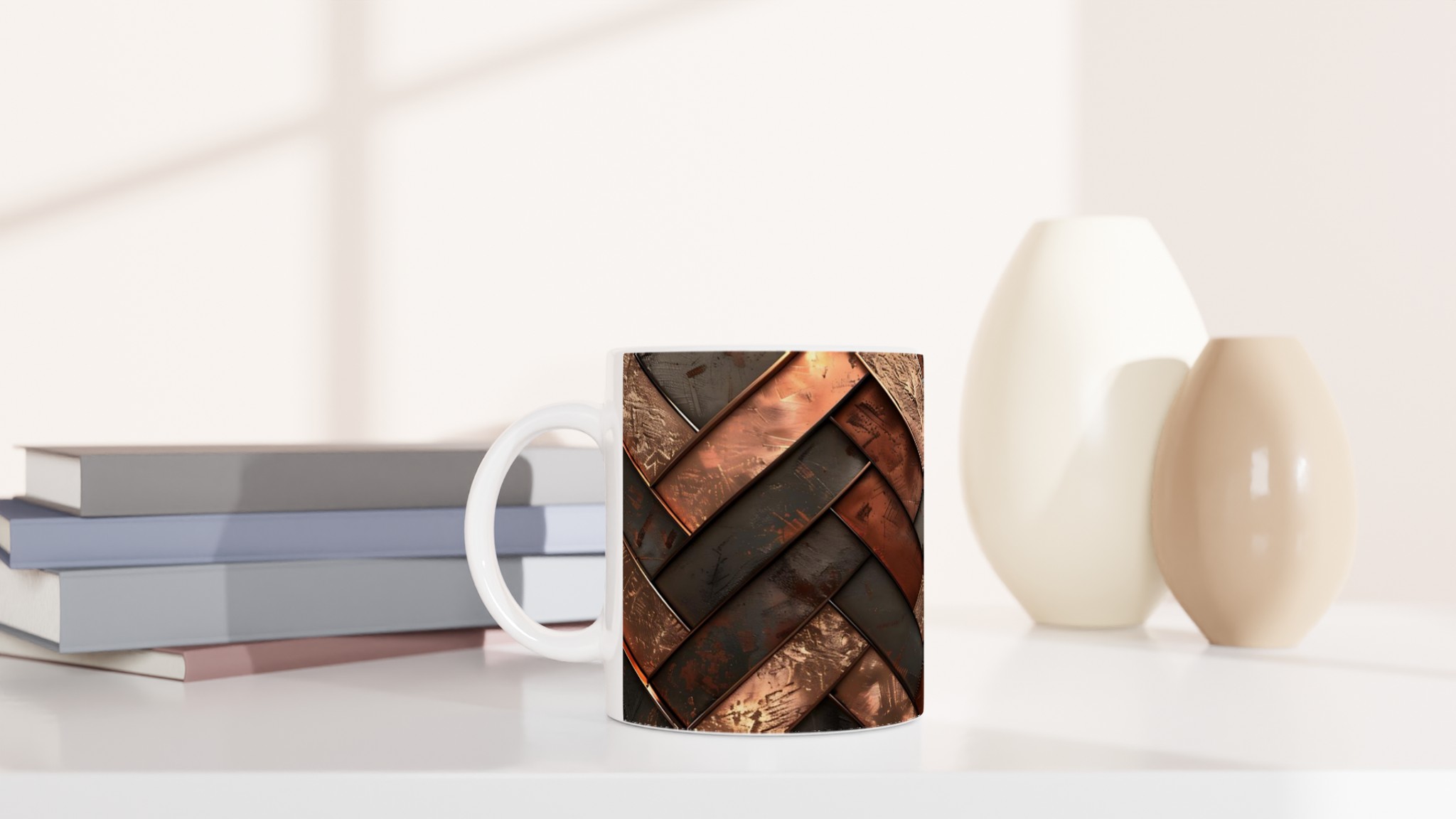 Lyft din fikastund med denna robusta och konstnärliga keramikmugg, inspirerad av den dramatiska skönheten hos koppar och mörka toner. Med ett abstrakt mönster som fångar ögat och en textur som påminner om metall och sten, är denna mugg mer än bara ett kärl – den är ett samtalsämne. Perfekt för ditt morgonkaffe, en värmande kopp te eller en härlig varm choklad, den tillför en touch av industriell elegans till varje stund.