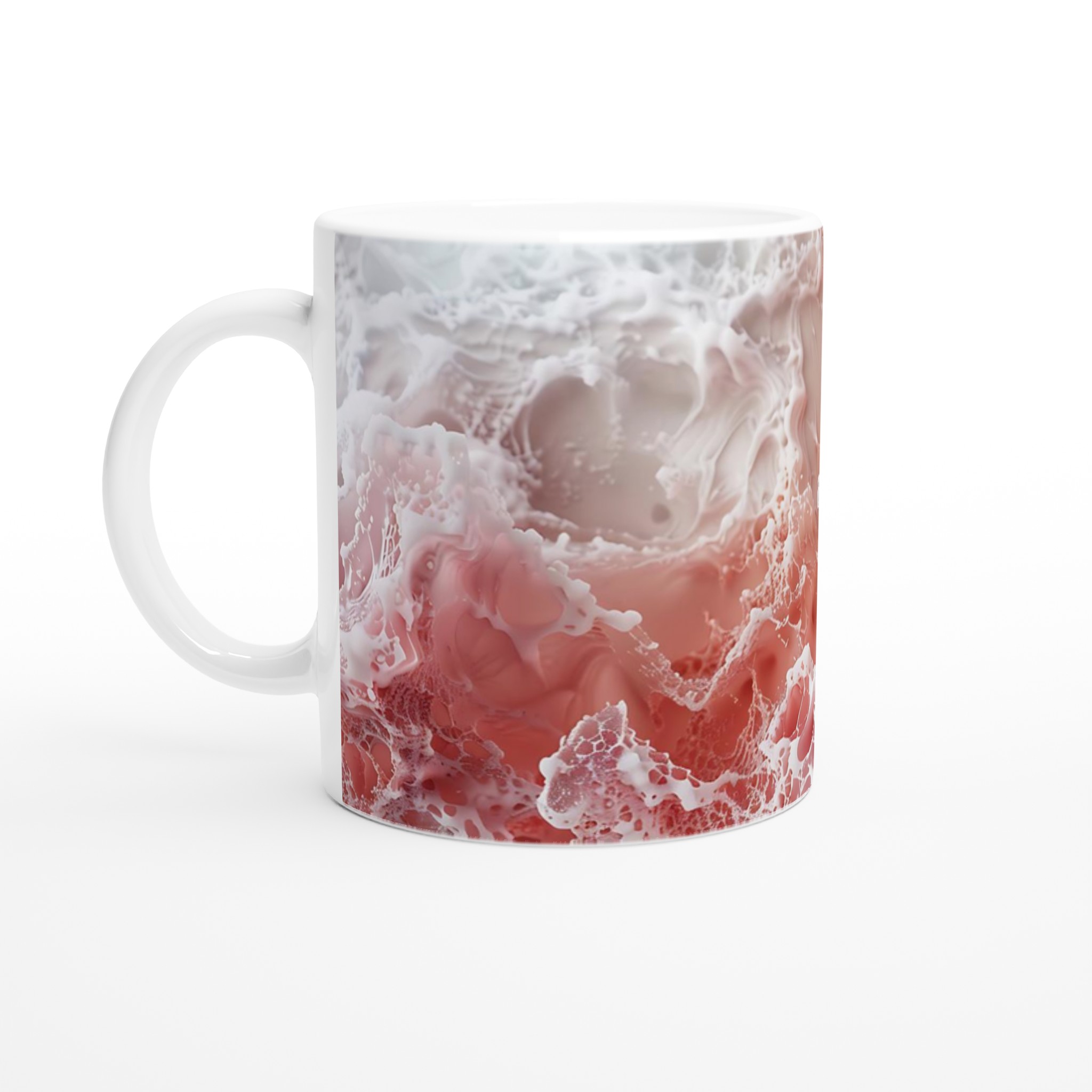 Föreställ dig den organiska skönheten och de mjuka färgskiftningarna från ett abstrakt korallrev, nu fångat på din nya favoritmugg. Varje klunk blir en resa till en lugn undervattensvärld, med toner som smälter samman från mjuk korallrosa till lugnande gräddvit, vilket skapar en känsla av ro och elegans. Välj bland en palett av sju jordnära färger – från klassisk Ceramic White och djup Ceramic Blue till lekfull Ceramic Pink och energisk Ceramic Red – för att hitta den perfekta nyansen som speglar din personliga stil eller kompletterar din inredning. Denna mugg är inte bara en dryckesbehållare, utan ett konstverk för din hand.