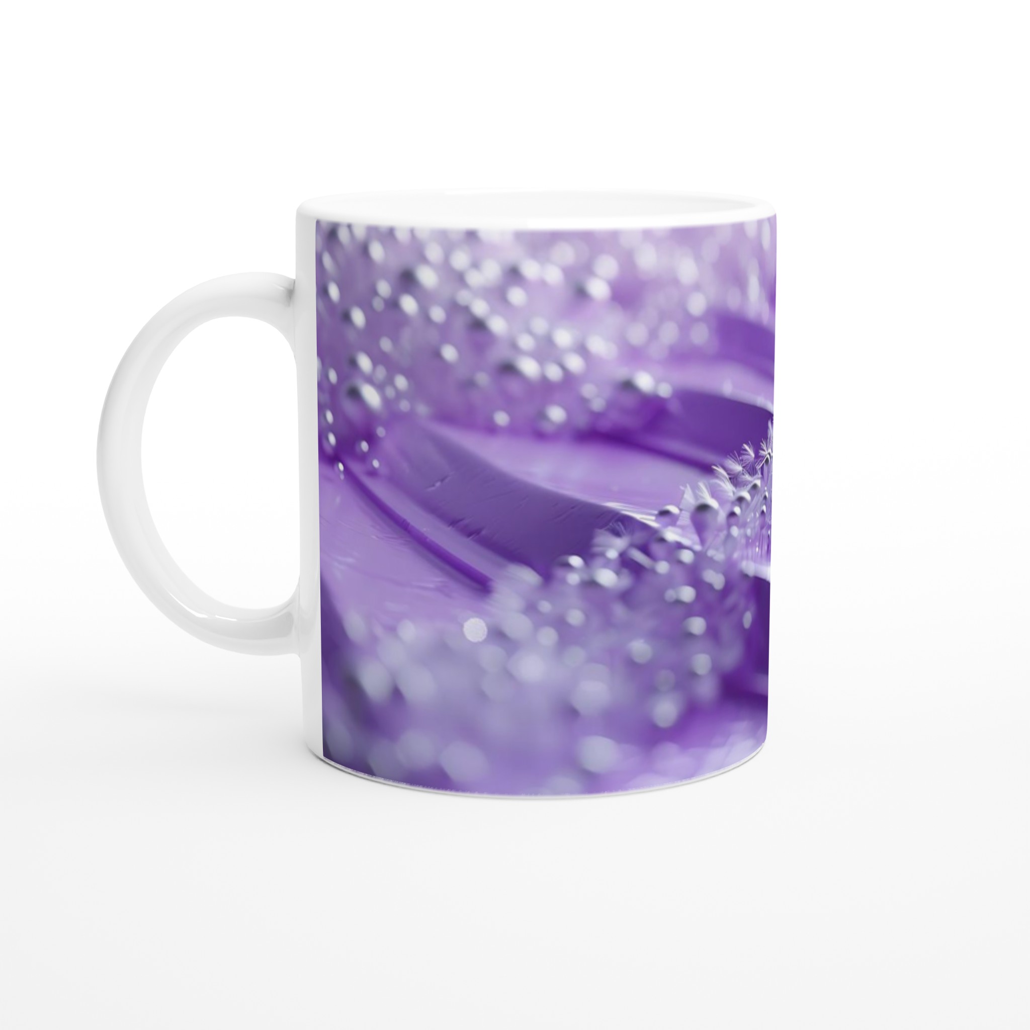 Lyft varje kaffestund med vår premium keramikmugg – stilren, hållbar och skapad för att låta ditt motiv glänsa. Inspirerad av bilden av lugnande lila nyanser och gnistrande, eteriska detaljer, ger denna mugg en touch av abstrakt skönhet till din dagliga rutin. Den blanka vita ytan ger ett skarpt och levande tryck som verkligen sticker ut, oavsett om det är en personlig design, ett roligt citat eller en present till någon du tycker om.