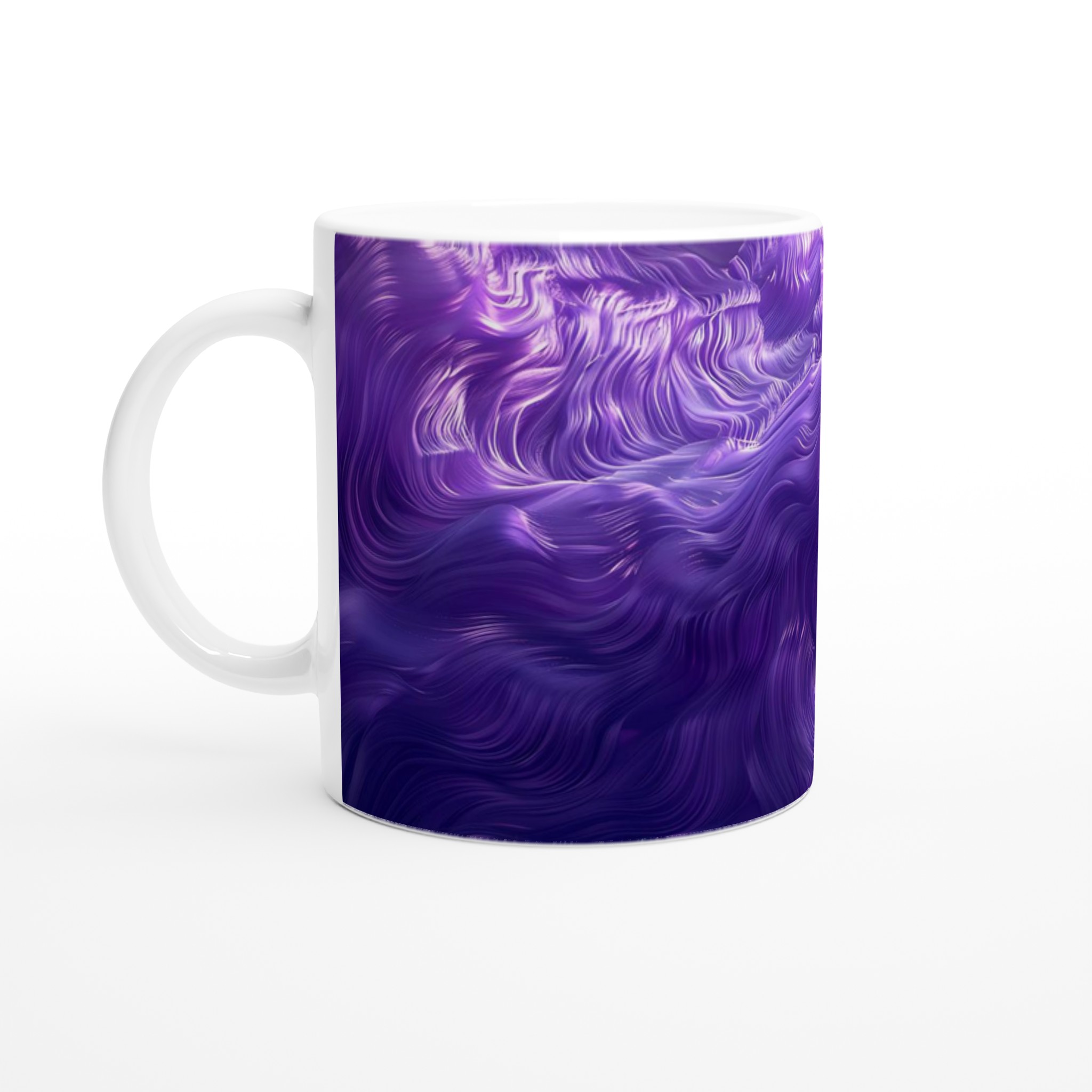 Lyft varje kaffestund med vår premium keramikmugg – stilren, hållbar och skapad för att låta ditt motiv glänsa. Denna fantastiska mugg, prydd med ett hypnotiserande abstrakt mönster av lila vågor och strömmande linjer, ger en känsla av mystik och elegans till din dryckesupplevelse. De skimrande nyanserna av violett och det flytande formspråket skapar en dynamisk visuell effekt som fångar ögat och inspirerar.