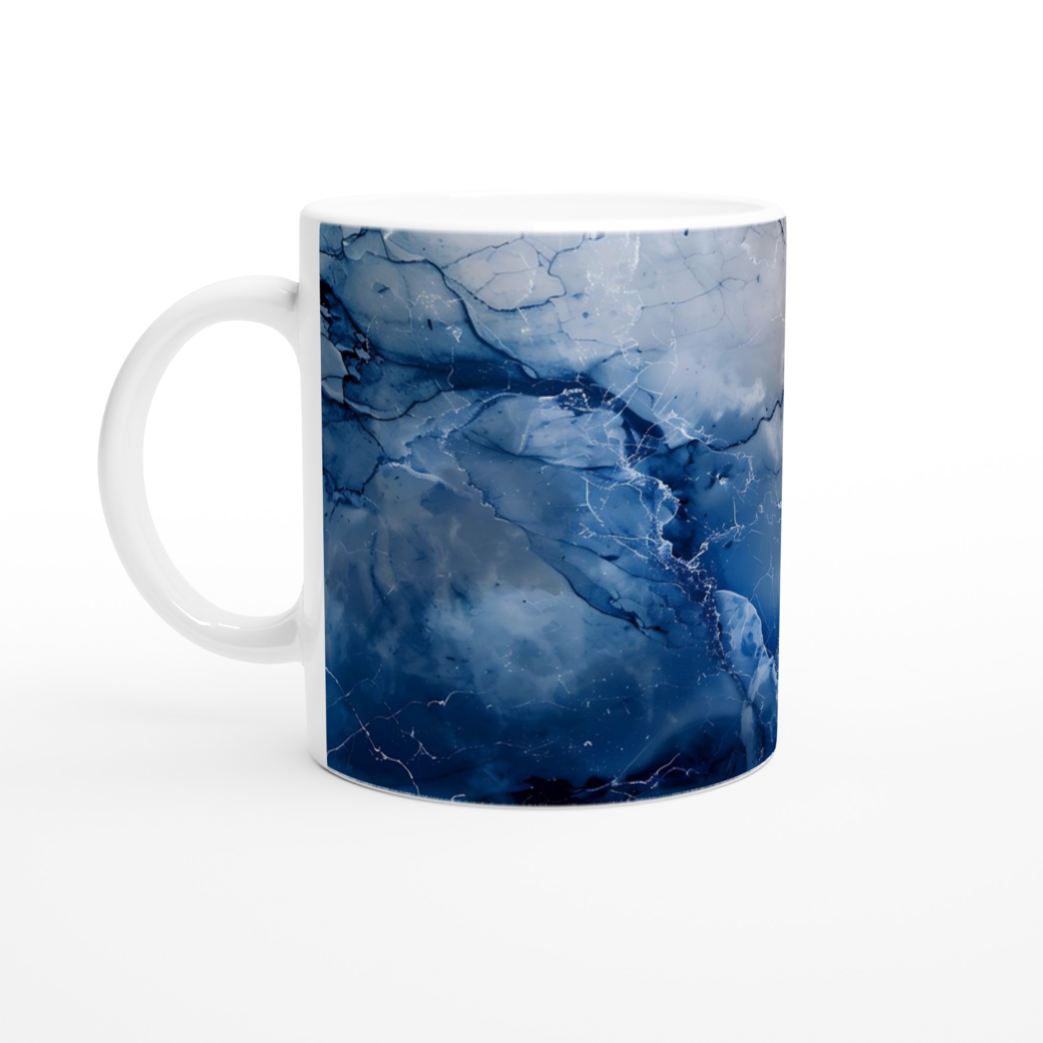 Denna exklusiva mugg förvandlar din dryckesupplevelse med sitt slående, abstrakt marmormönster i djupa marinblå toner, kompletterat med delikata vita och gråa inslag som påminner om stormiga hav eller frostiga vinterlandskap. Den blanka vita ytan ger ett skarpt och levande tryck som verkligen sticker ut, oavsett om det är en personlig design, ett roligt citat eller en present till någon du tycker om. Välj bland våra sju fängslande nyanser – Ceramic White, Yellow, Pink, Green, Red, Black, och Blue – för att matcha din stil eller inredning. Varje färgval förhöjer det konstnärliga uttrycket och gör varje mugg unik.