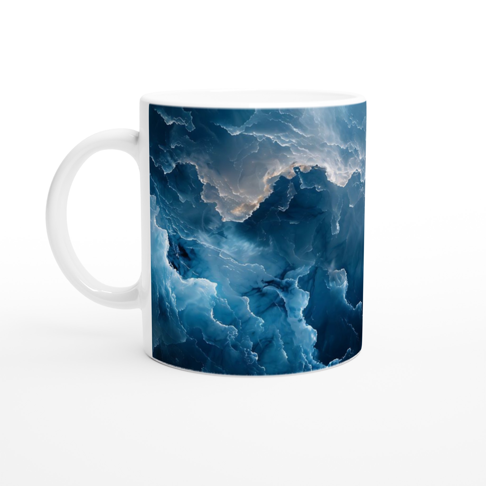 Inspirerad av havets djup och himlens oändliga nyanser, fångar denna design den eteriska skönheten i blåa akvareller och etsade molnformationer. Den blanka vita ytan ger ett skarpt och levande tryck som verkligen sticker ut, oavsett om det är en personlig design, ett roligt citat eller en present till någon du tycker om.