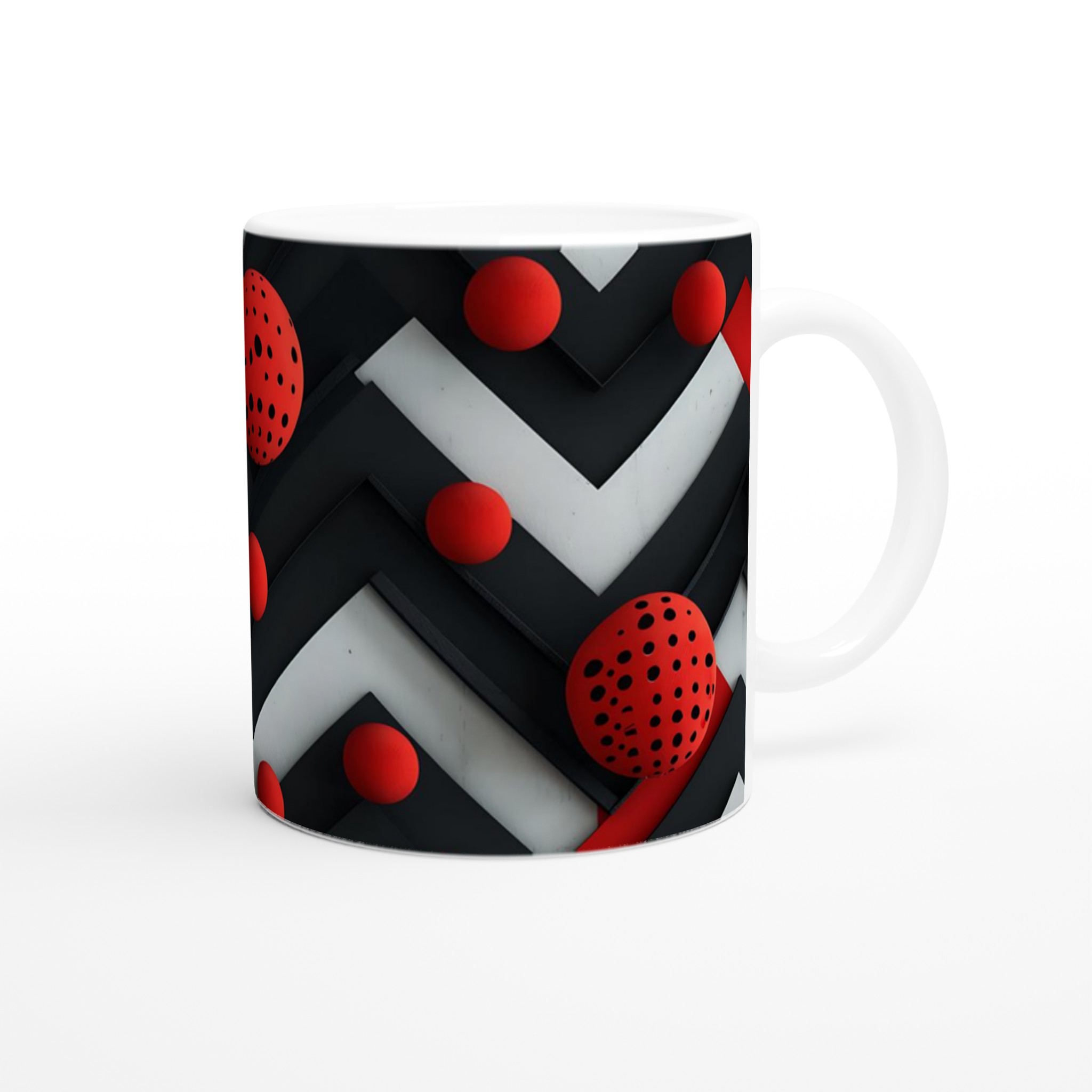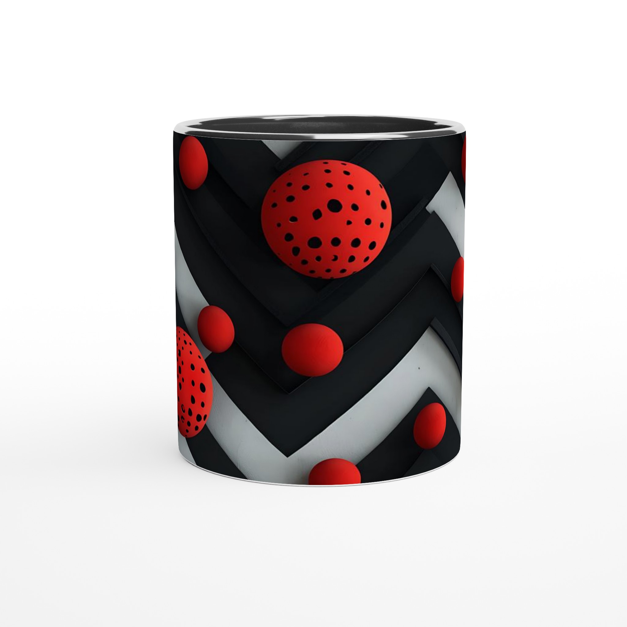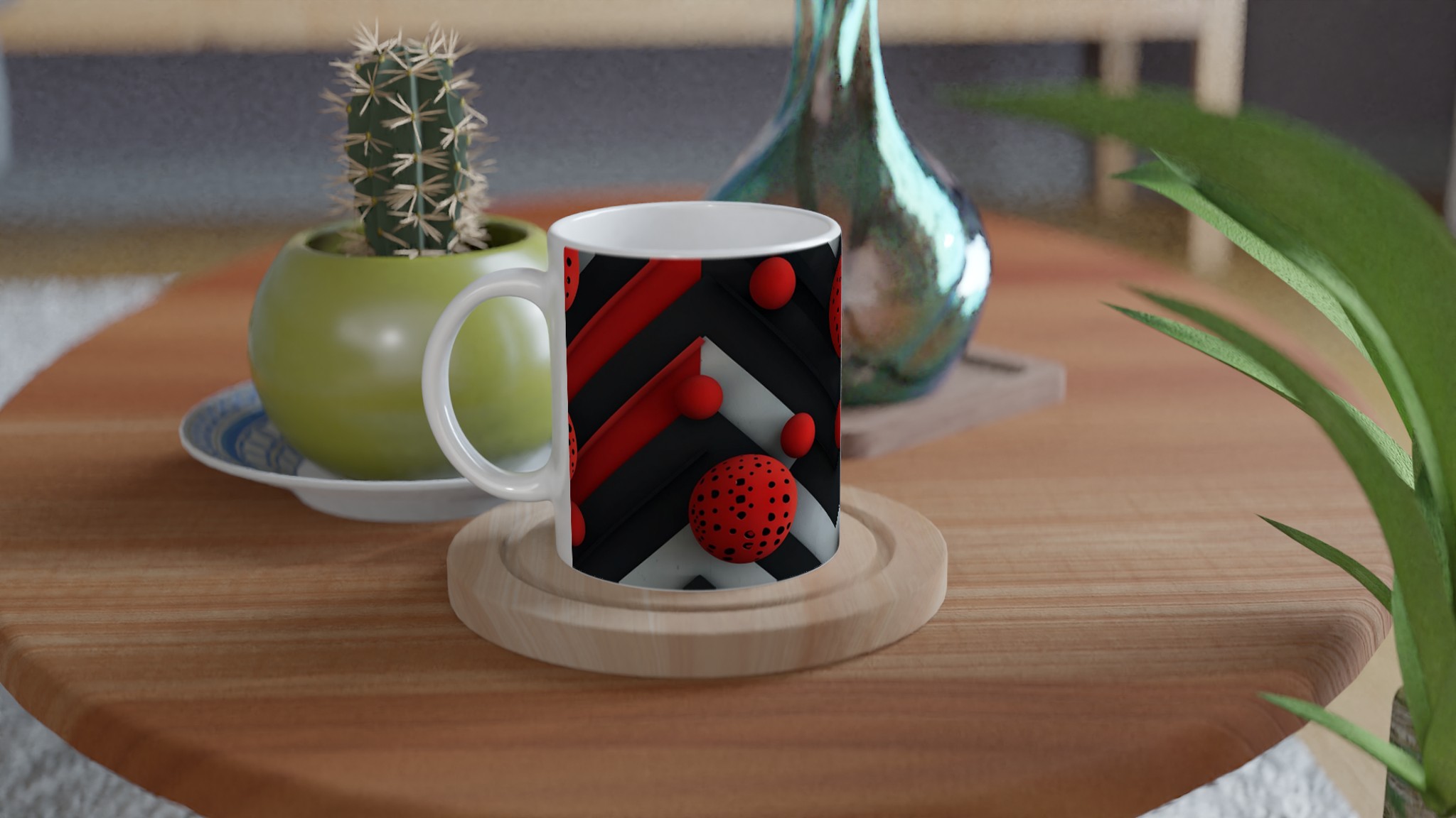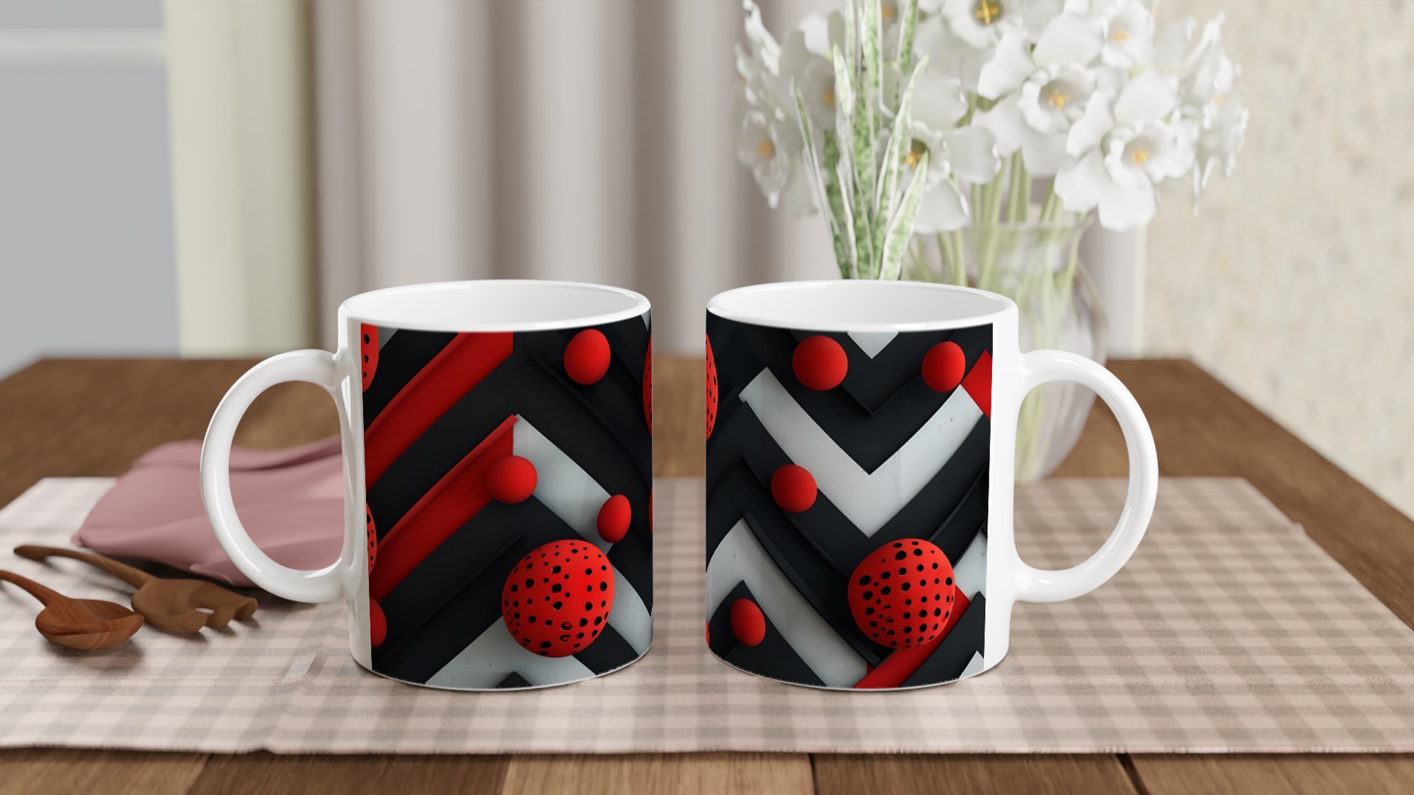 Lyft din fikapaus med denna unikt designade keramikmugg som fångar ögat med sitt dynamiska möte mellan rött, svart och vitt. De abstrakta formerna och den slående färgpaletten skapar en modern och konstnärlig känsla, perfekt för dig som älskar att omge dig med design som inspirerar. Denna mugg är inte bara en behållare för din favoritdryck, utan ett statementstycke som ger energi till varje morgonkaffe, afternoon tea eller avkopplande kvällsdricka.