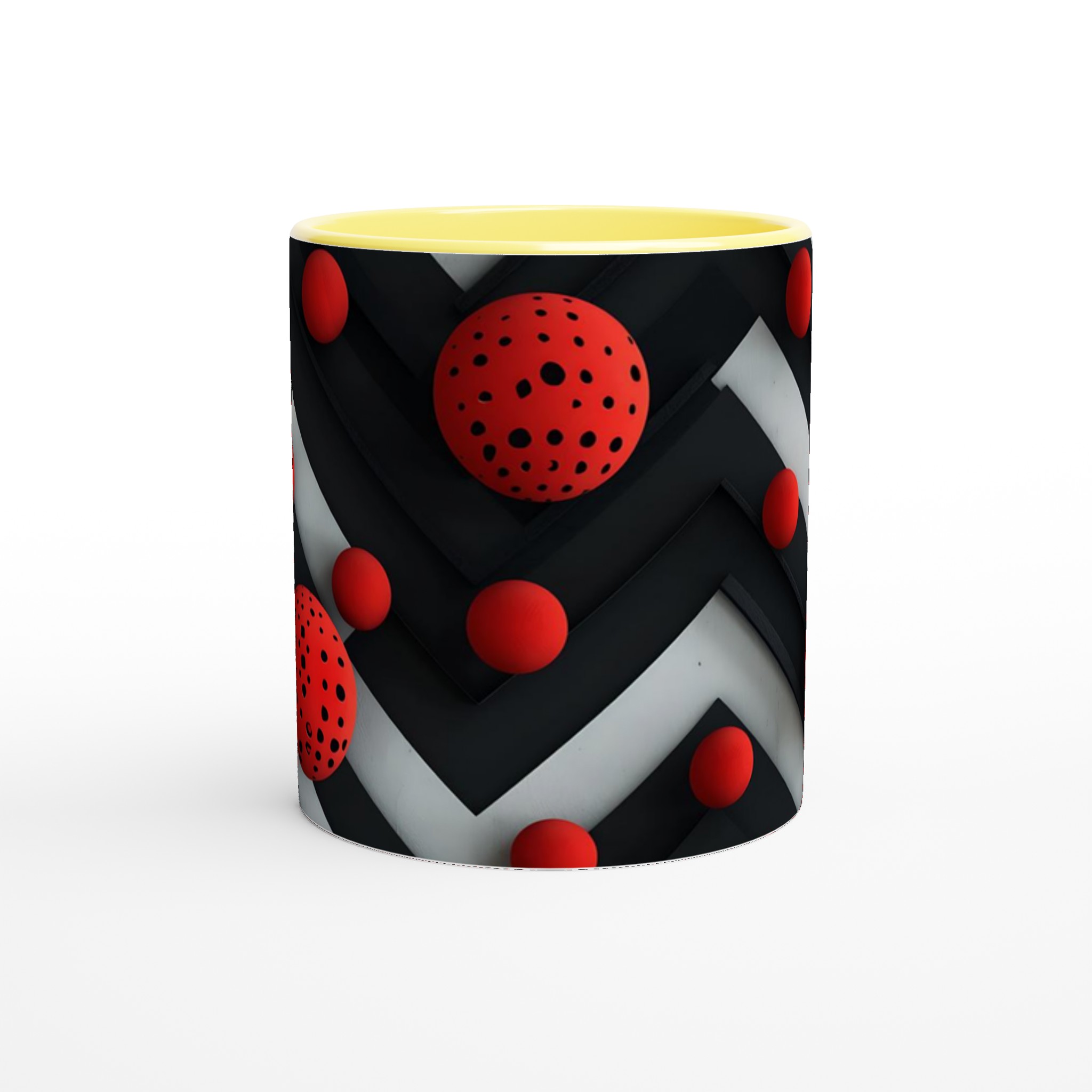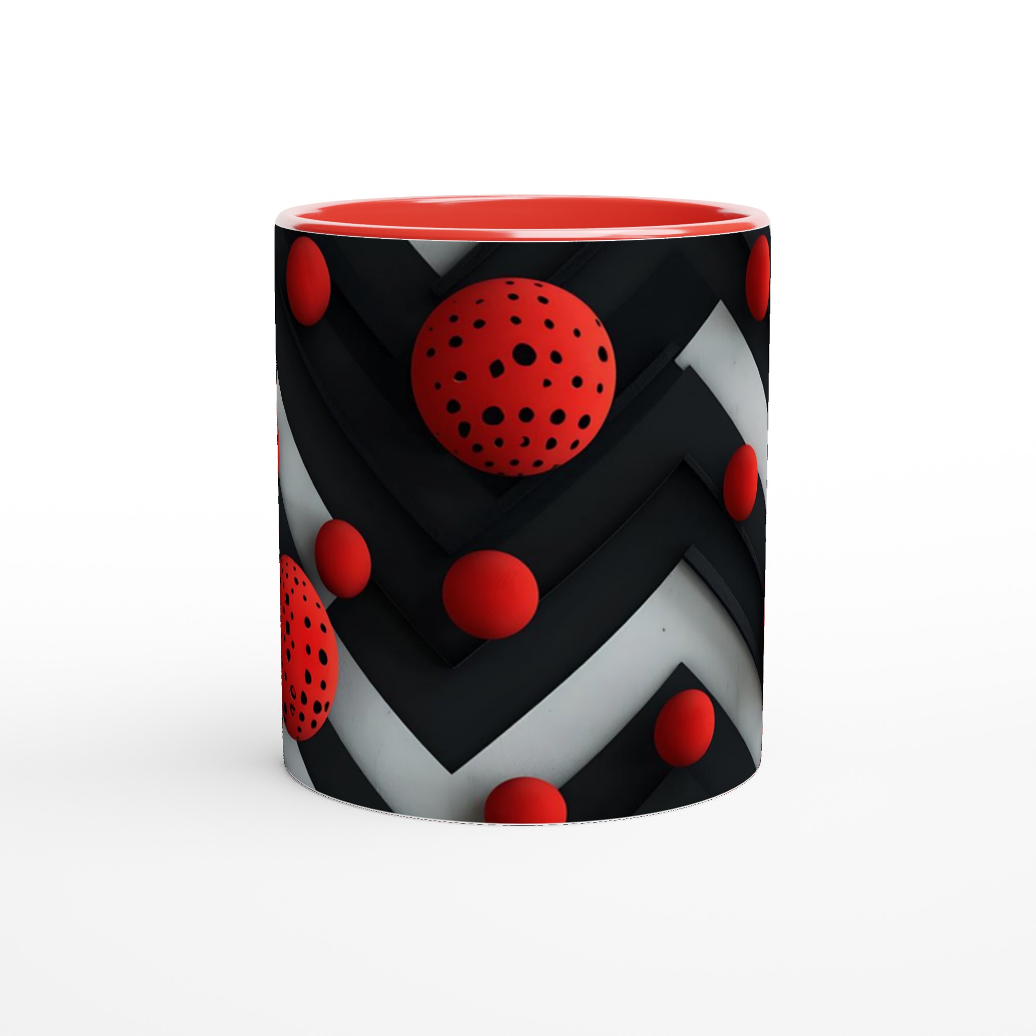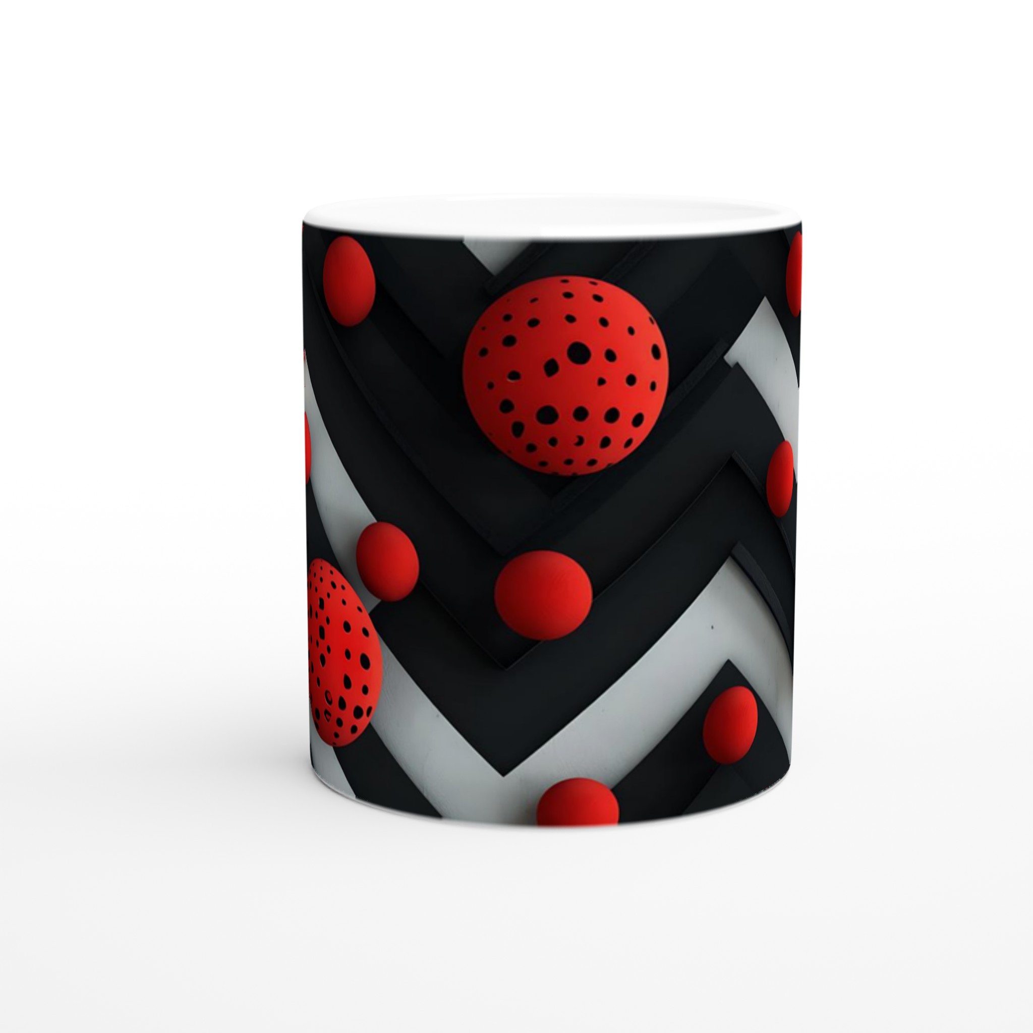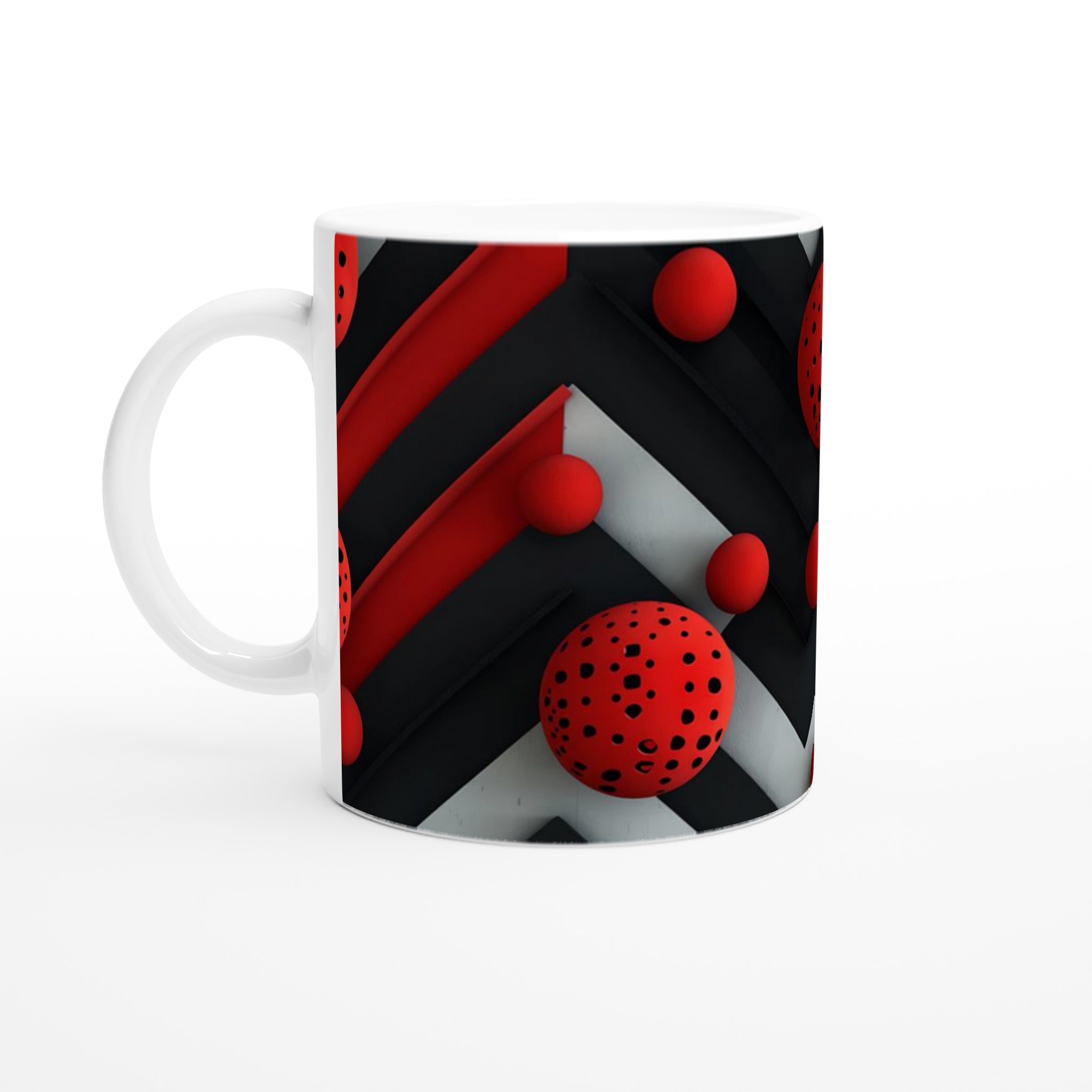 Lyft din fikapaus med denna unikt designade keramikmugg som fångar ögat med sitt dynamiska möte mellan rött, svart och vitt. De abstrakta formerna och den slående färgpaletten skapar en modern och konstnärlig känsla, perfekt för dig som älskar att omge dig med design som inspirerar. Denna mugg är inte bara en behållare för din favoritdryck, utan ett statementstycke som ger energi till varje morgonkaffe, afternoon tea eller avkopplande kvällsdricka.