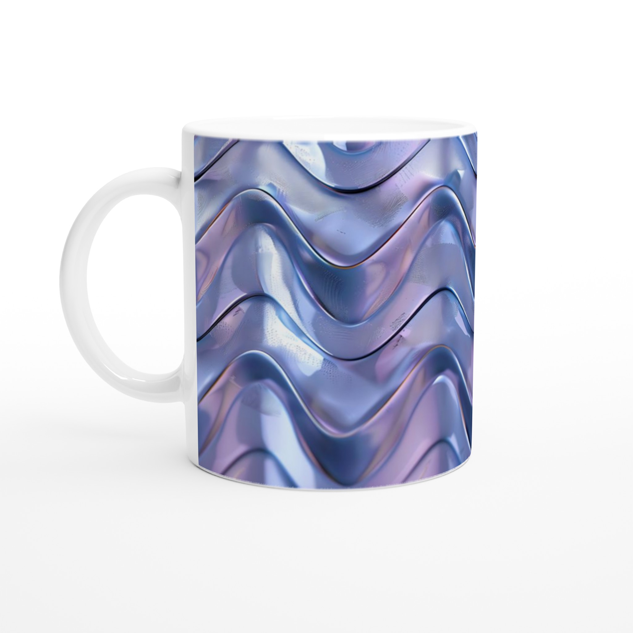 Lyft varje kaffestund med vår premium keramikmugg – stilren, hållbar och skapad för att låta ditt motiv glänsa. Den blanka vita ytan ger ett skarpt och levande tryck som verkligen sticker ut, oavsett om det är en personlig design, ett roligt citat eller en present till någon du tycker om. Inspirerad av lugna, böljande vågor i mjuka, iriserande nyanser av blått och lila, ger denna mugg en touch av abstrakt elegans till din vardag. Välj bland sju keramiska färger för att perfekt matcha din stil eller inredning – från klassiskt vitt till lugnande blått eller energiskt rött.