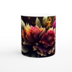 Väck din inre konstnär varje morgon med vår unika keramikmugg, prydd med ett abstrakt och fängslande blomstermönster i eleganta nyanser av svart, orange och guld. Denna stilrena och vackra mugg är perfekt för alla dagens stunder – morgonkaffet, en värmande kopp te eller en härlig varm choklad. Den blanka vita ytan gör att trycken framträder klart och färgstarkt, vilket gör muggen till en riktig favorit i vardagen. Varje detalj i designen är tänkt att inspirera och ge en touch av modern elegans till ditt hem eller kontor.