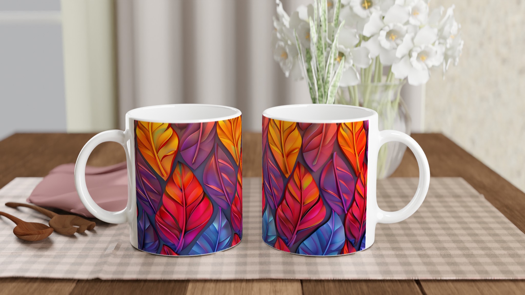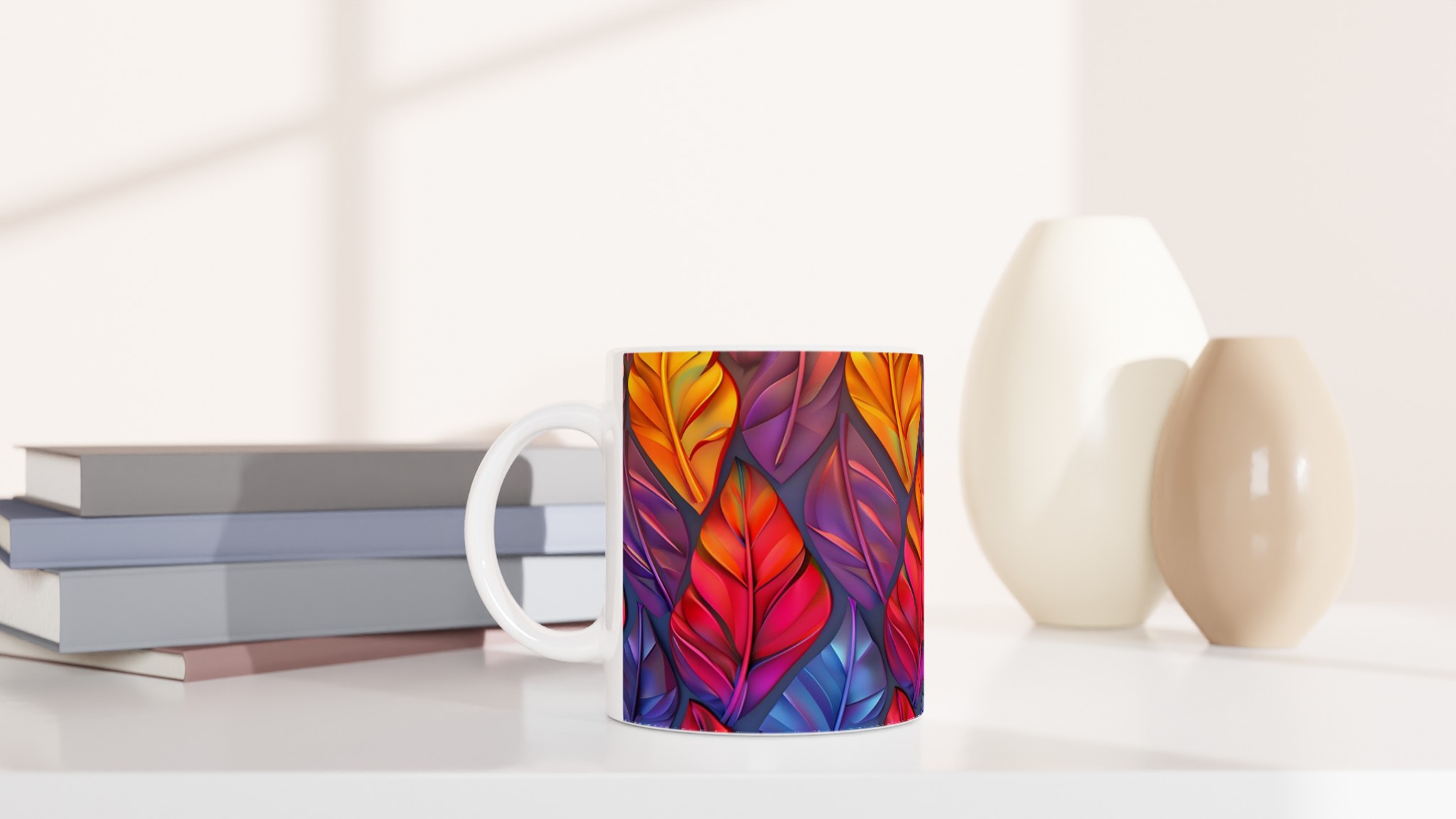 Abstrakta Höstlöv Keramisk Mugg – Levande Färgpalett i Ditt Val av 7 Färger