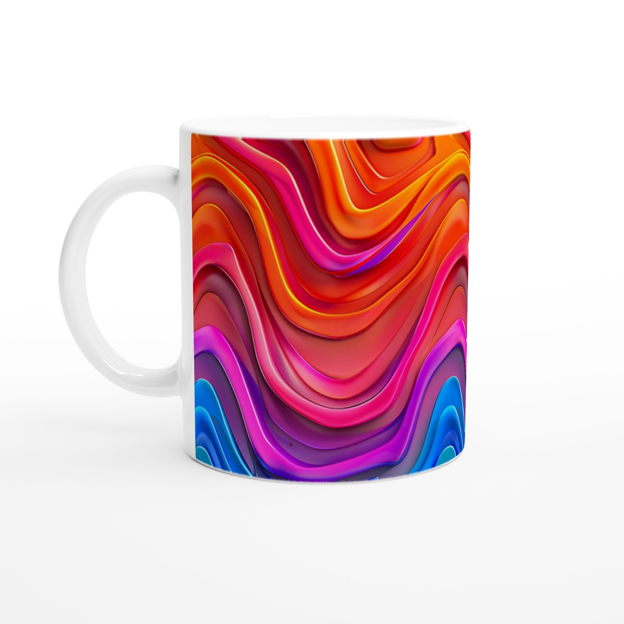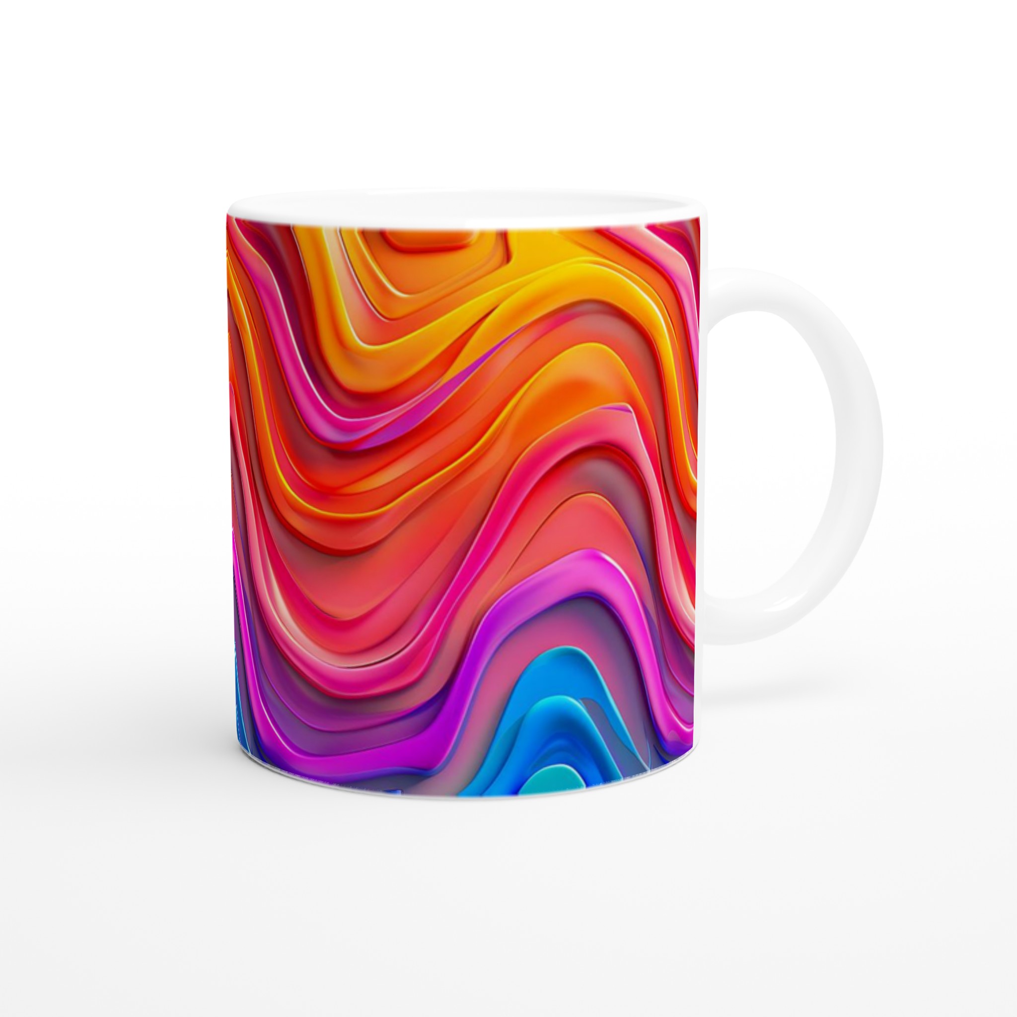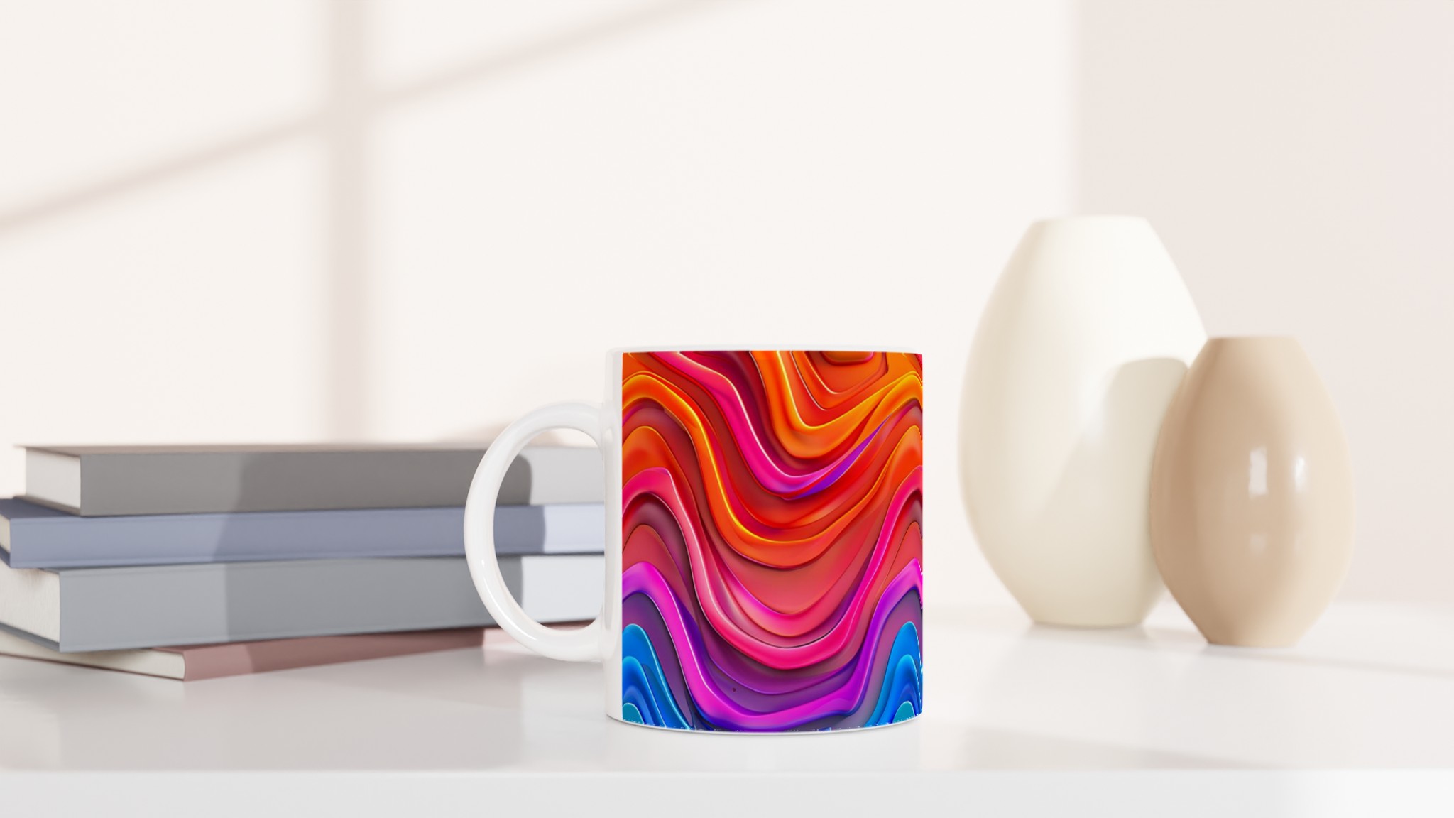 Väck dina sinnen varje morgon med denna abstrakta vågornas keramiska mugg, en hyllning till färg och dynamik. Inspirerad av bilden, där levande nyanser av orange, rosa och blått flödar samman i en hypnotisk dans, är denna mugg mer än bara en dryckesbehållare – den är ett konstverk för din hand. Varje kaffestund blir en upplevelse, varje te en stund av glädje.