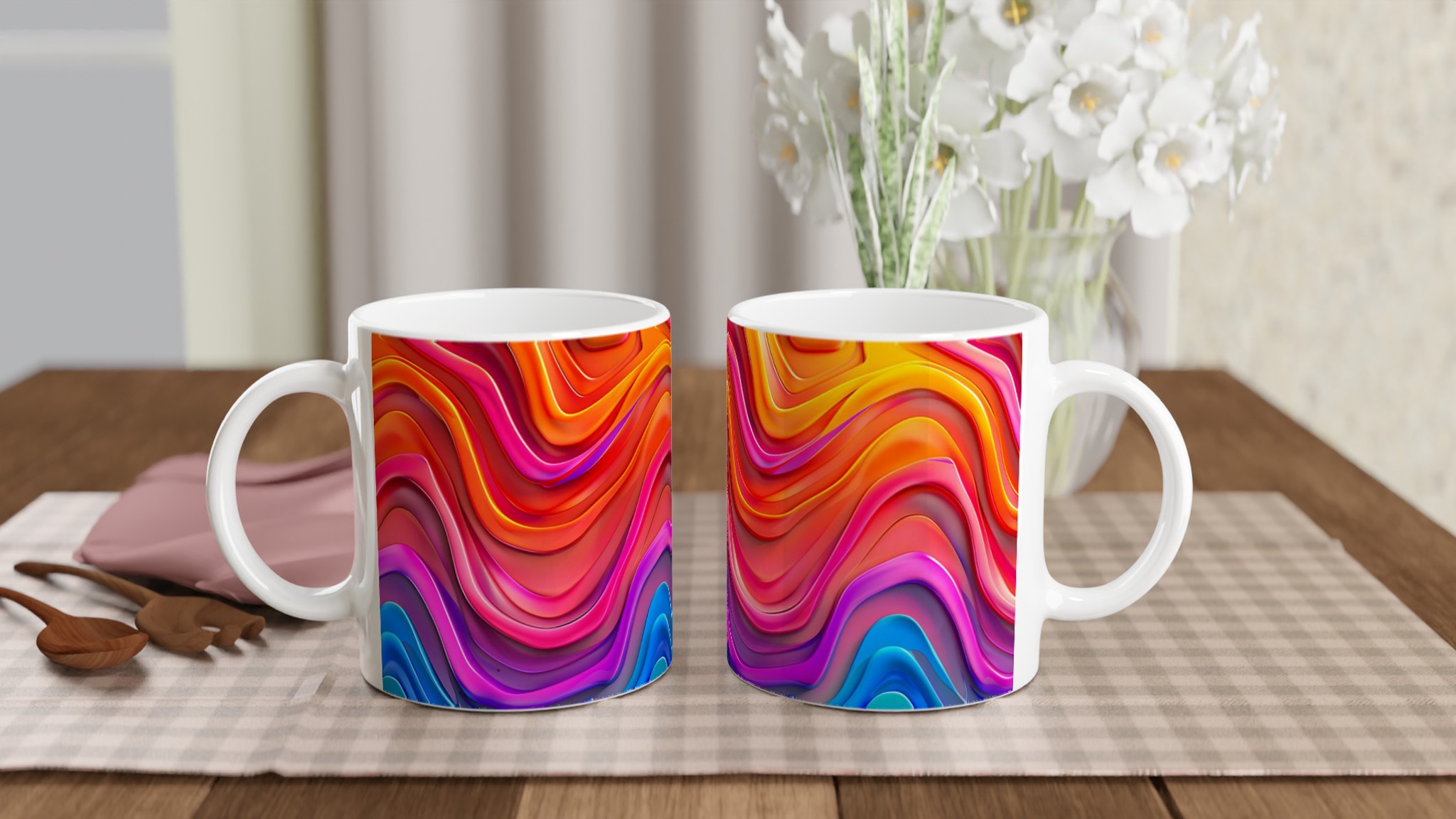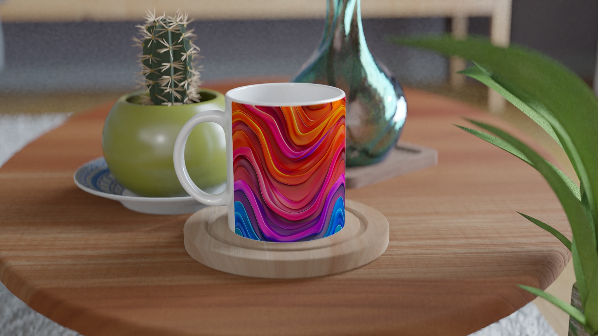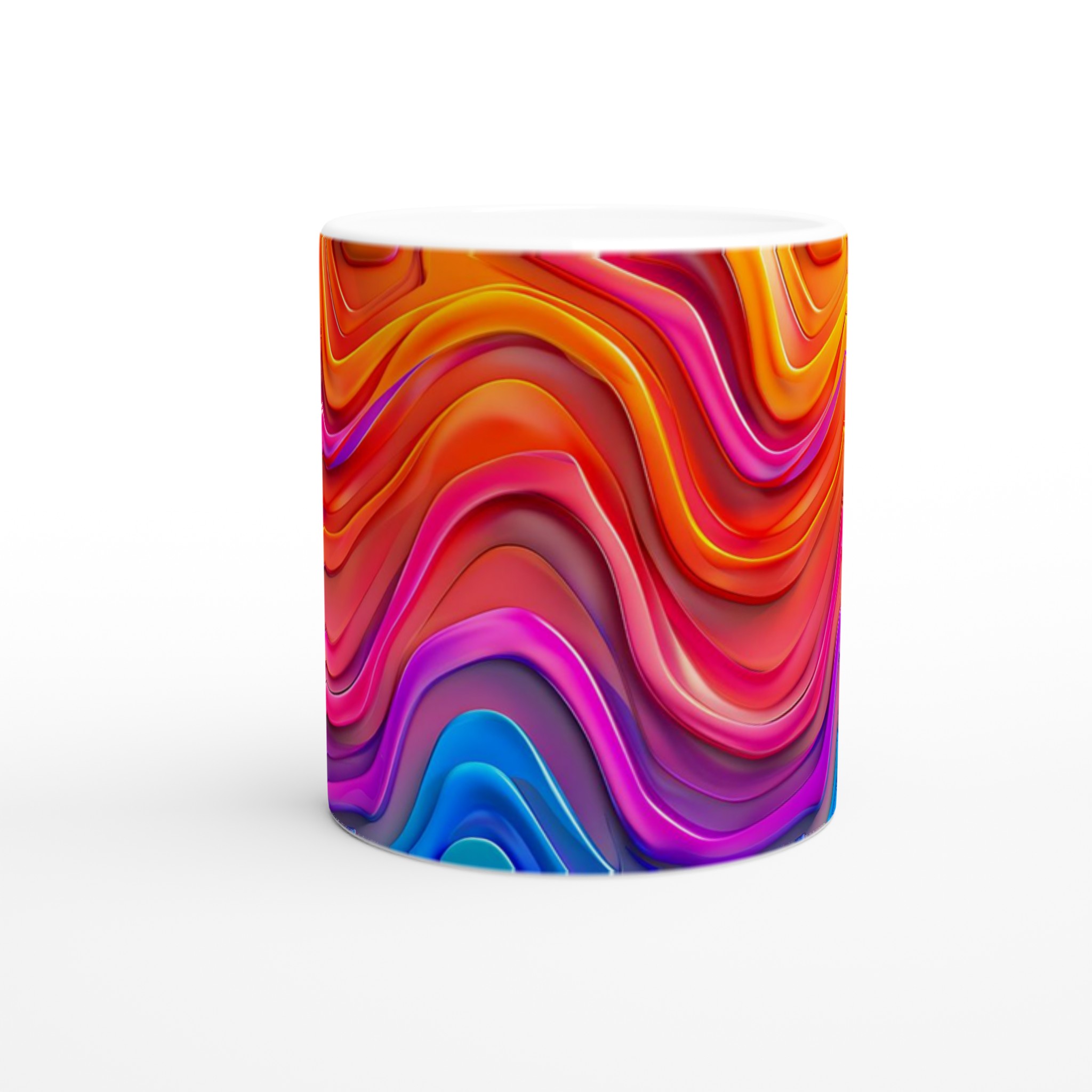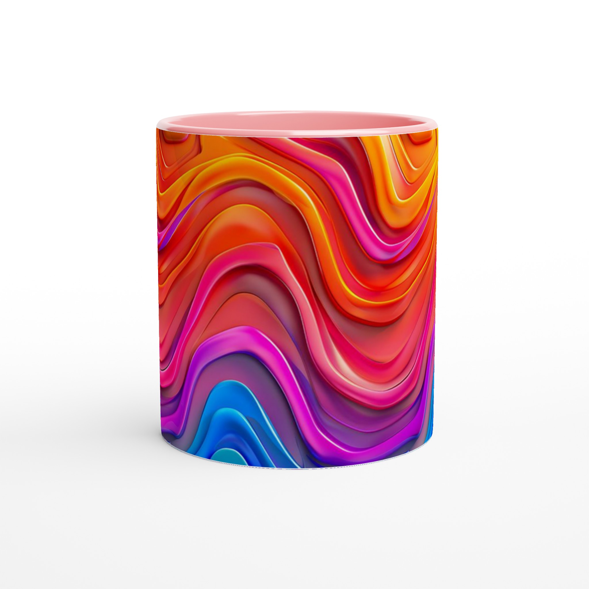 Väck dina sinnen varje morgon med denna abstrakta vågornas keramiska mugg, en hyllning till färg och dynamik. Inspirerad av bilden, där levande nyanser av orange, rosa och blått flödar samman i en hypnotisk dans, är denna mugg mer än bara en dryckesbehållare – den är ett konstverk för din hand. Varje kaffestund blir en upplevelse, varje te en stund av glädje.