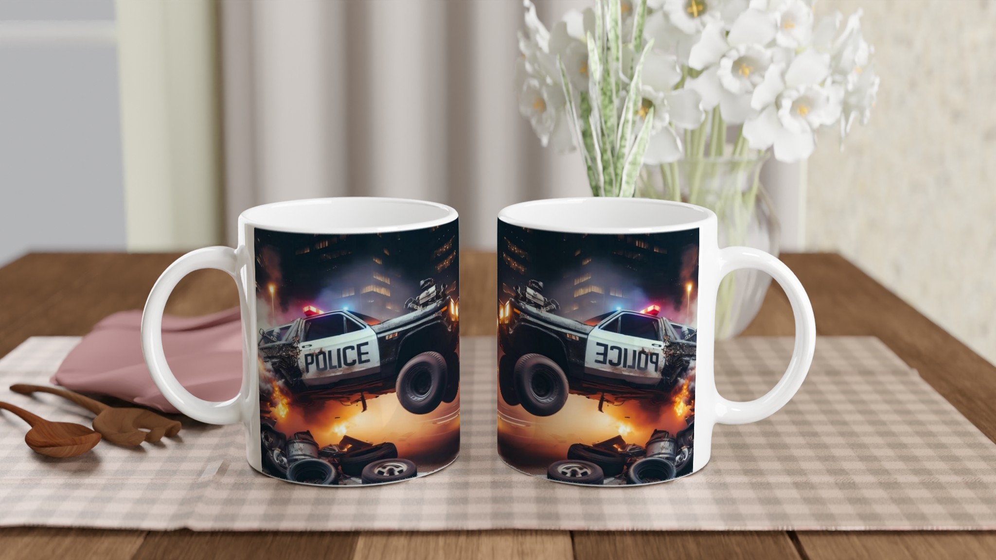 Fånga den råa energin och spänningen i varje klunk med vår adrenalinladdade keramiska mugg. Perfekt för morgonkaffet som väcker dig, kvällens varma choklad efter en lång dag, eller när du bara vill njuta av en kopp te med en känsla av action. Den blanka vita ytan ser till att de intensiva trycken, inspirerade av dramatiska scener, framhävs med klara och levande färger som håller sig fina även efter många turer i mikron och diskmaskinen.