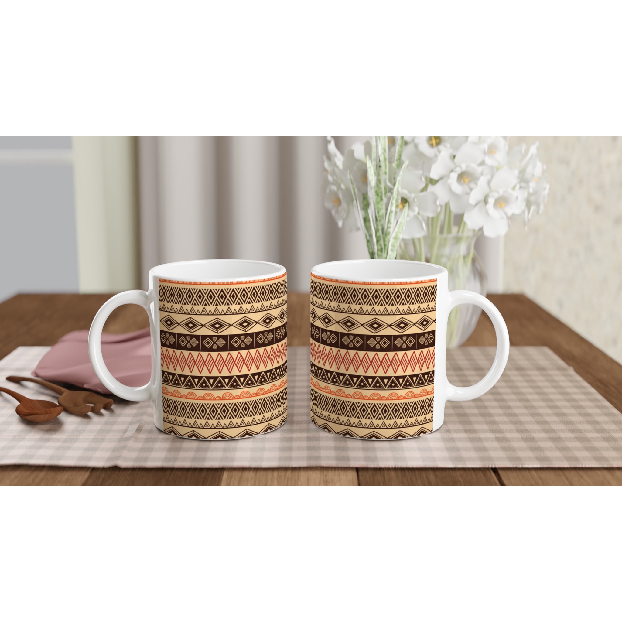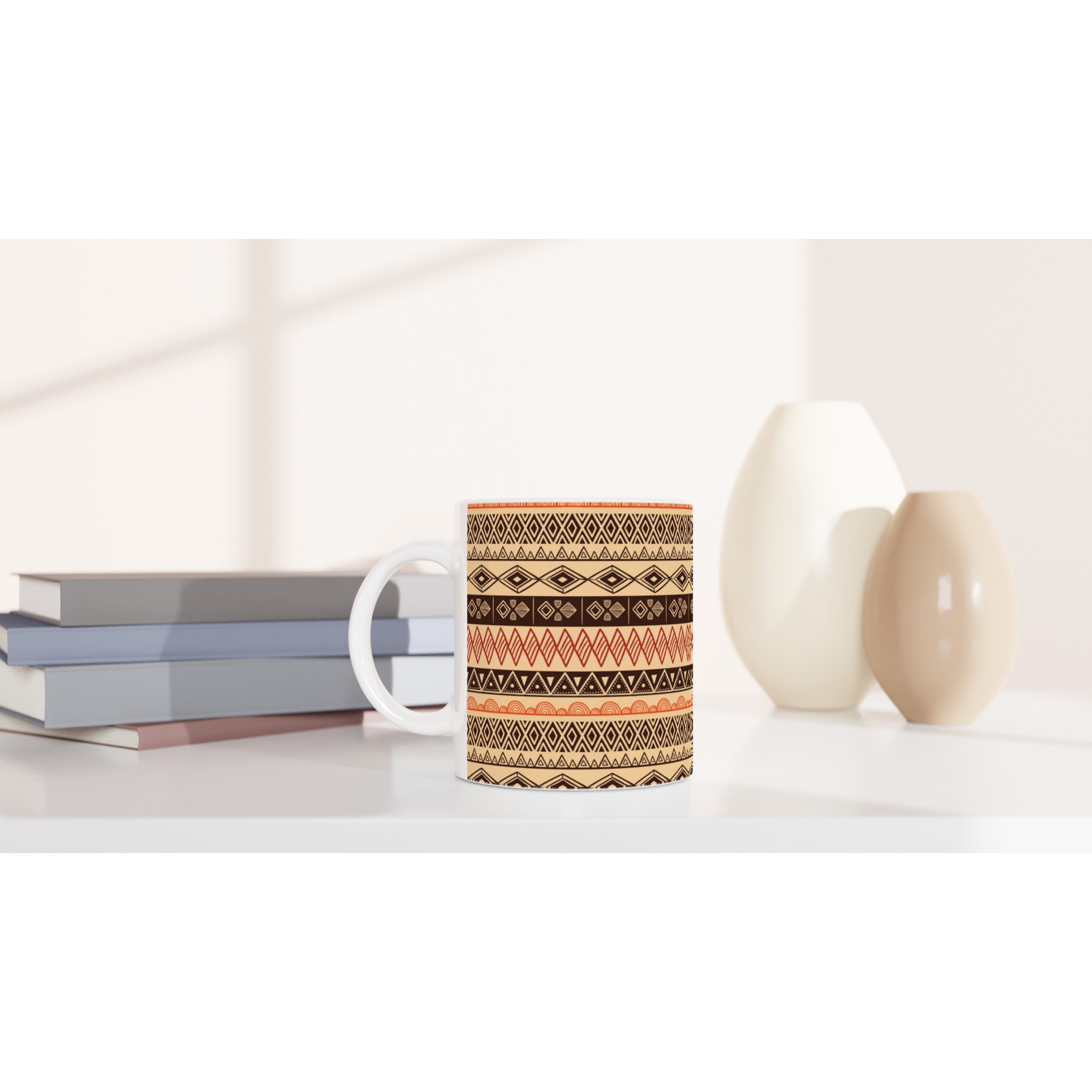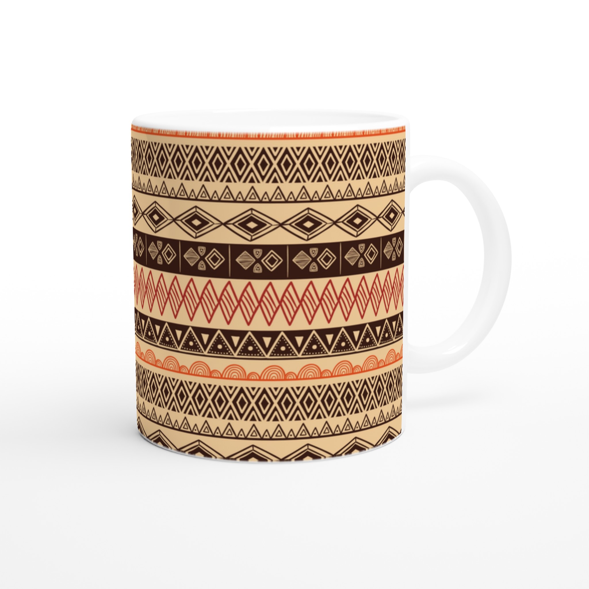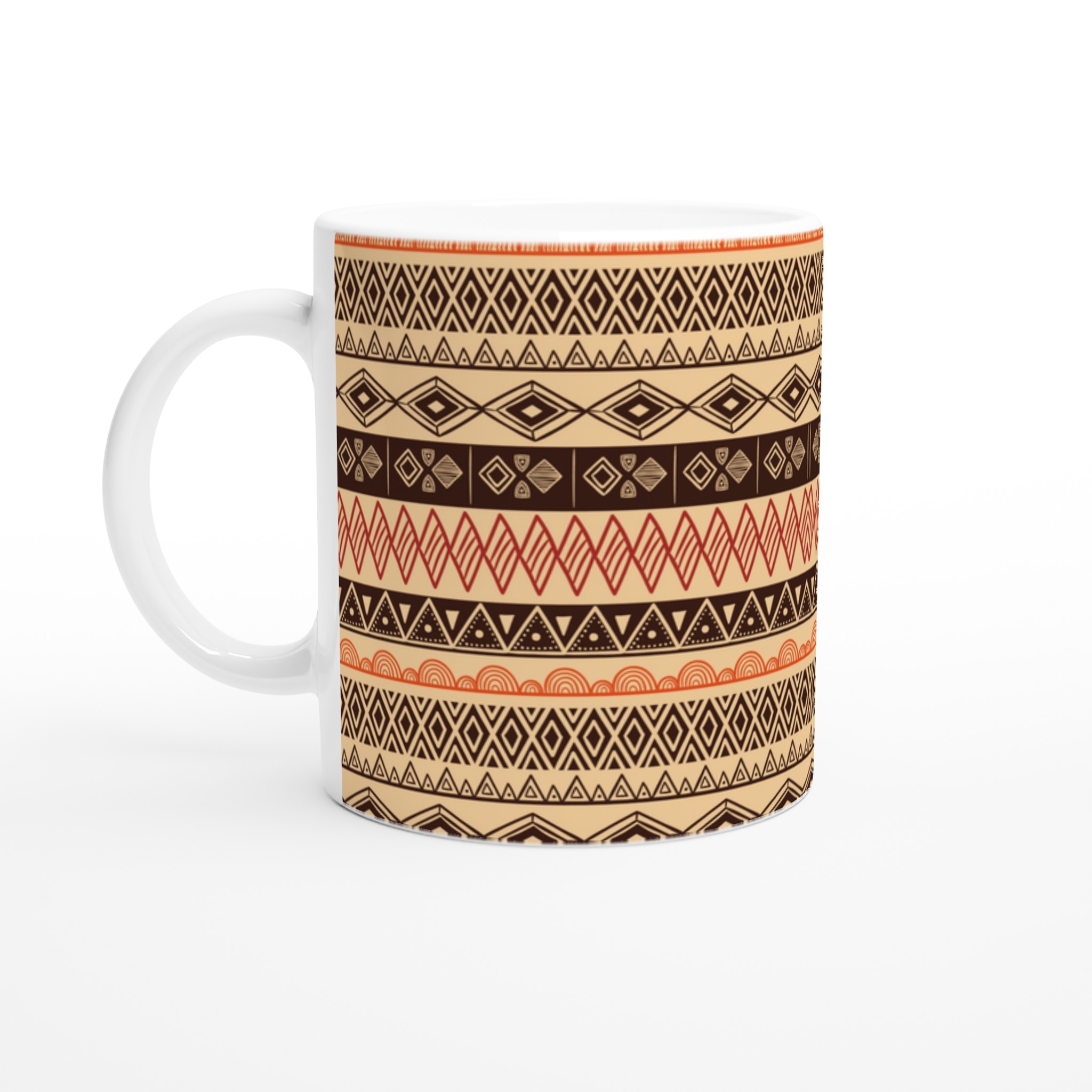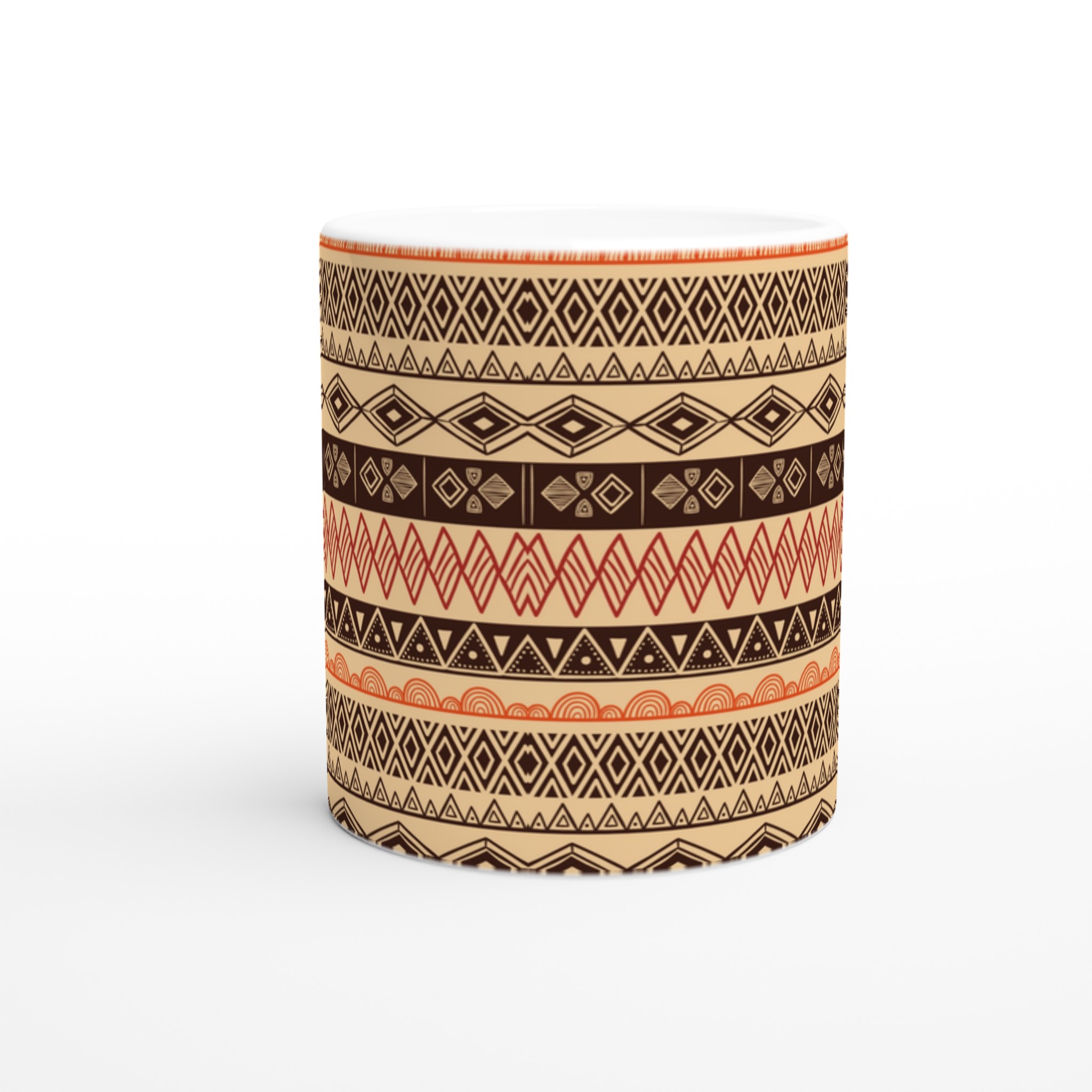 Omfamna en känsla av äventyr och kulturell rikedom med vår unika afrikanska bohemiska keramikmugg. Inspirerad av tidlösa etniska mönster i varma jordnära toner av brunt, rött och krämvitt, blir denna mugg en omedelbar favorit som förgyller varje fikastund.