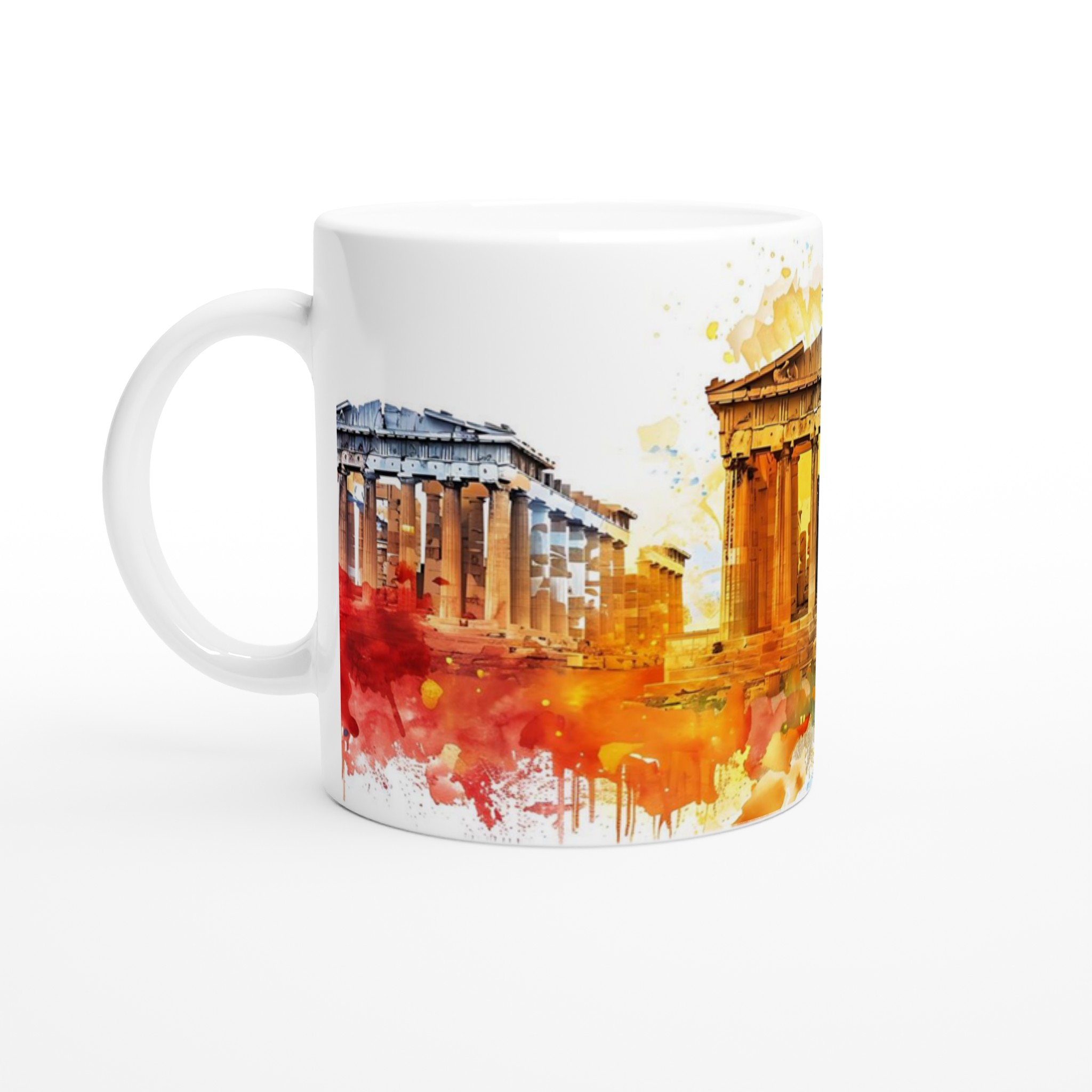 Lyft varje kaffestund med vår premium keramikmugg – stilren, hållbar och skapad för att låta ditt motiv glänsa. Denna unika mugg fångar Akropolis majestätiska skönhet med en dynamisk explosion av varma röda, gyllene gula och svala blå toner. Perfekt för historieälskare och konstentusiaster som uppskattar en modern twist på klassisk arkitektur. Den blanka vita ytan ger ett skarpt och levande tryck som verkligen sticker ut, oavsett om det är en personlig design, ett roligt citat eller en present till någon du tycker om.