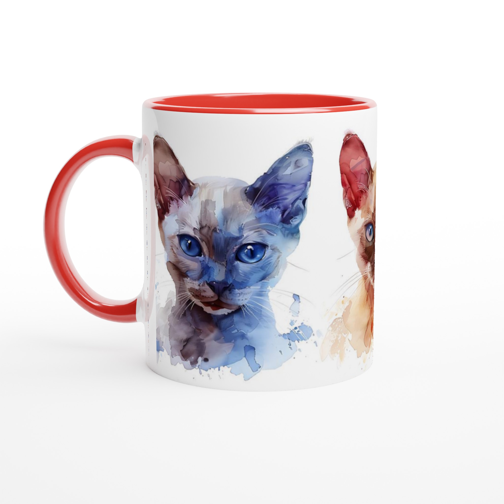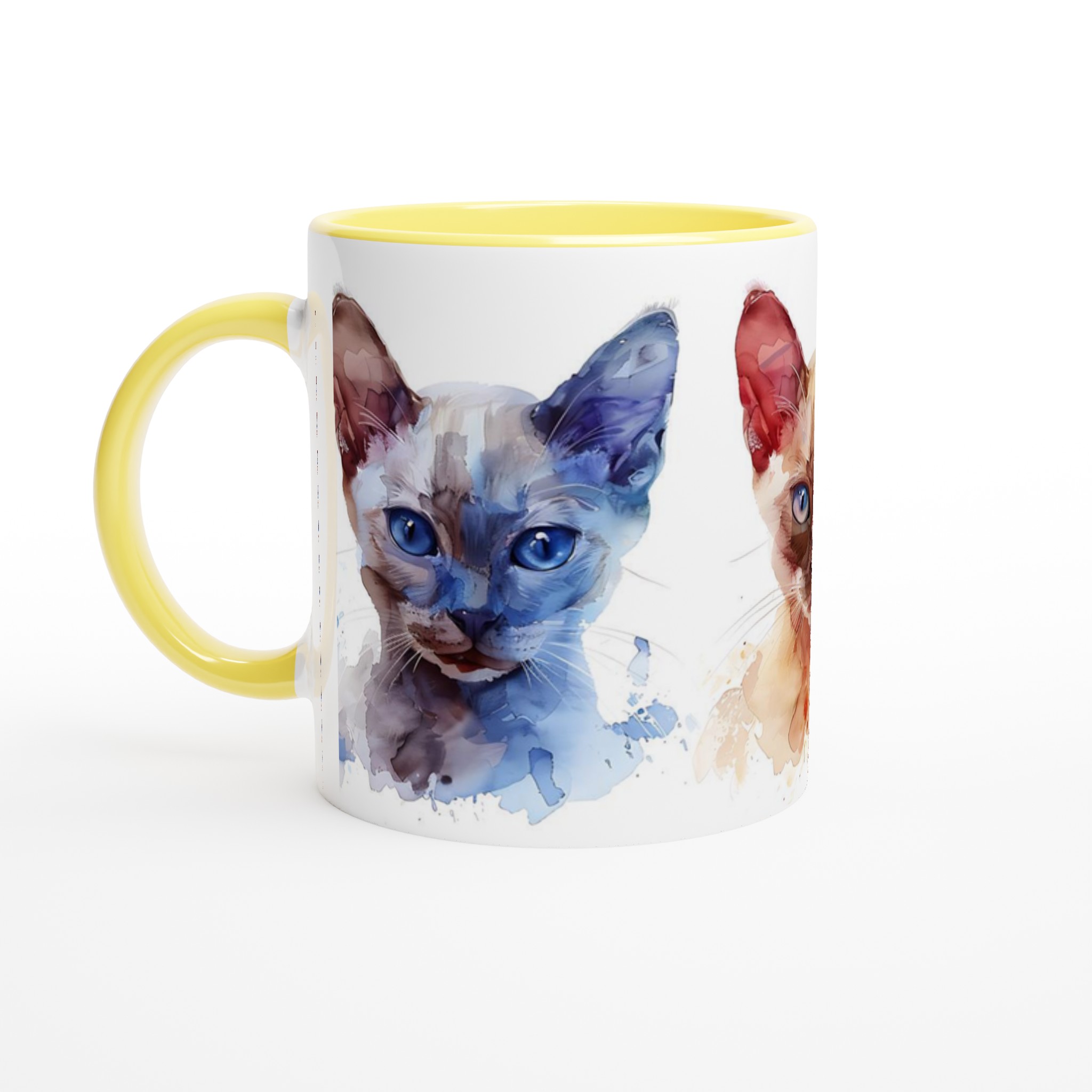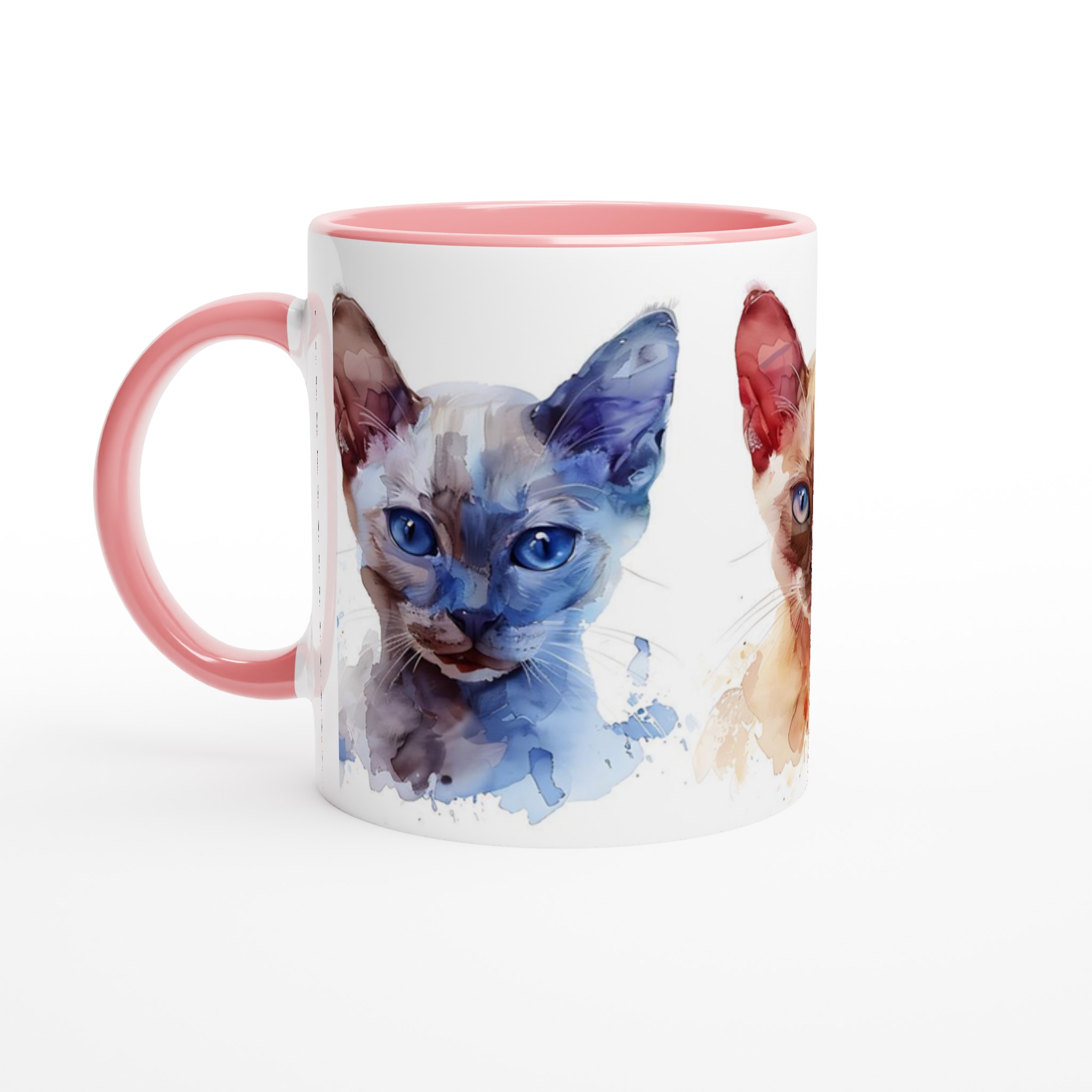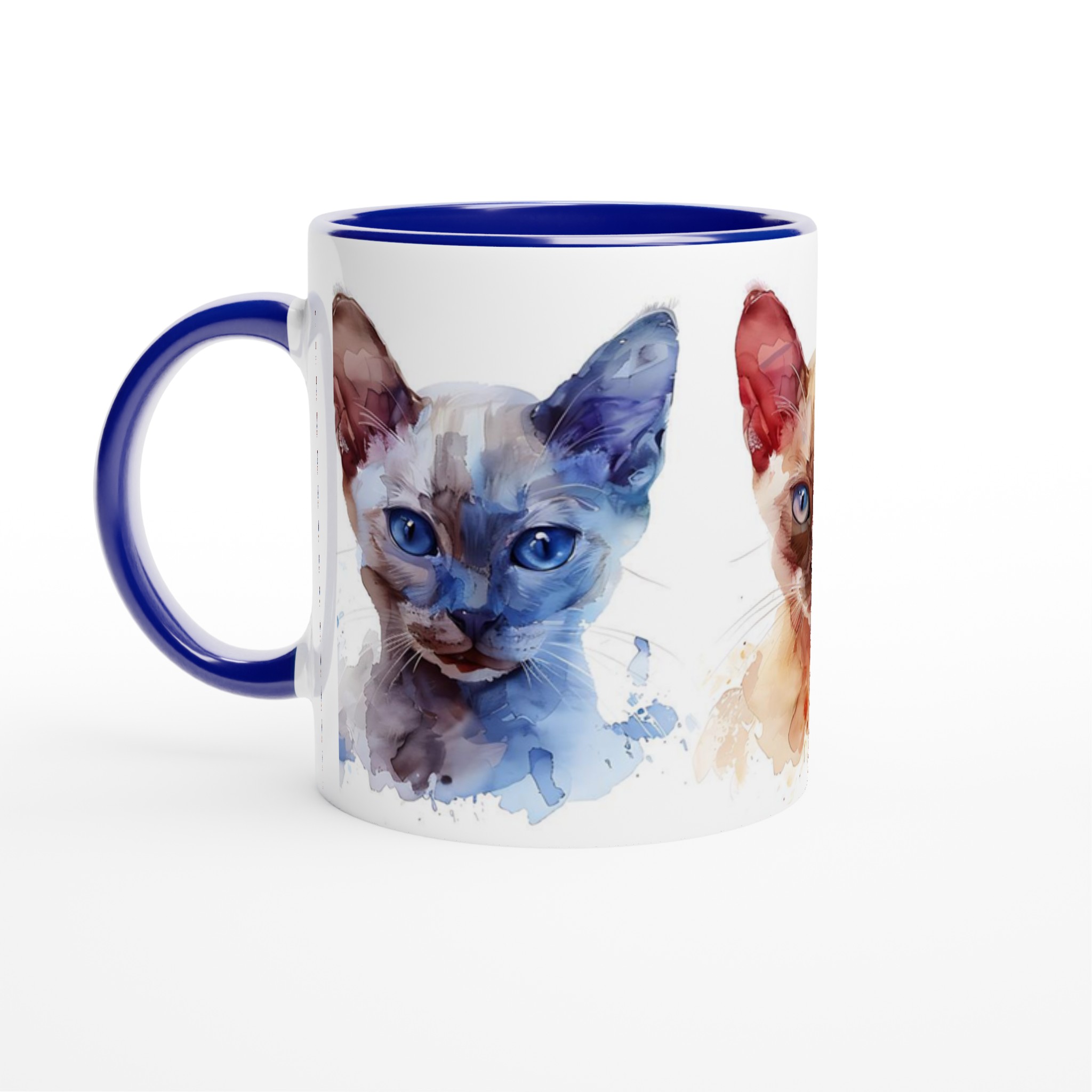 Låt dig förtrollas av dessa lekfulla akvarellkatter varje gång du tar en klunk! Den här stilrena keramiska muggen blir snabbt en vardagsfavorit. Perfekt för morgonkaffet, kvällens varma choklad eller när du bara vill njuta av en kopp te. Med sitt unika kattmotiv, målat i livliga akvarelltoner som påminner om vattnets klara färger och konstnärliga penseldrag, ger den en personlig touch till varje dryckesstund. Den blanka vita ytan gör att trycken framhävs med klara och levande färger, som håller sig fina även efter många turer i mikron och diskmaskinen.