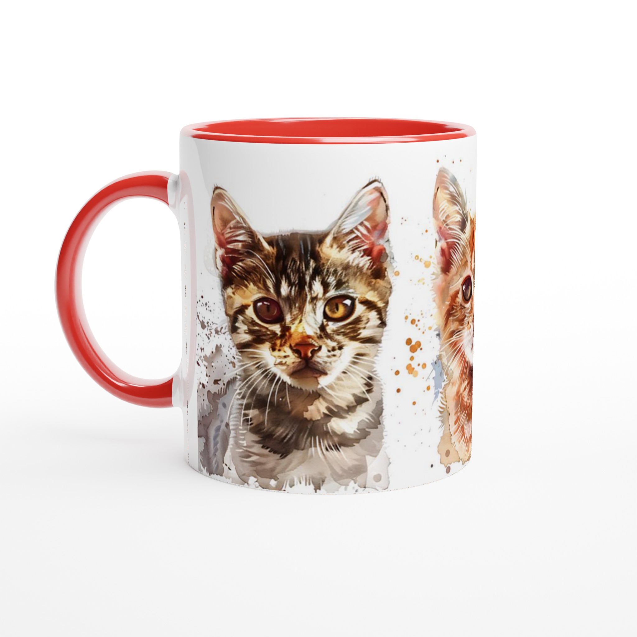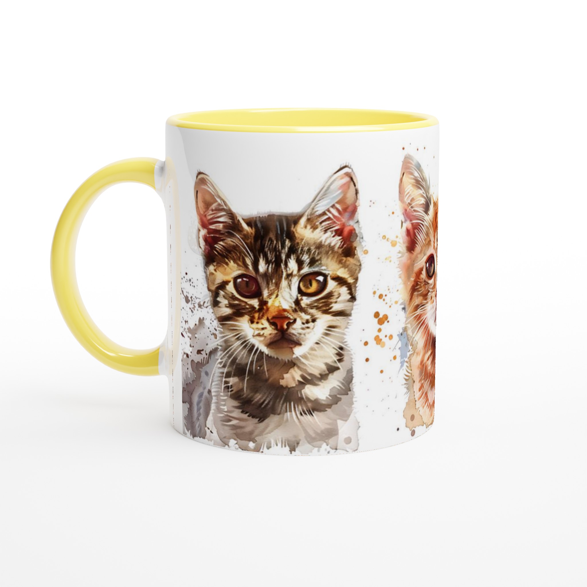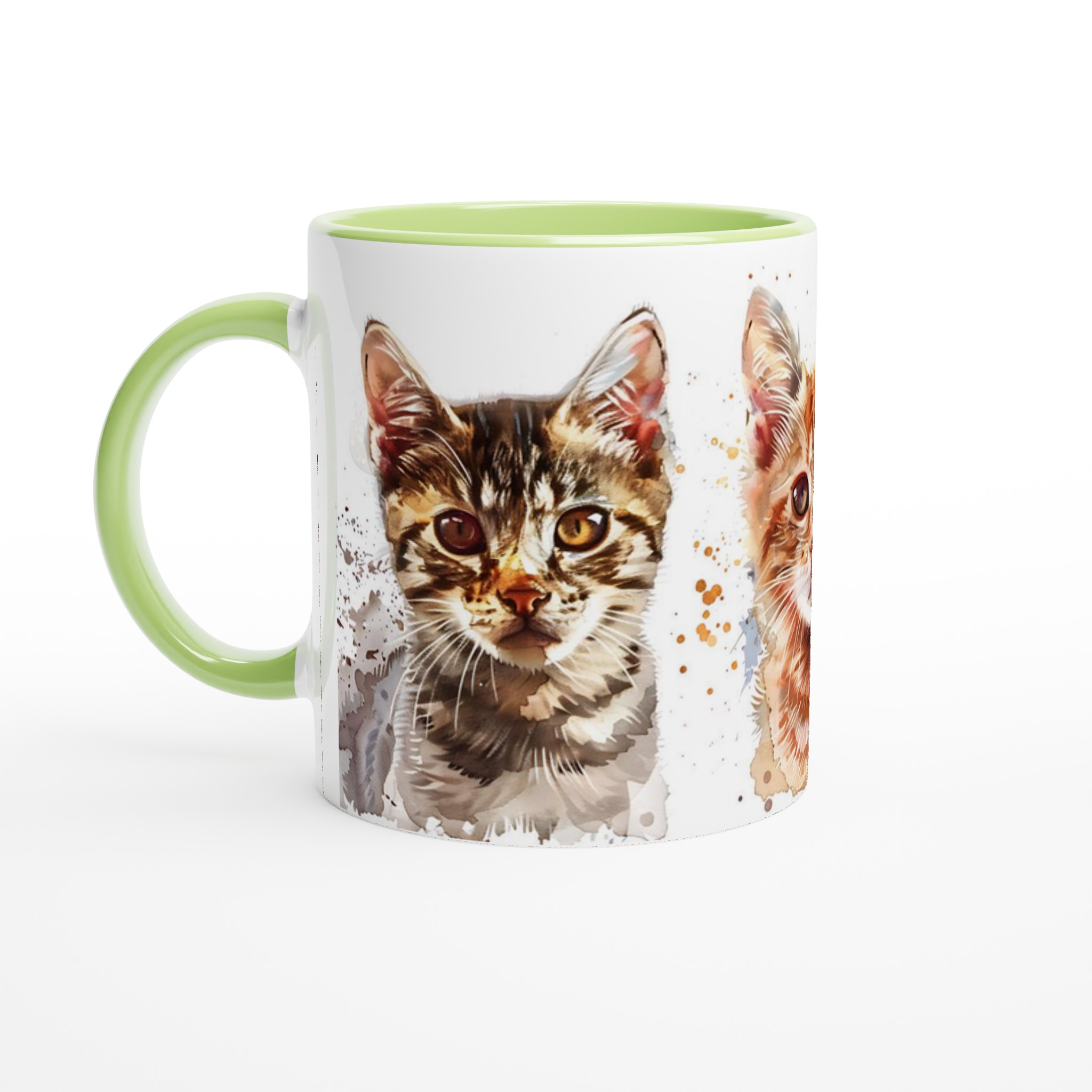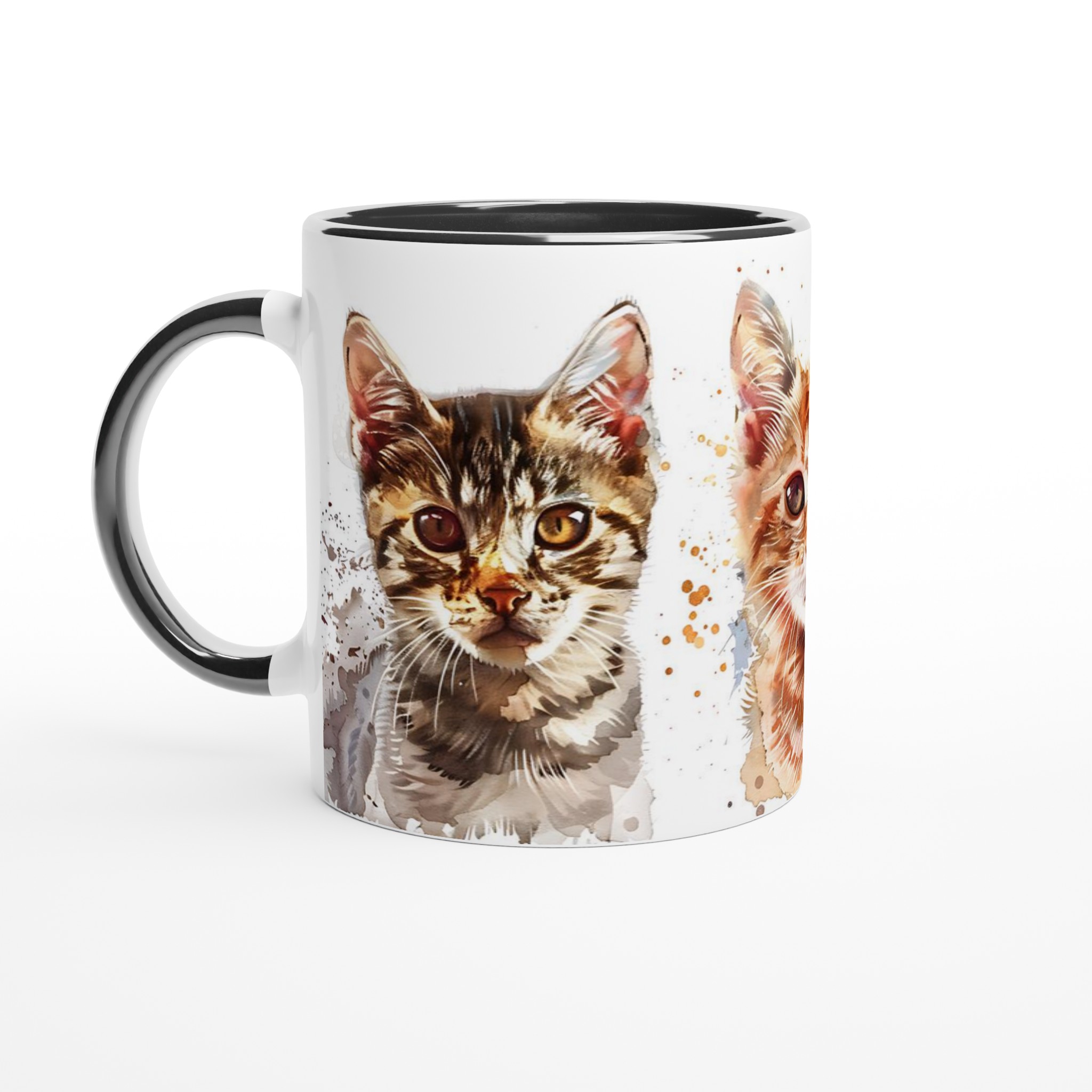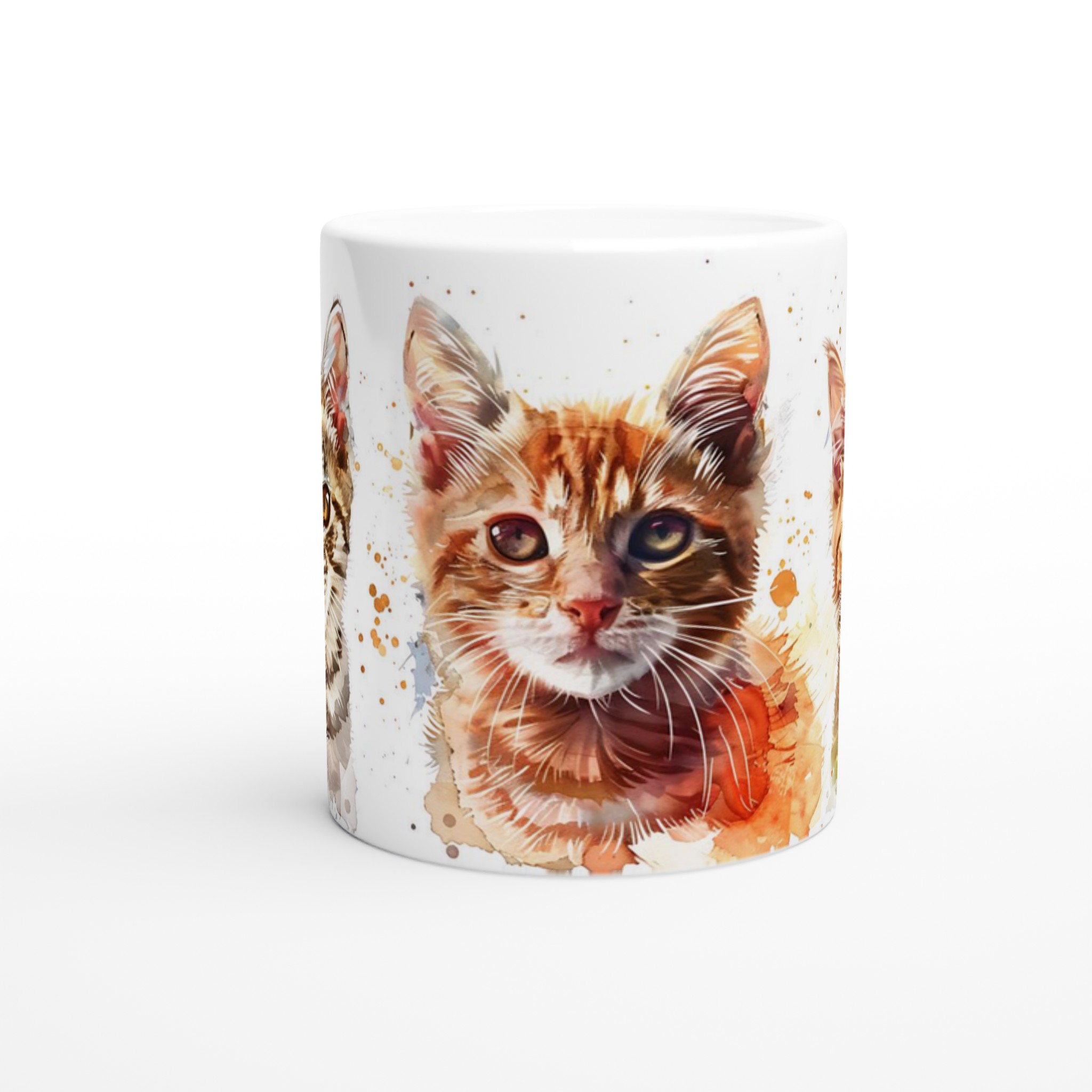 Väck liv i din morgonrutin med vår bedårande keramiska mugg, prydd med charmiga akvarellporträtt av kattungar. Varje klunk blir en fröjd när du omges av dessa lekfulla ansikten, fångade i livliga färgstänk. Denna stilrena mugg blir snabbt en vardagsfavorit, perfekt för morgonkaffet, kvällens varma choklad eller när du bara vill njuta av en kopp te. Den blanka vita ytan framhäver trycken med klara och levande färger, som håller sig fina även efter många turer i mikron och diskmaskinen.