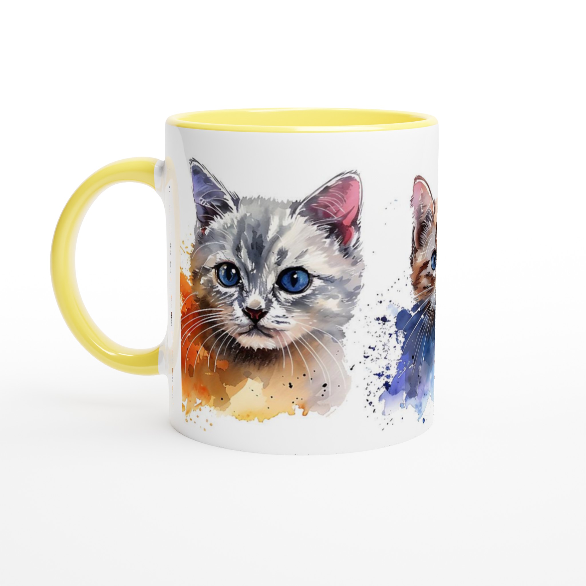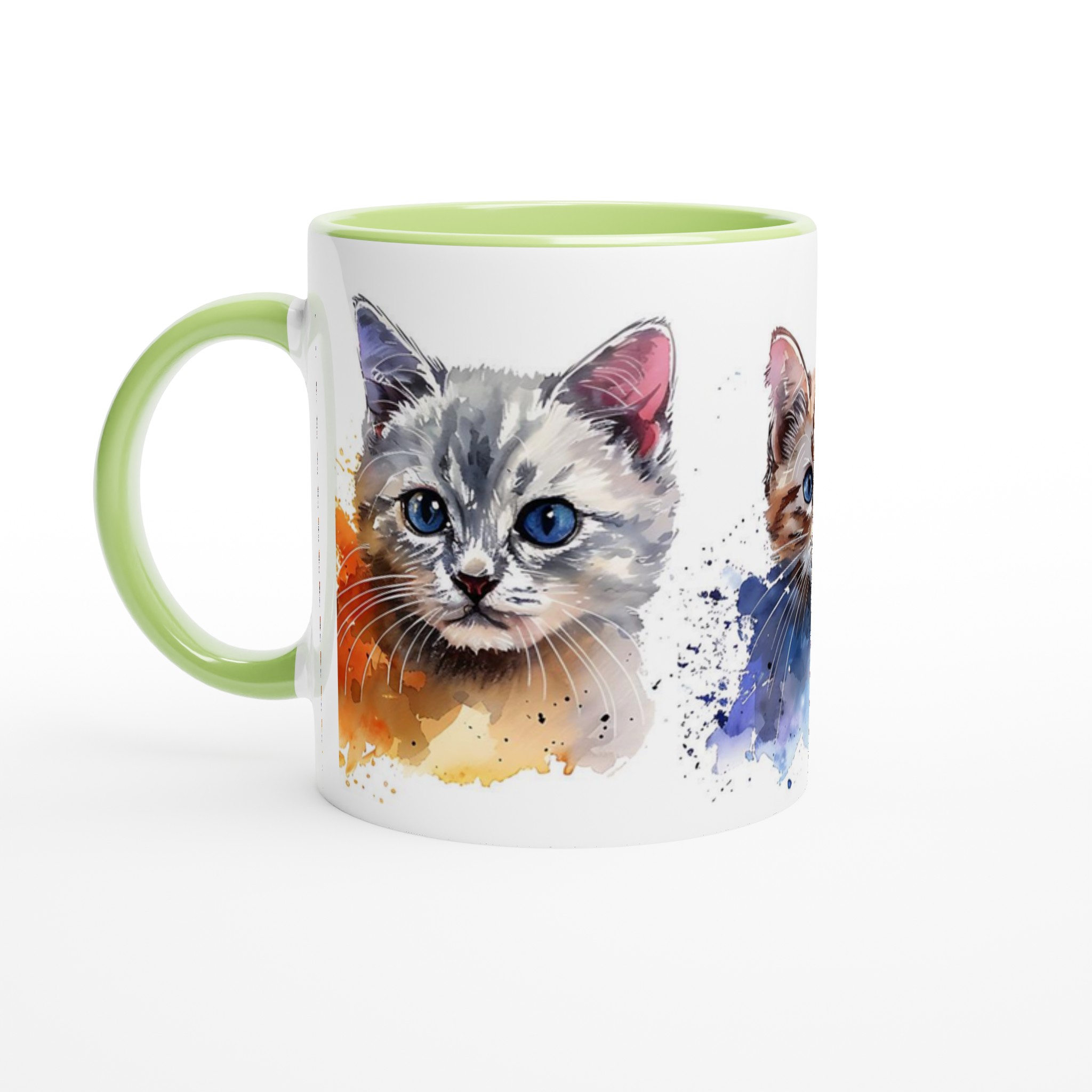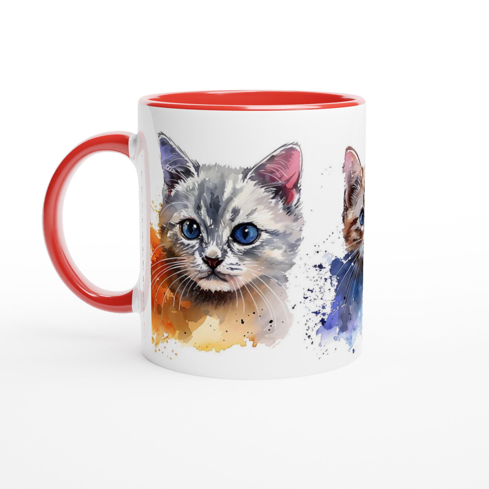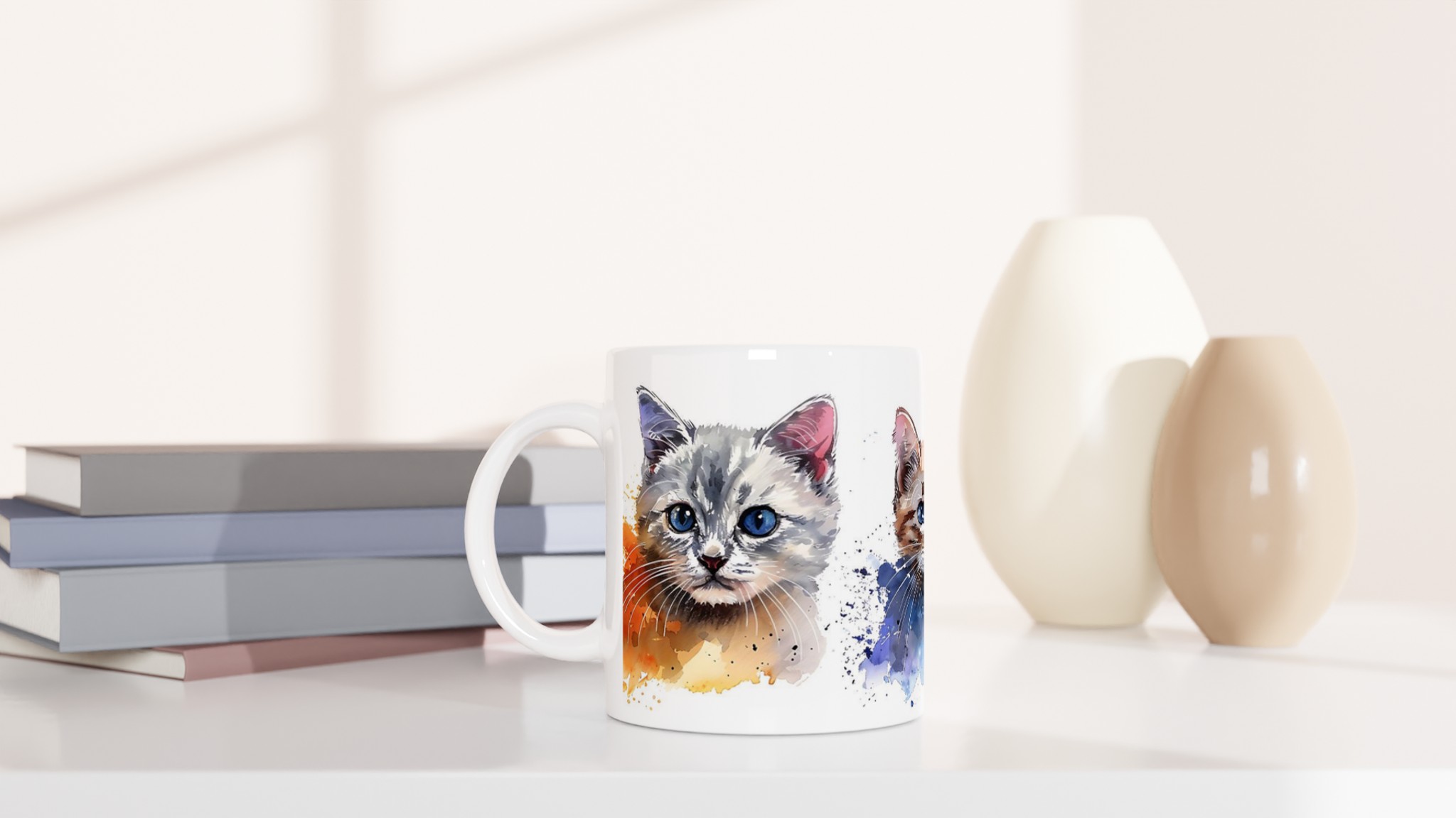 Förvandla varje fikastund till en konstupplevelse med vår bedårande akvarell kattmugg. Föreställ dig att du sipprar ditt favoritkaffe eller te, omsluten av värmen från en mugg prydd med tre lekfulla kattungar, målade i en mjuk och drömsk akvarellstil. De uttrycksfulla ögonen och de subtila färgstänken ger liv åt varje kattunge, vilket skapar en känsla av lugn och glädje i din hand.