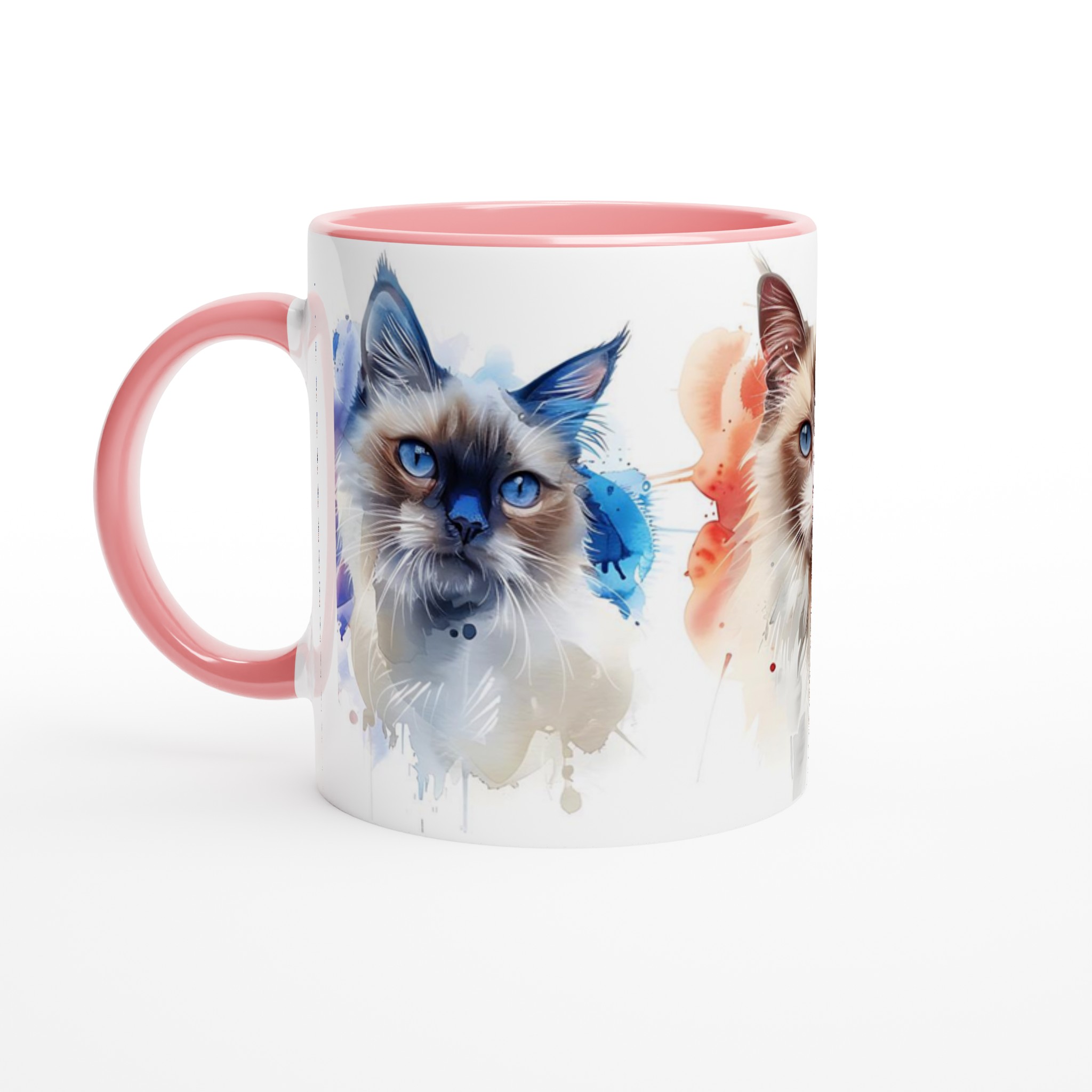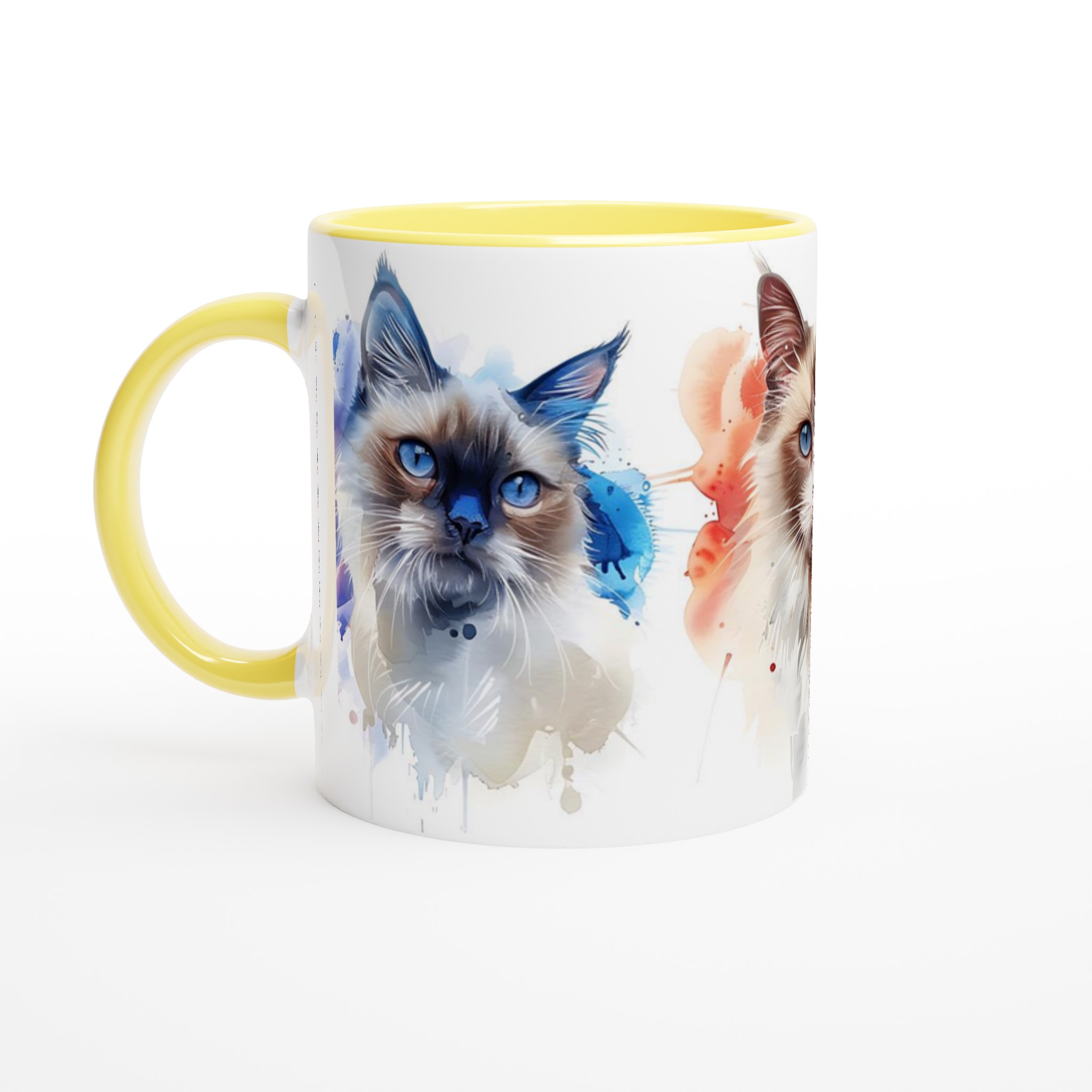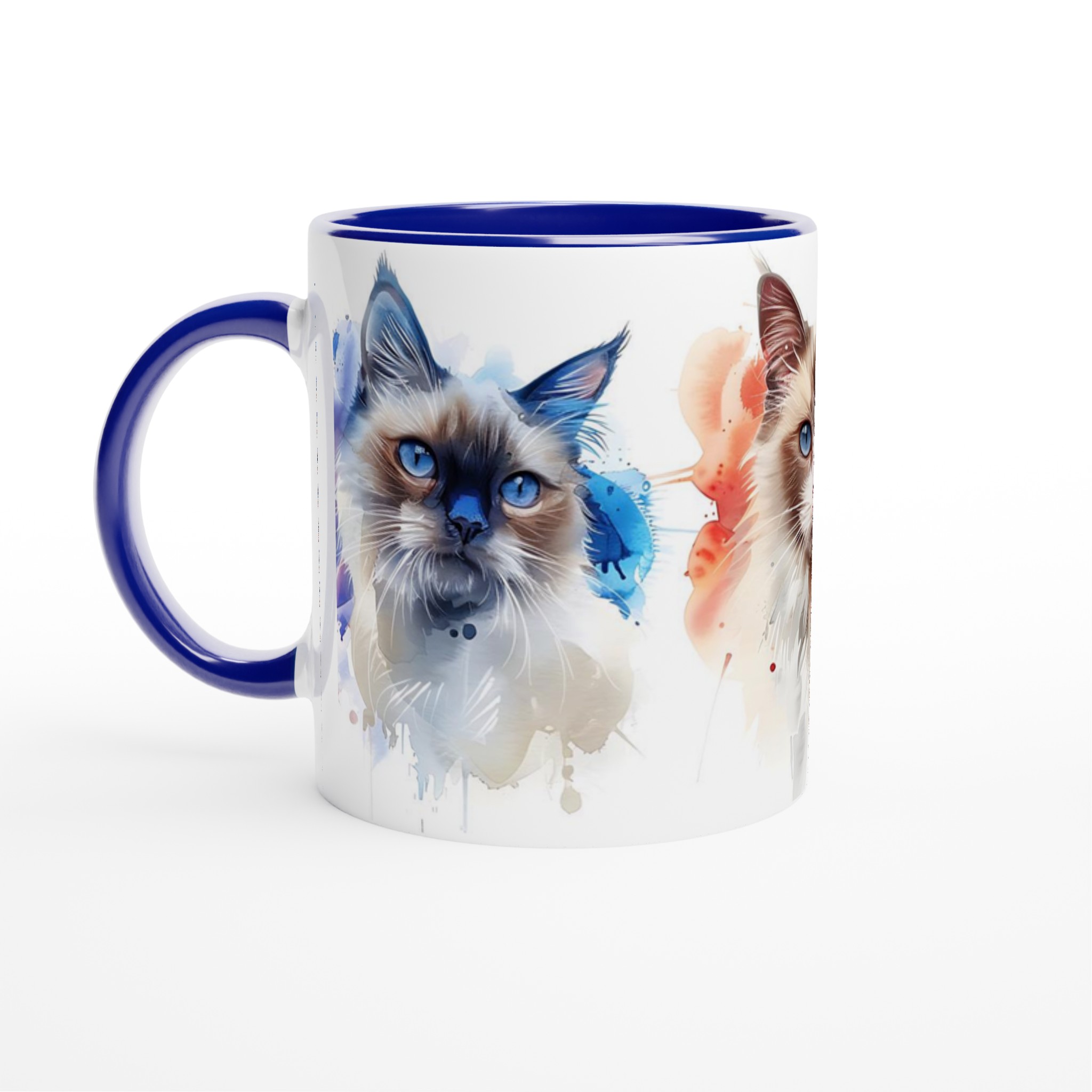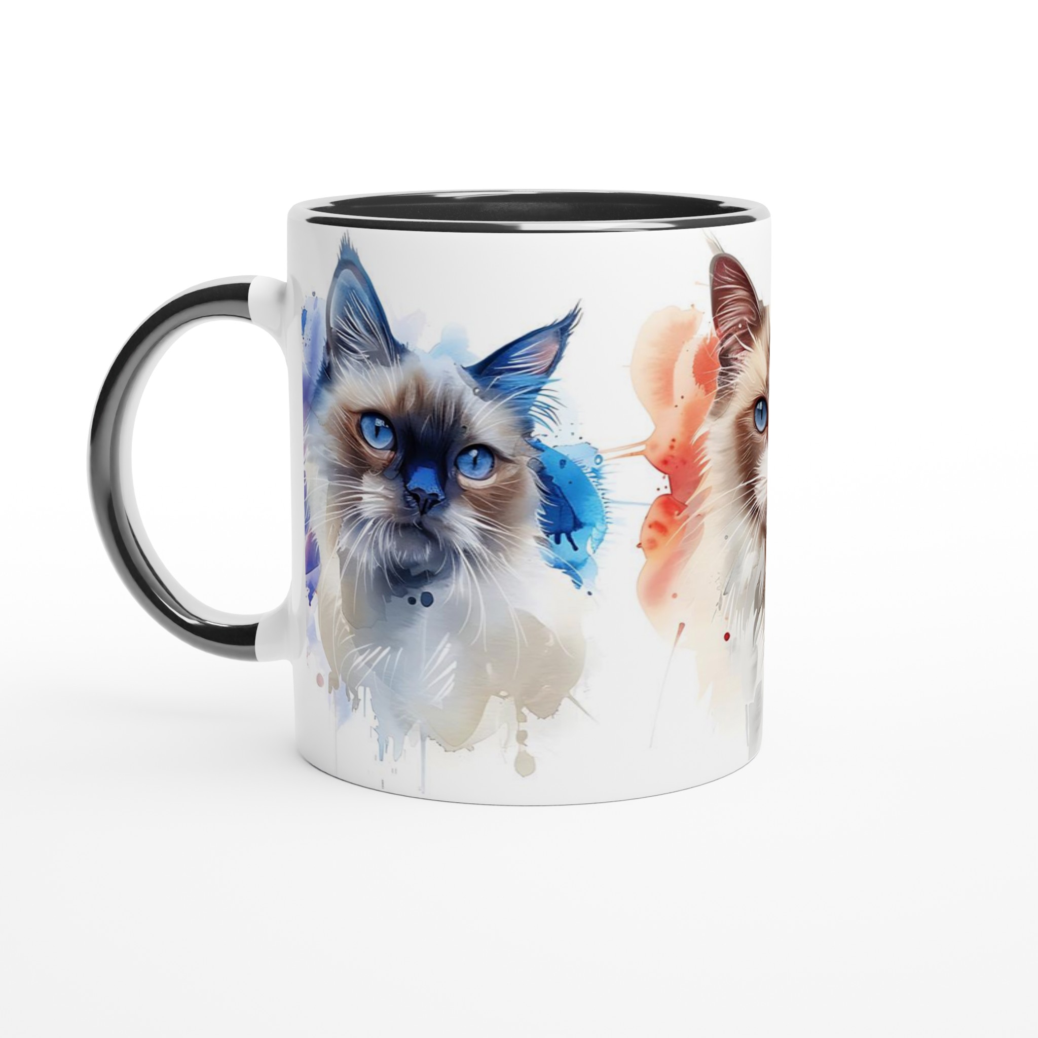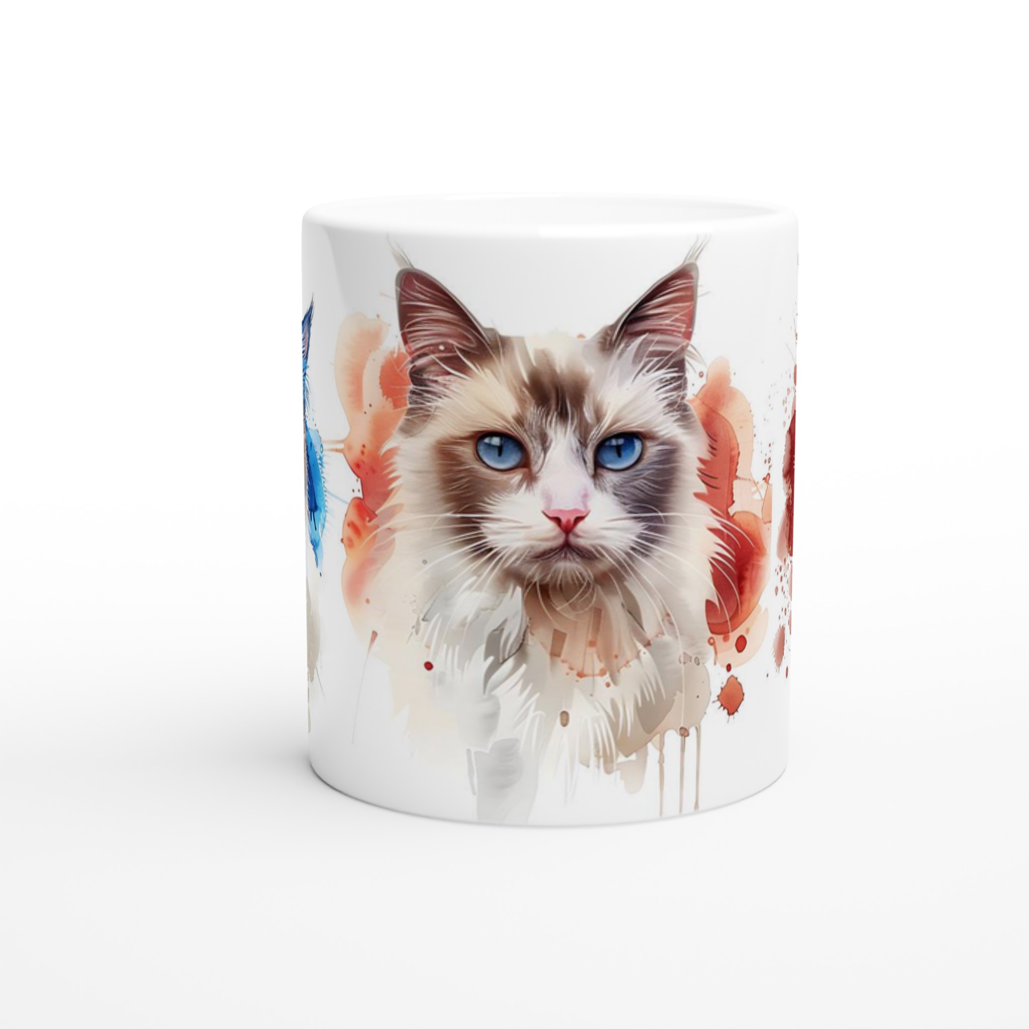 Fånga din kärlek till katter med denna stilrena keramiska mugg, som snabbt blir en vardagsfavorit. Varje mugg pryds av ett charmigt akvarellporträtt av en katt, där de uttrycksfulla blå ögonen och de mjuka färgskiftningarna framhäver den konstnärliga touchen. Perfekt för morgonkaffet, kvällens varma choklad eller när du bara vill njuta av en kopp te.