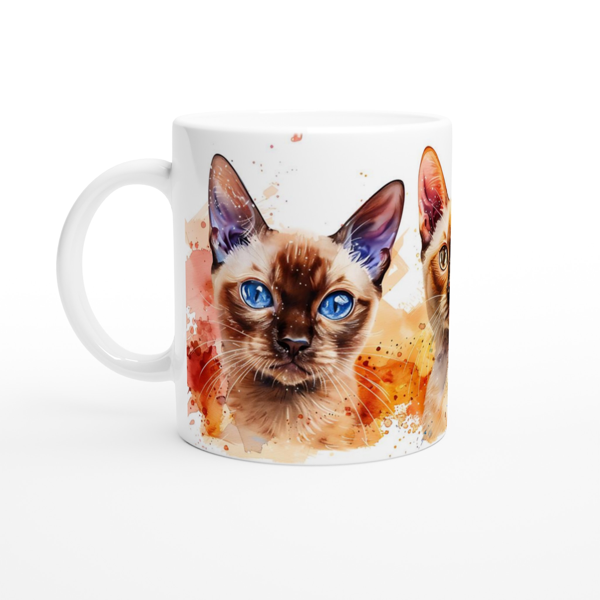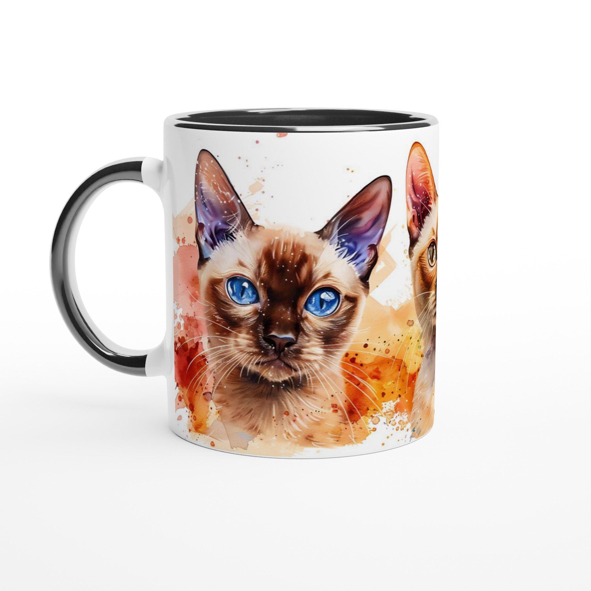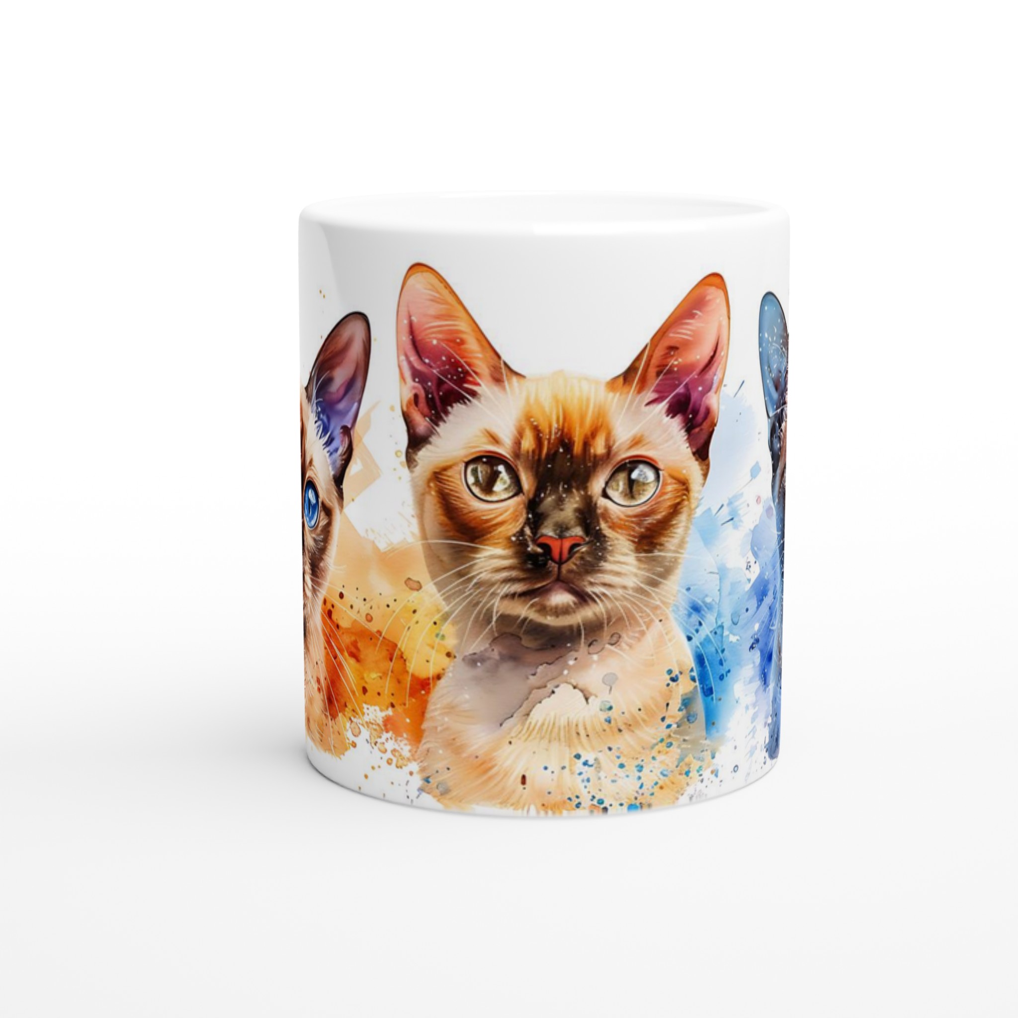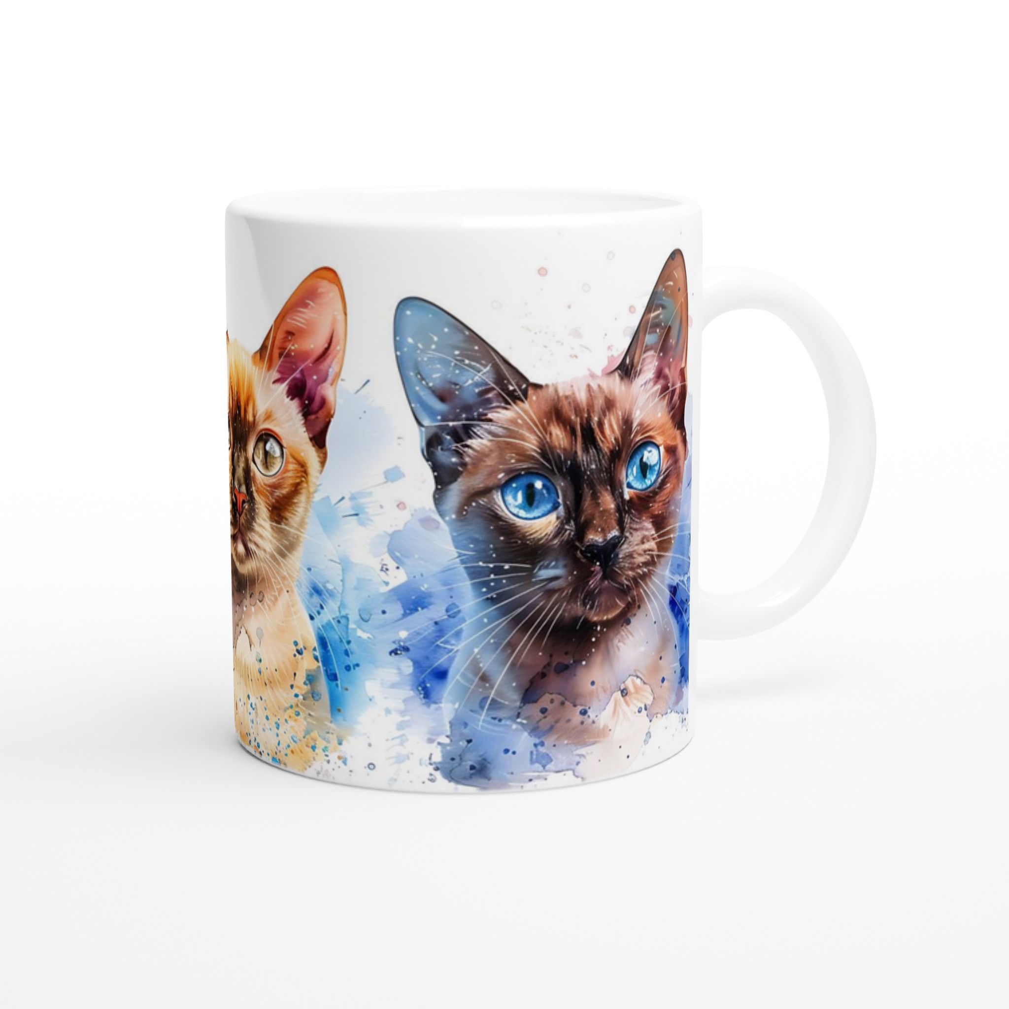 Vakna upp med stil med vår charmiga keramiska mugg, som förvandlar varje sipp till en konstnärlig upplevelse. Med en lekfull akvarellillustration av tre katter med slående blå ögon och färgstarka stänk, blir denna mugg snabbt en vardagsfavorit. Perfekt för morgonkaffet, kvällens varma choklad eller när du bara vill njuta av en kopp te.