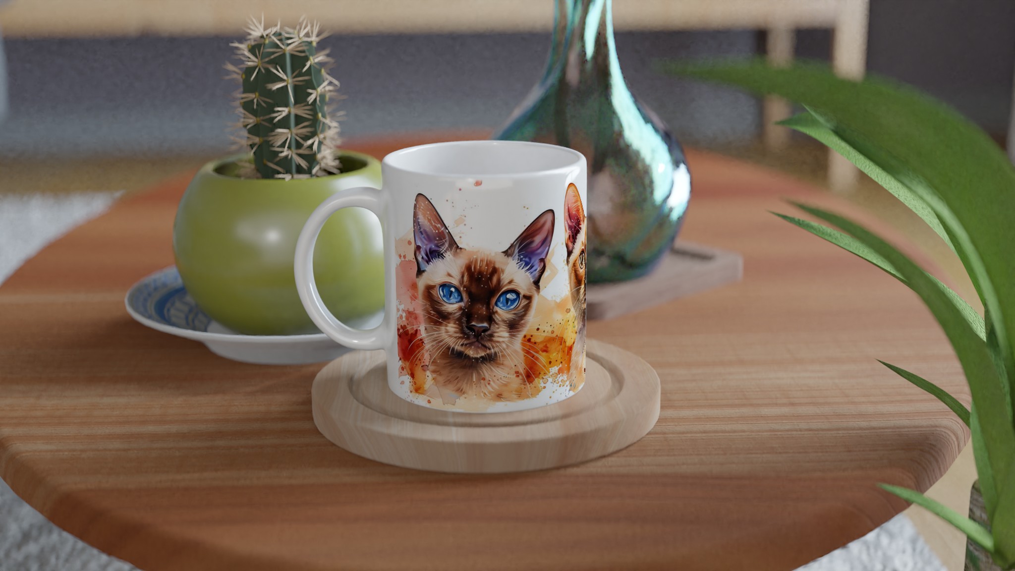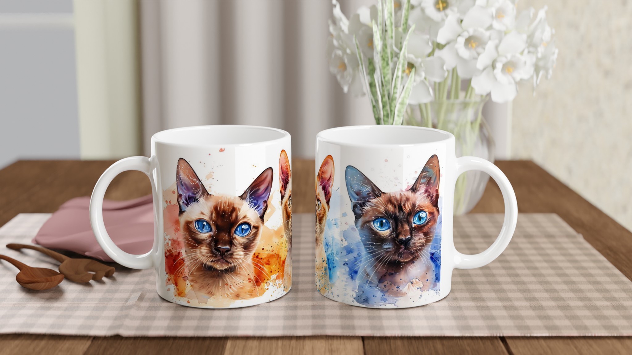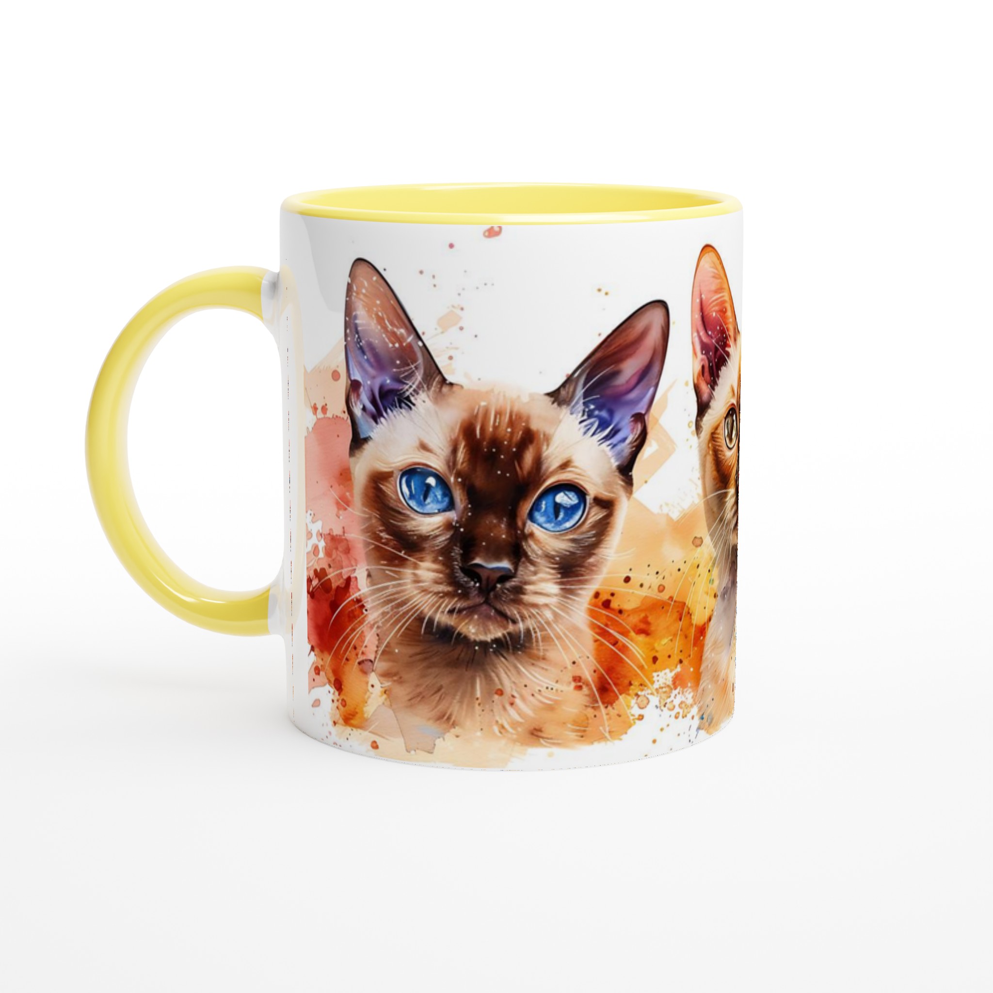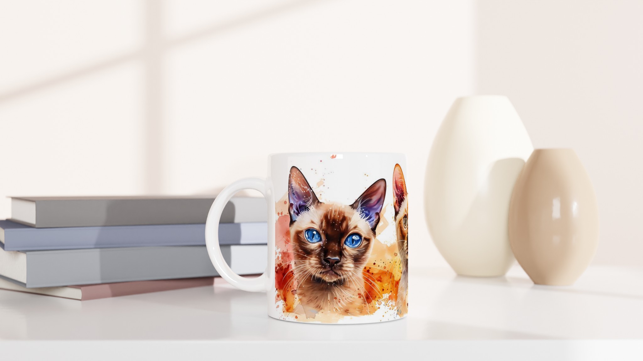 Vakna upp med stil med vår charmiga keramiska mugg, som förvandlar varje sipp till en konstnärlig upplevelse. Med en lekfull akvarellillustration av tre katter med slående blå ögon och färgstarka stänk, blir denna mugg snabbt en vardagsfavorit. Perfekt för morgonkaffet, kvällens varma choklad eller när du bara vill njuta av en kopp te.
