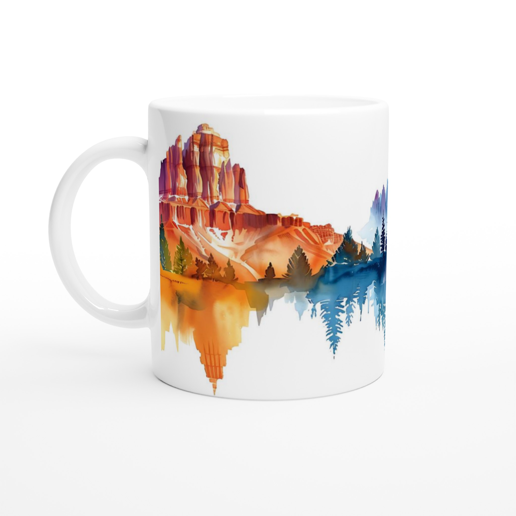 Akvarell Landskap Keramikmugg – Färgstark Berg & Skog Design i Välj din nyans (11oz)