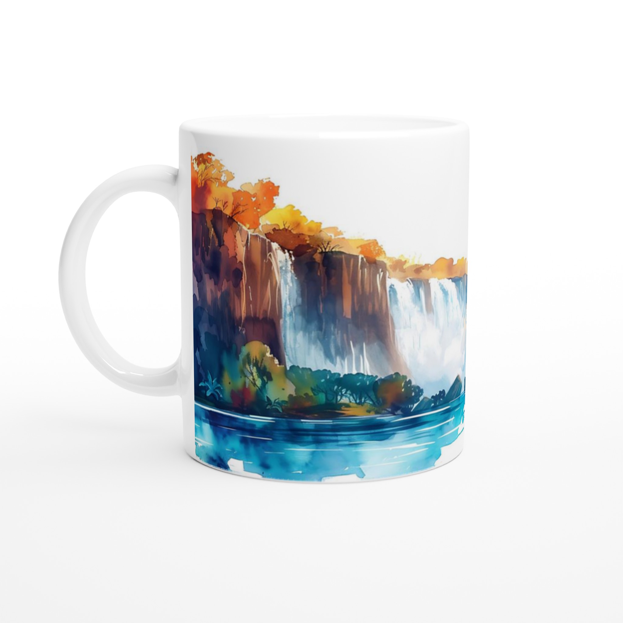 Inspirerad av den lugnande skönheten hos akvarellmålningar, förvandlar denna mugg varje sipp till en konstnärlig upplevelse. Med sina mjuka övergångar av blått, orange och lila, speglar den en hisnande solnedgång över mäktiga vattenfall, vilket skapar en känsla av lugn och kreativitet i din vardag.
