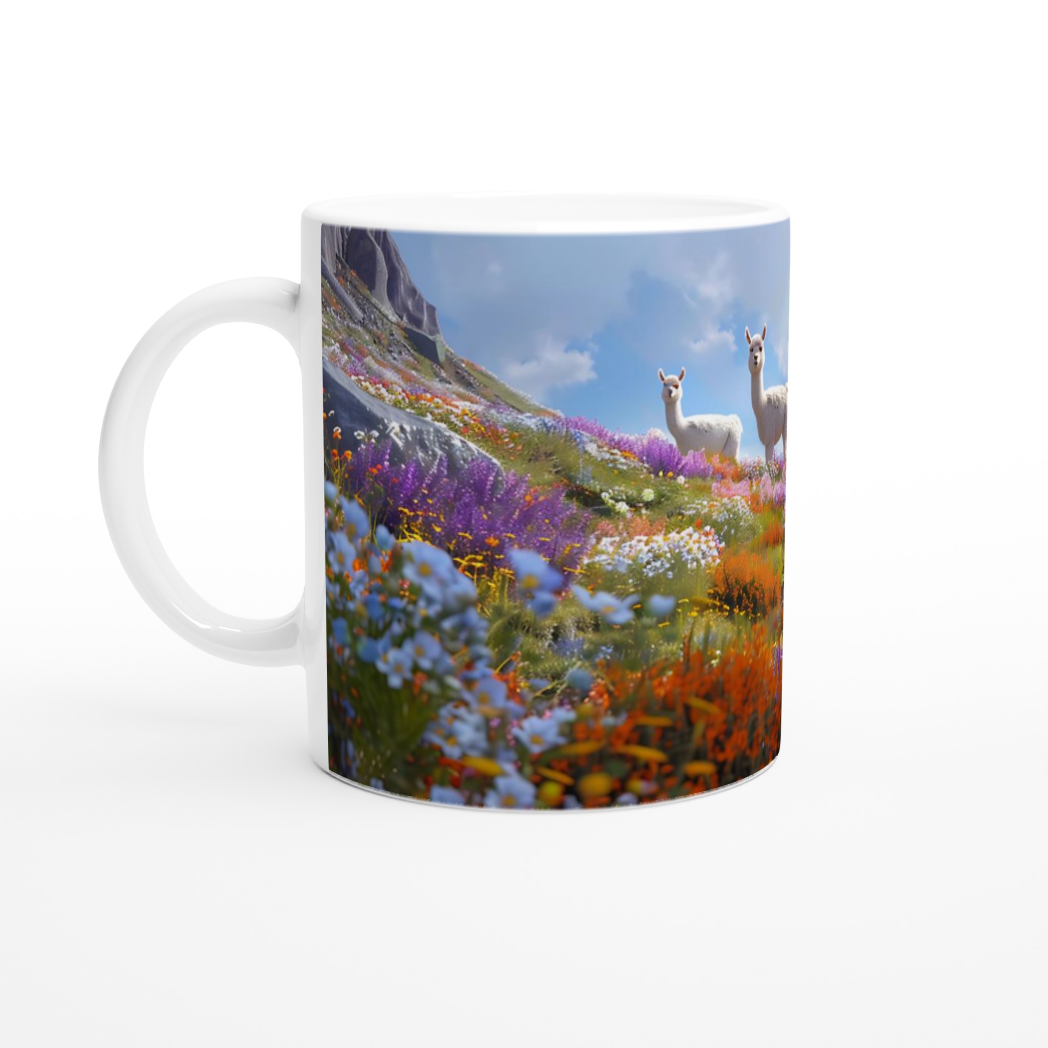 Inspirerad av Alpernas alpängar och dess charmerande alpackor, fångar denna mugg den förtrollande skönheten av ett levande bergslandskap. Den blanka vita ytan ger ett skarpt och levande tryck som verkligen sticker ut, oavsett om det är en personlig design, ett roligt citat eller en present till någon du tycker om. Välj bland en palett av sju jordnära nyanser för att matcha din personliga stil – ”Ceramic White”, ”Ceramic Yellow”, ”Ceramic Pink”, ”Ceramic Green”, ”Ceramic Red”, ”Ceramic Black”, eller ”Ceramic Blue”.