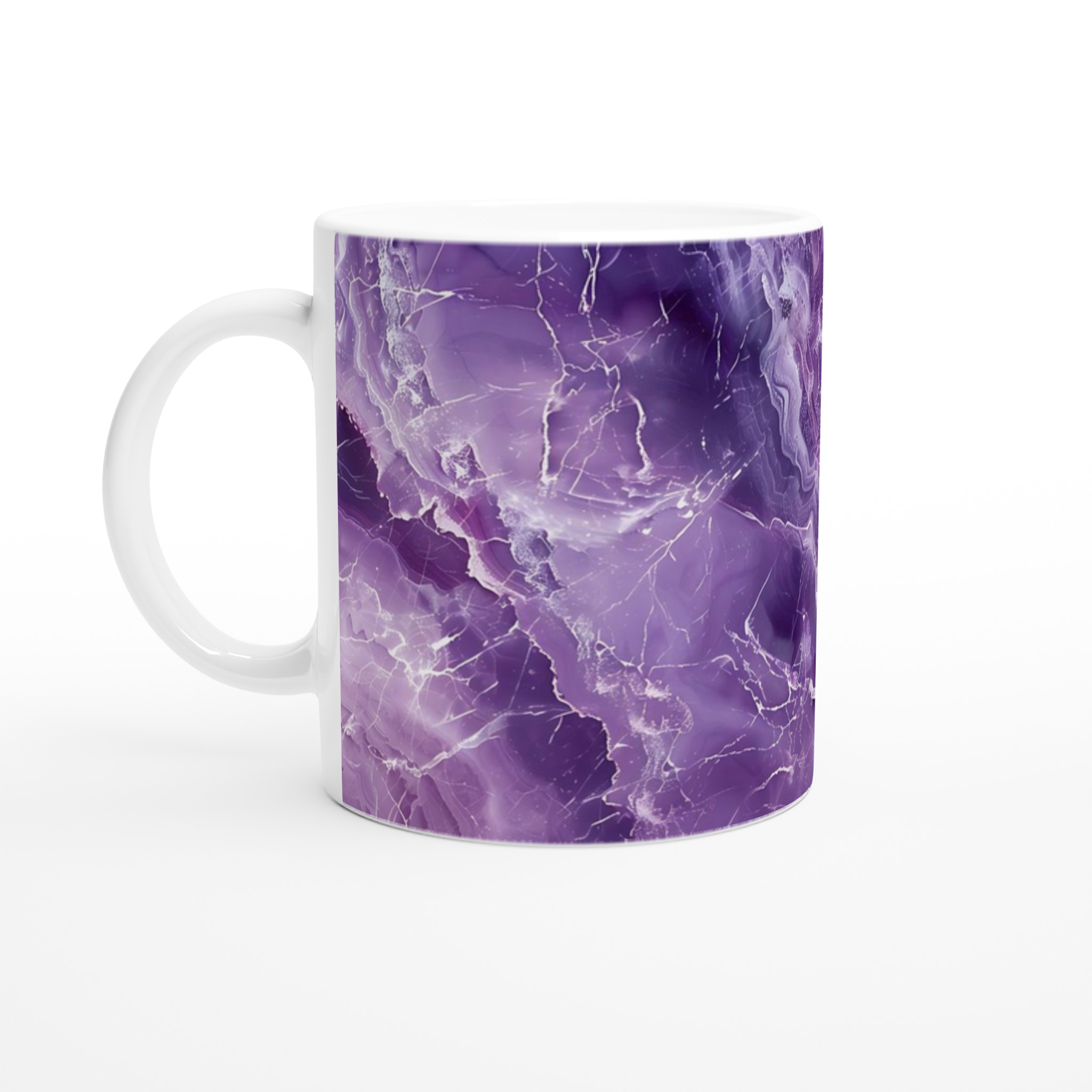Inspirerad av ametistens lugnande skönhet och den eteriska magin i marmorerade konstverk, erbjuder denna mugg en upplevelse utöver det vanliga. Den blanka vita ytan ger ett skarpt och levande tryck som verkligen sticker ut, oavsett om det är en personlig design, ett roligt citat eller en present till någon du tycker om. Välj mellan en palett av lugnande keramikfärger för att matcha din personliga stil och skapa den perfekta koppen för avkoppling.
