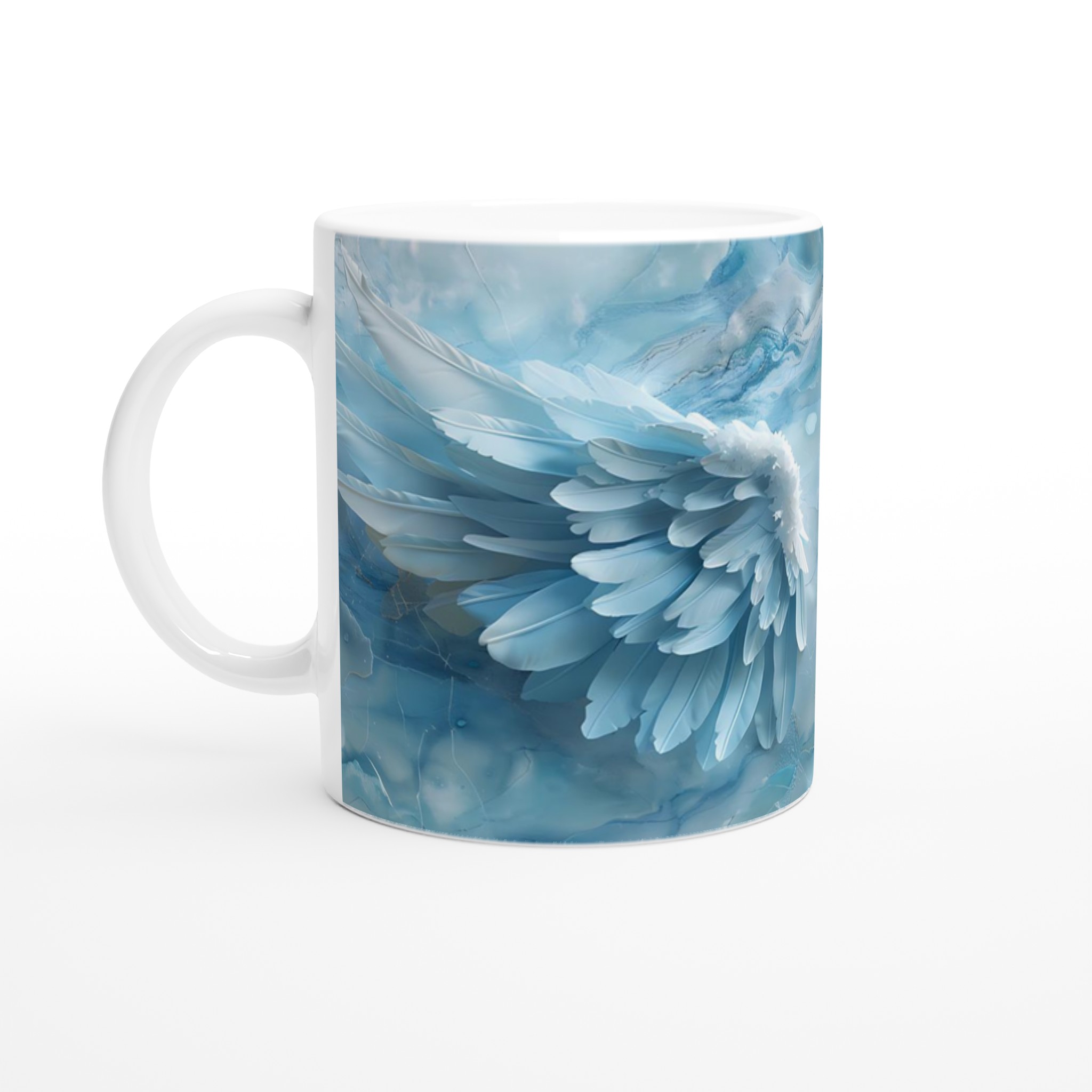 Låt dig svepas med av den eteriska skönheten från himmelska änglavingar, presenterade i lugnande nyanser av isblått och drömskt vitt. Denna mugg är inte bara en dryckesbehållare, utan ett konstverk som förmedlar en känsla av fred och inspiration. Välj din favorit bland sju jordnära nyanser för att matcha ditt humör och din inredning: klassisk Ceramic White, solig Ceramic Yellow, mjuk Ceramic Pink, naturlig Ceramic Green, passionerad Ceramic Red, elegant Ceramic Black eller lugnande Ceramic Blue.