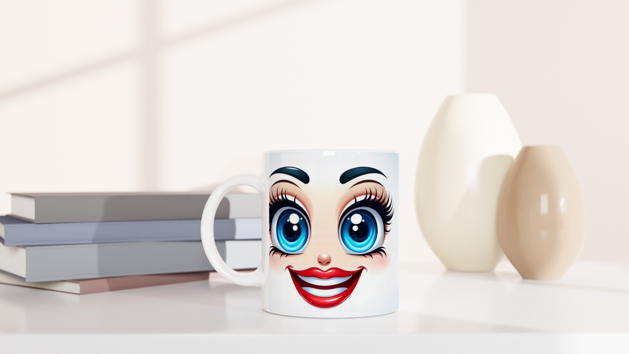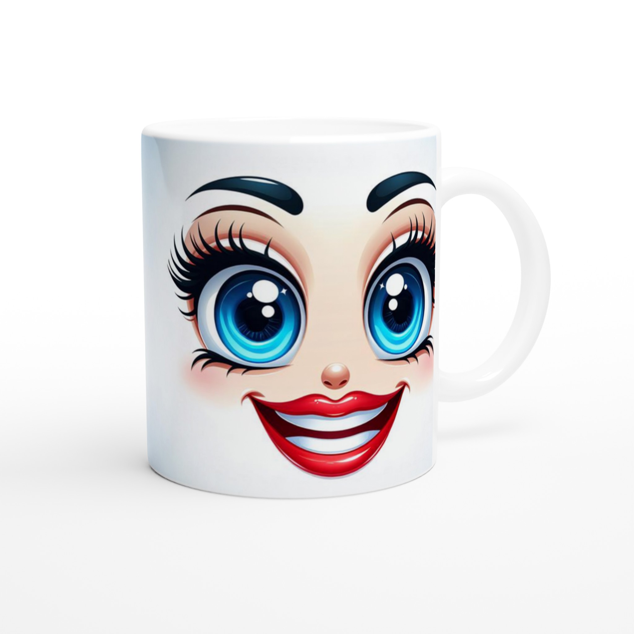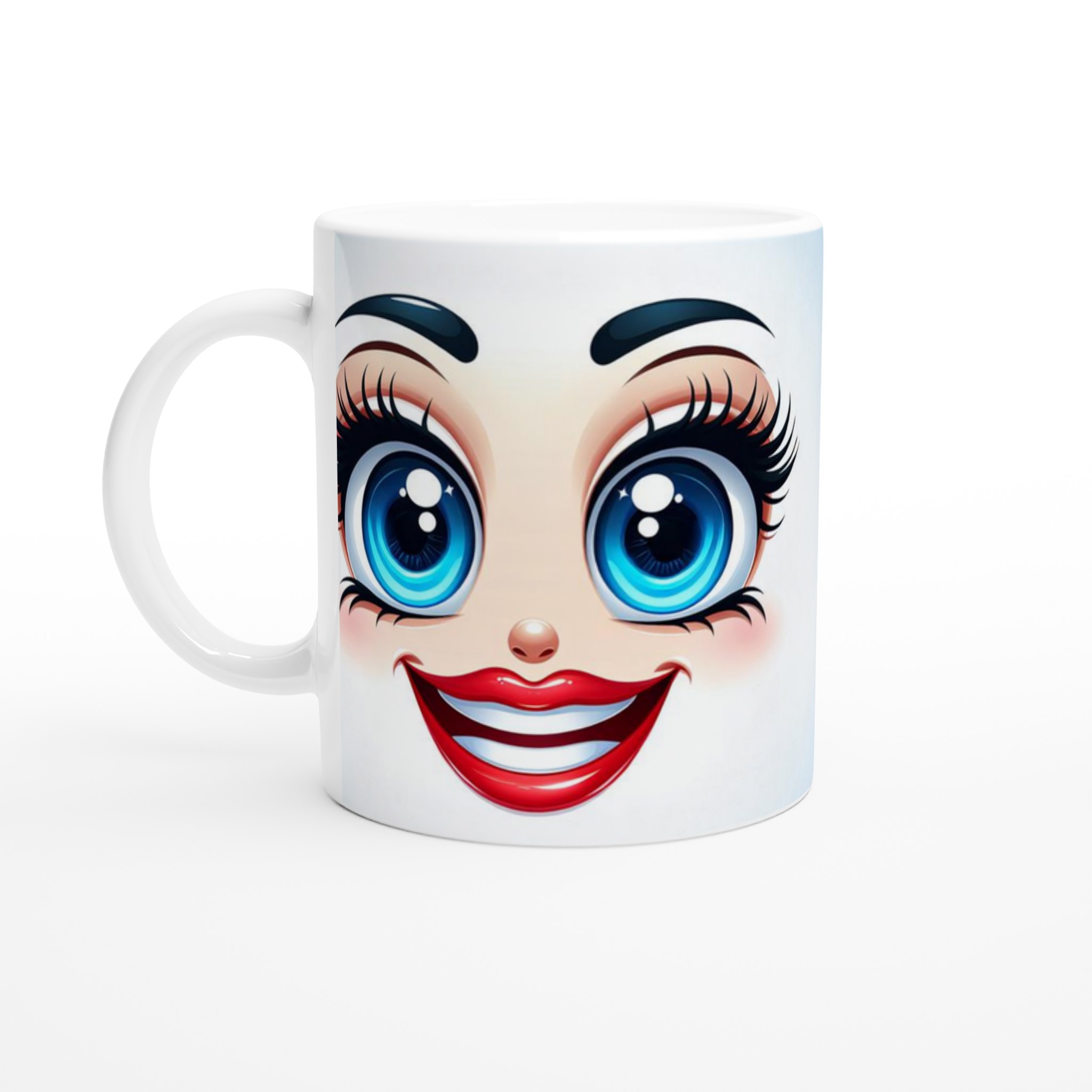 Väck dina drycker till liv med en mugg som utstrålar lekfull charm och glädje! Denna mugg är prydd med ett förtrollande anime-inspirerat ansikte med stora, glittrande blå ögon och ett brett, inbjudande leende – en design som garanterat sprider glädje och karaktär till varje fikastund. Vare sig du är en anime-entusiast, älskar söta uttryck, eller bara vill ha något som lyser upp din dag, är denna mugg det perfekta valet. Den är idealisk för att ge din morgonrutin en extra dos personlighet eller som en omtänksam present till någon som uppskattar unika, uttrycksfulla detaljer.