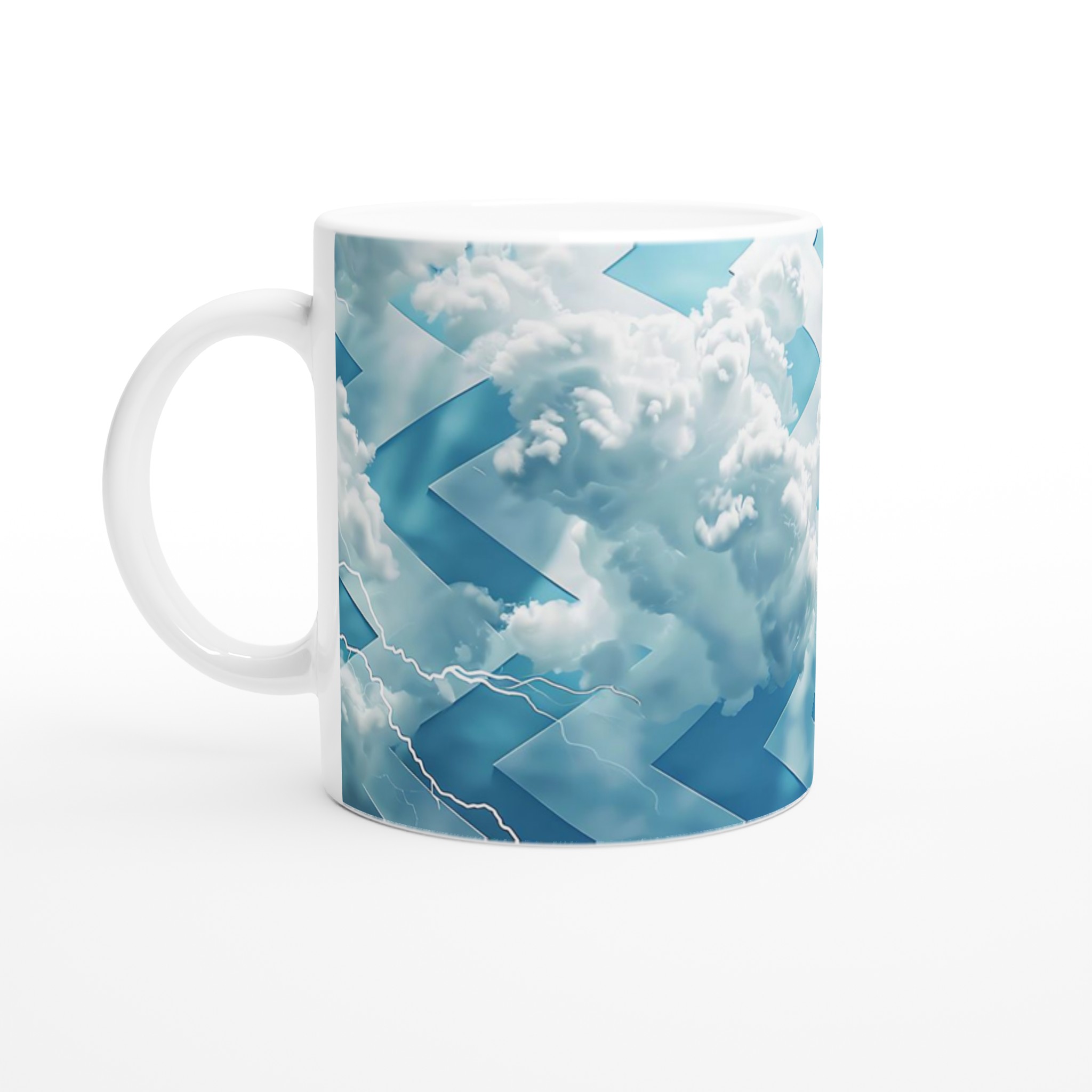 Inspirerad av den dramatiska skönheten hos en åskhimmel, med moln som virvlar och blixtar som lyser upp, ger denna mugg din dryck en känsla av storslagenhet. Den blanka ytan ger ett skarpt och levande tryck som verkligen sticker ut, oavsett om det är en personlig design, ett roligt citat eller en present till någon du tycker om.