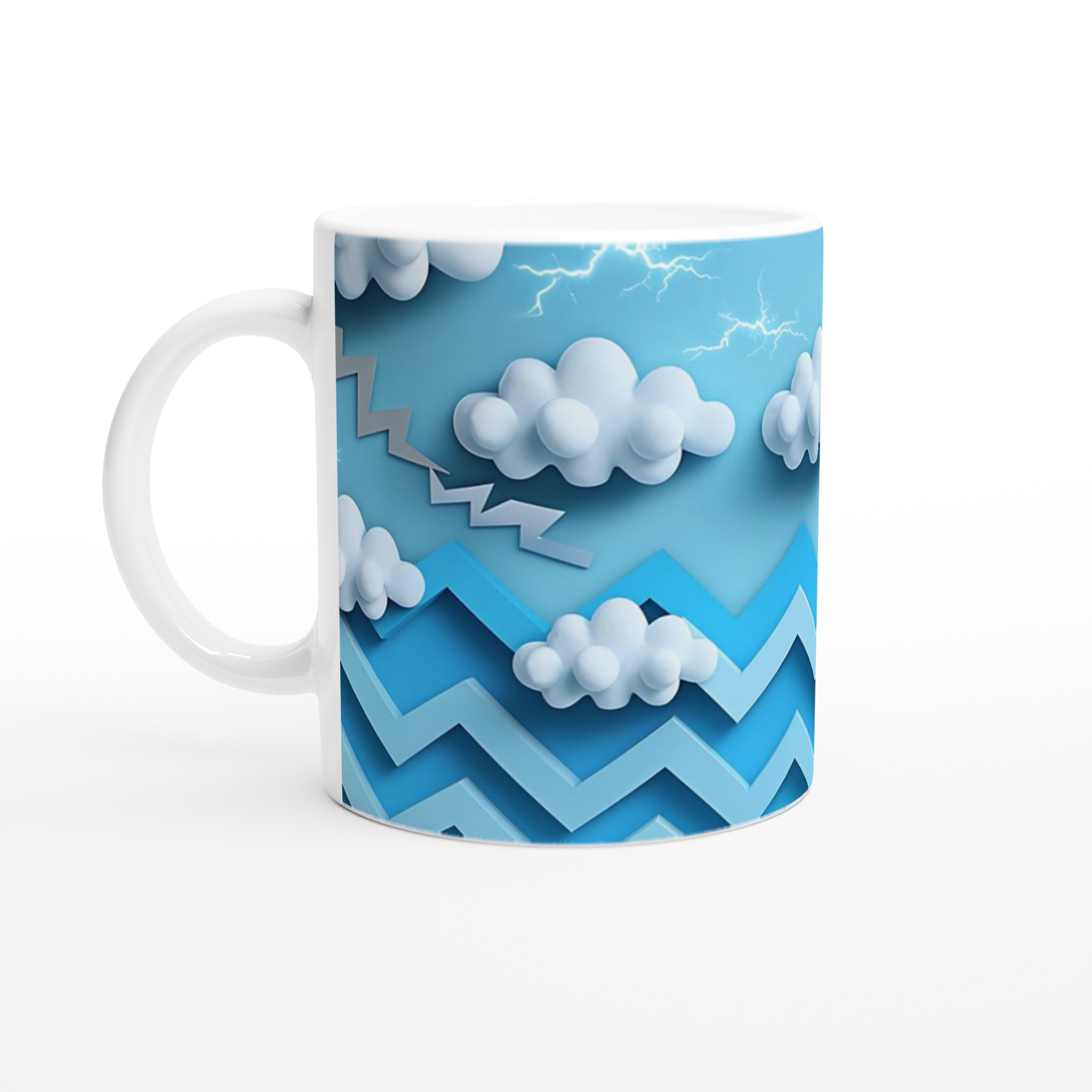 Vår keramikmugg är inspirerad av ett lekfullt åskväder med moln och blixtar i nyanser av blått, vilket ger en unik och dynamisk känsla. Välj bland en palett av sju livfulla färger, inklusive klassisk Ceramic White, solig Ceramic Yellow, charmig Ceramic Pink, lugn Ceramic Green, passionerad Ceramic Red, elegant Ceramic Black, och himmelsblå Ceramic Blue. Skapa din egen personliga favorit eller ge bort en omtänksam present som speglar mottagarens unika stil. Muggen är tillverkad av högkvalitativ keramik som tål både diskmaskin och mikrovågsugn utan att tappa färg eller glans. Den håller formen och färgerna tvätt efter tvätt – en riktig vardagsfavorit som består.