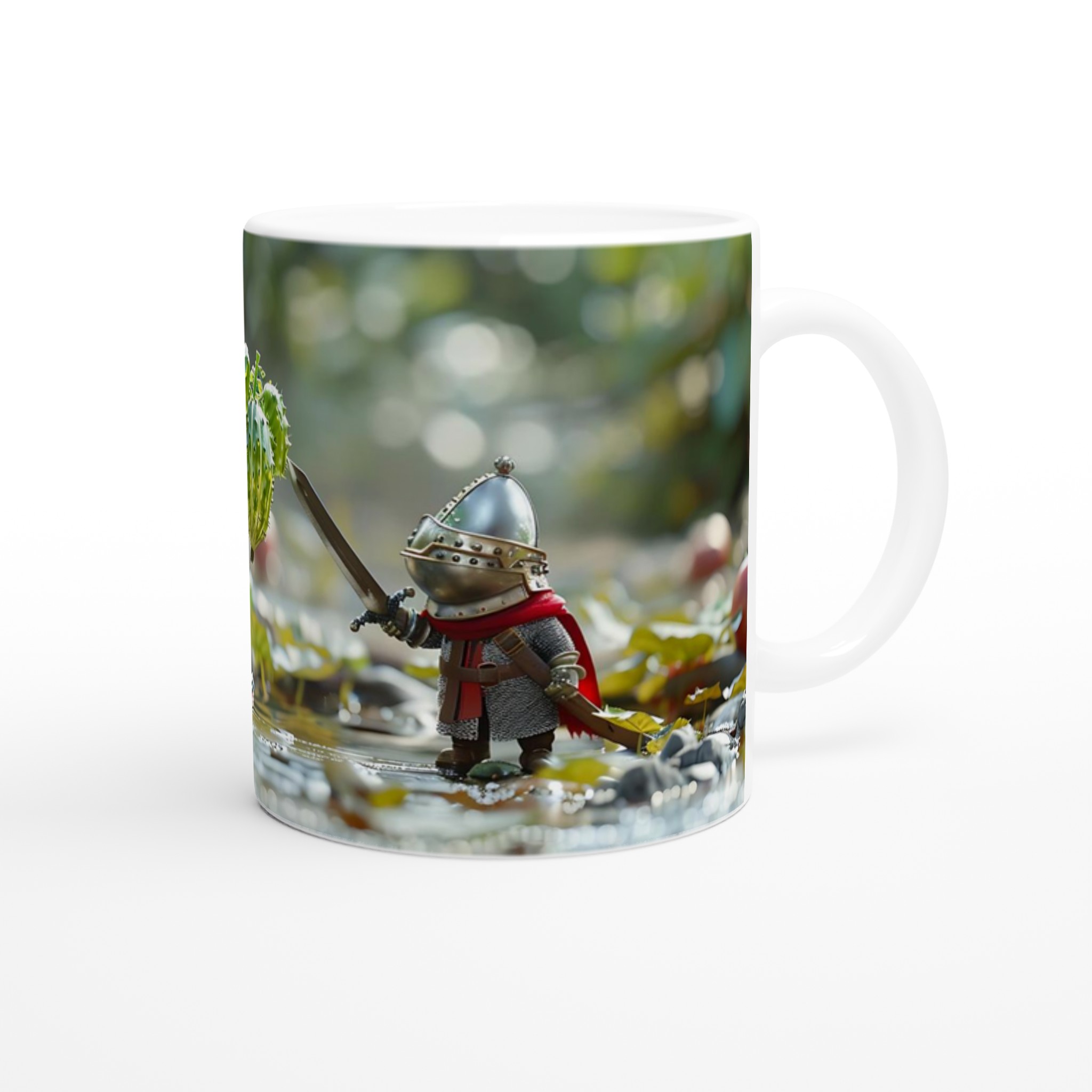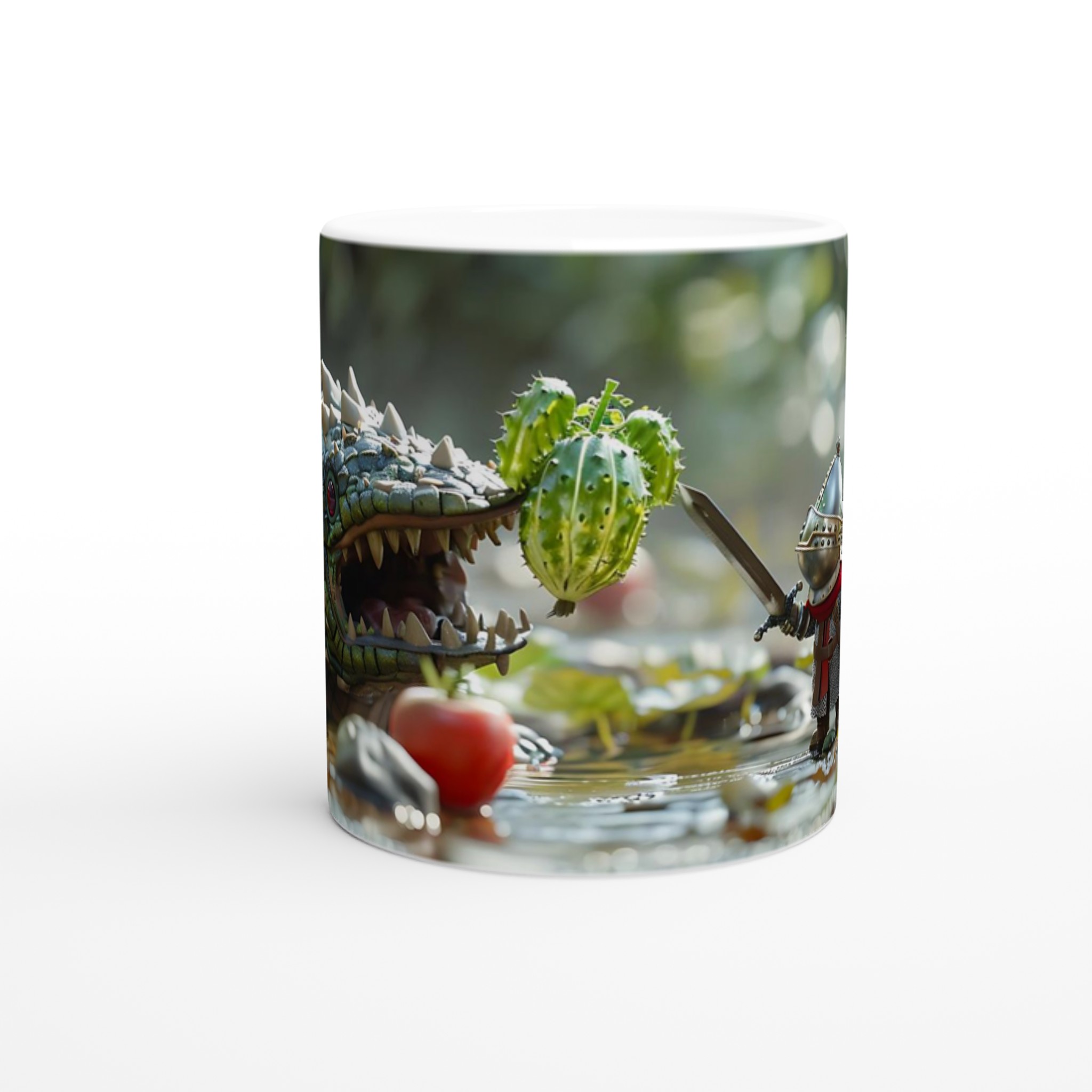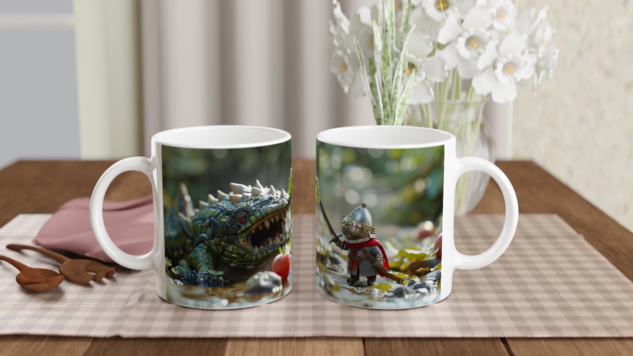 Fånga din inre äventyrare varje morgon med vår ”Äventyrlig Keramisk Mugg”. Denna lekfulla design, inspirerad av en sagovärld där en modig riddare möter en vänlig drake i en frodig grönskande miljö, förvandlar varje sipp till ett episkt ögonblick. Med en färgpalett som speglar naturens lugn och en hint av mystik, är denna mugg perfekt för dig som älskar fantasi och vill addera en touch av magi till din dag.