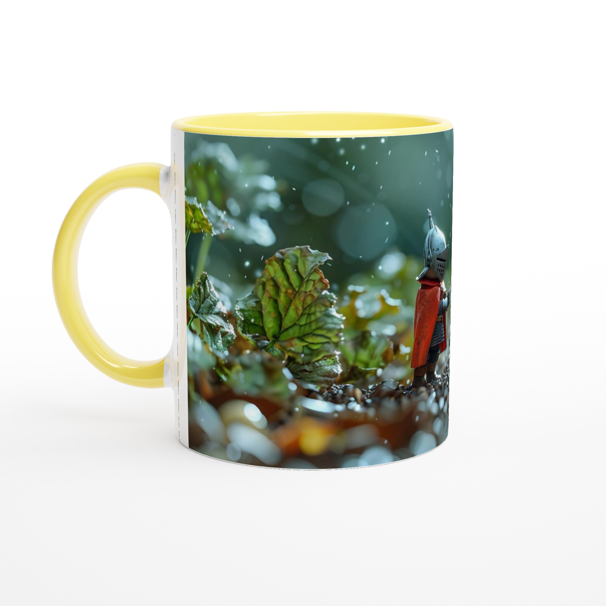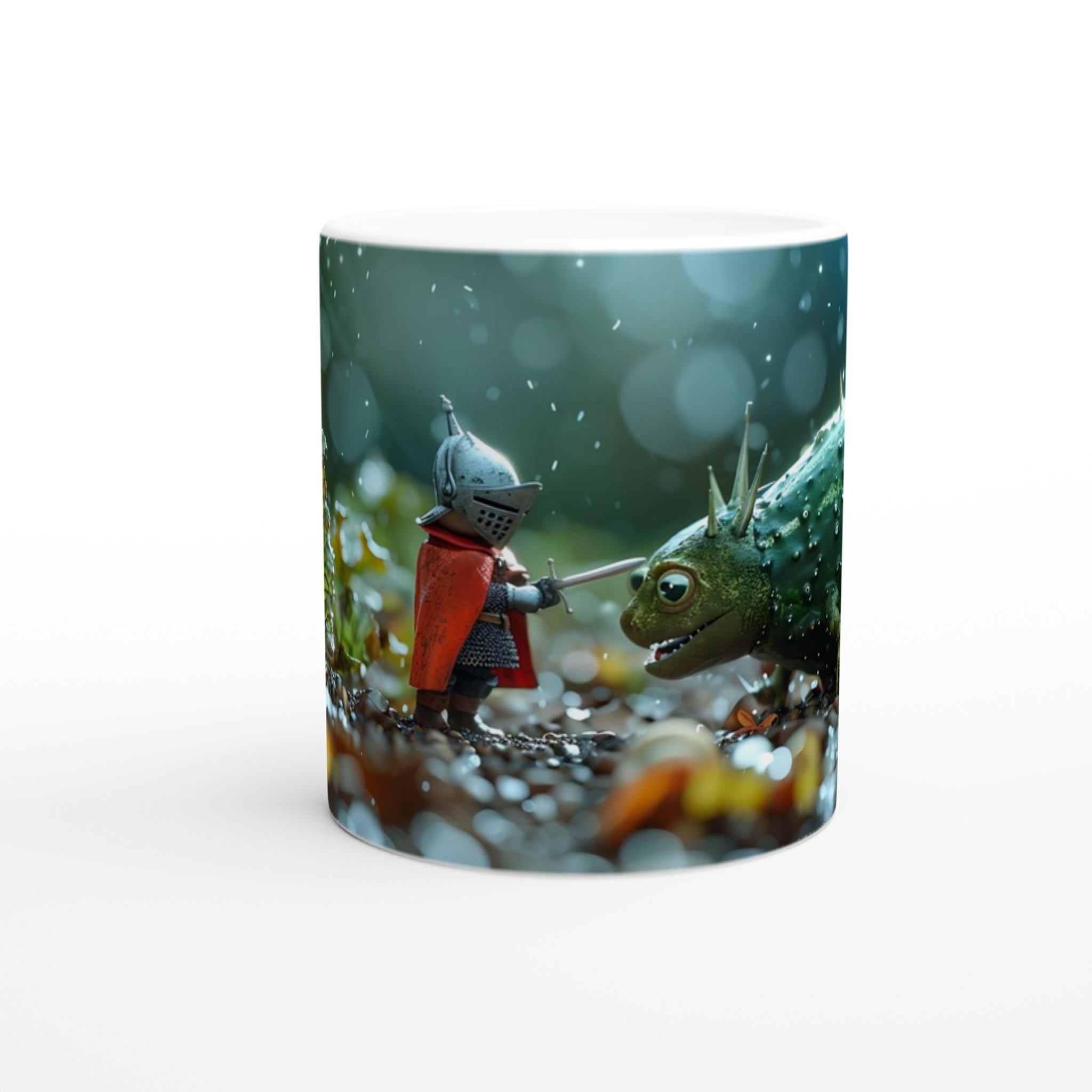 Lyft din fikastund med denna äventyrliga keramiska mugg, som tar dig med till en förtrollad värld där små riddare möter fascinerande varelser. Perfekt för morgonkaffet, kvällens varma choklad eller när du bara vill njuta av en kopp te medan du drömmer dig bort till sagornas land. Den blanka ytan framhäver de klara och levande färgerna i denna unika design, som håller sig fina även efter många turer i mikron och diskmaskinen.