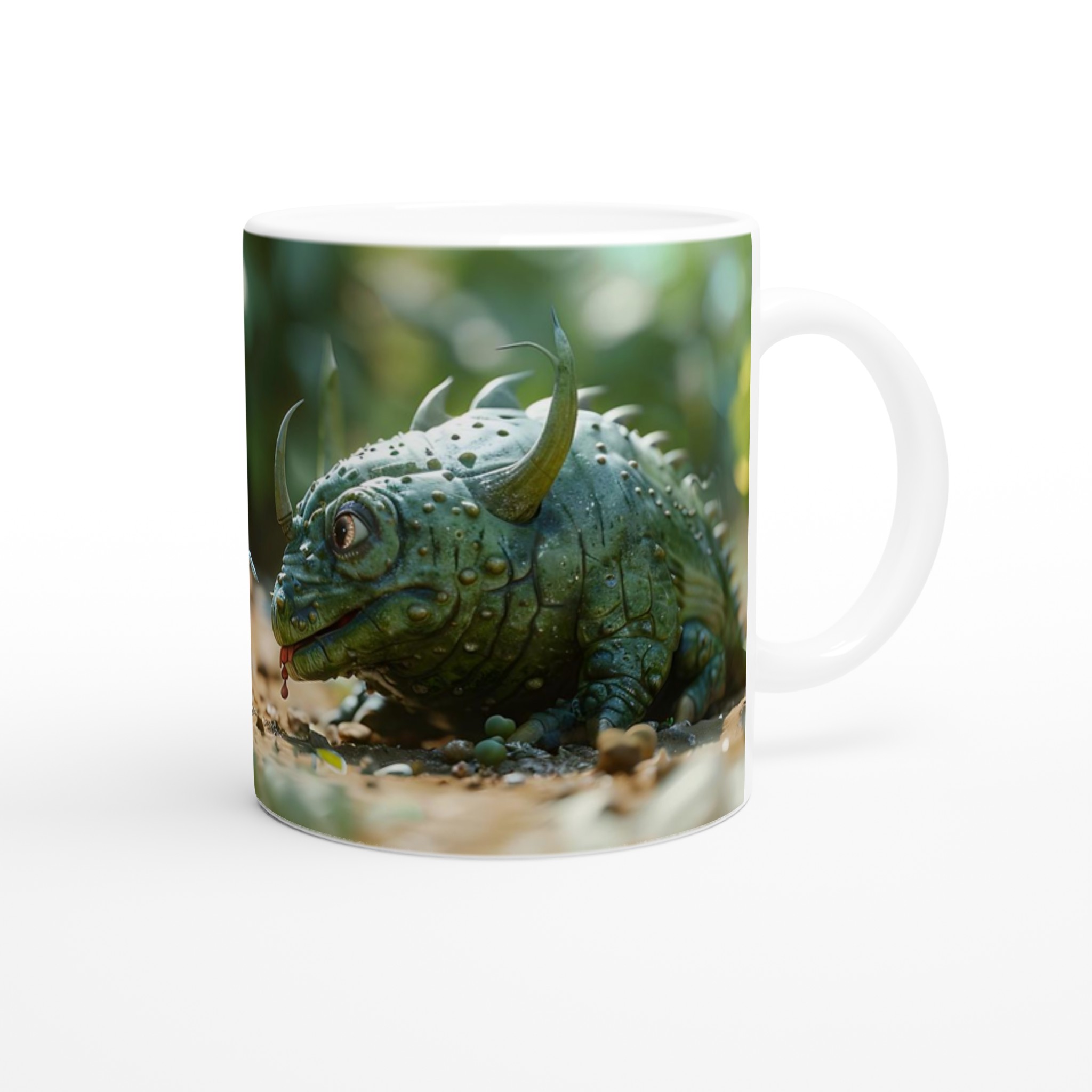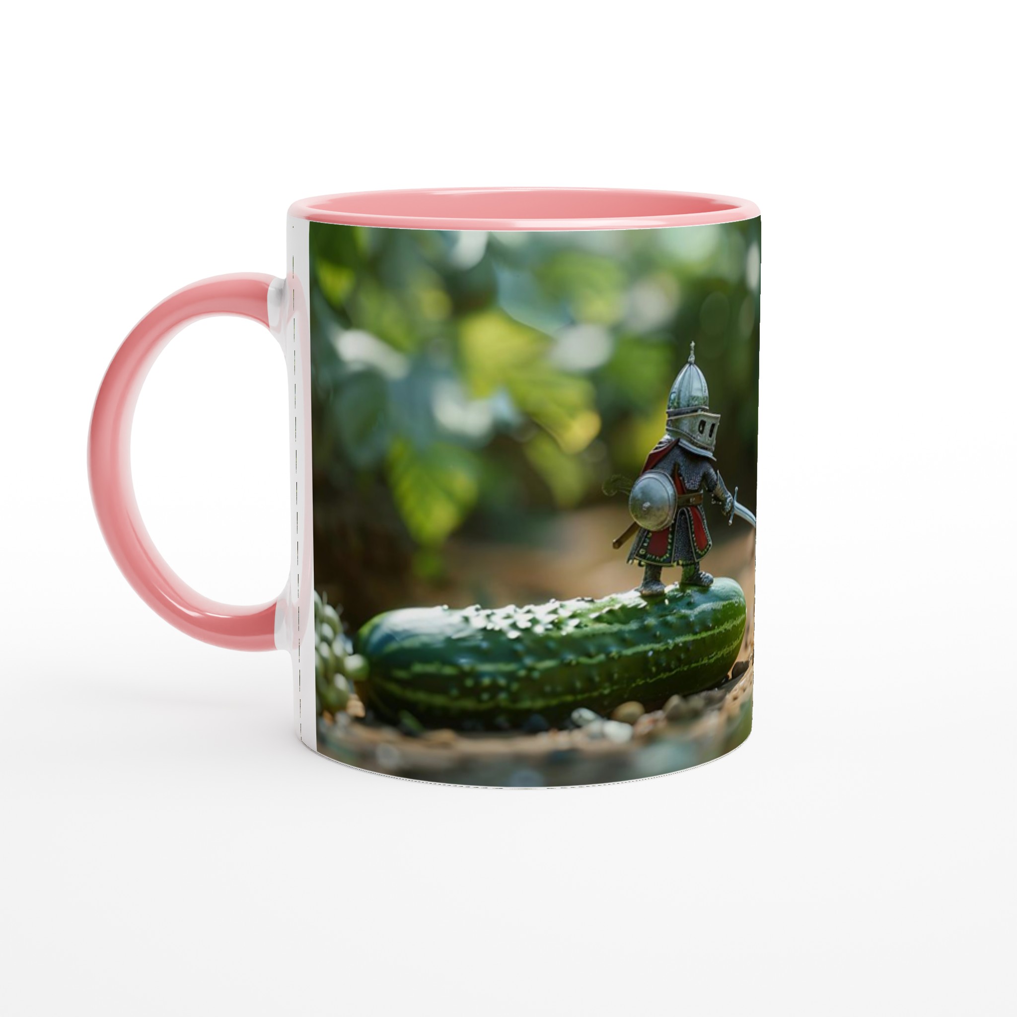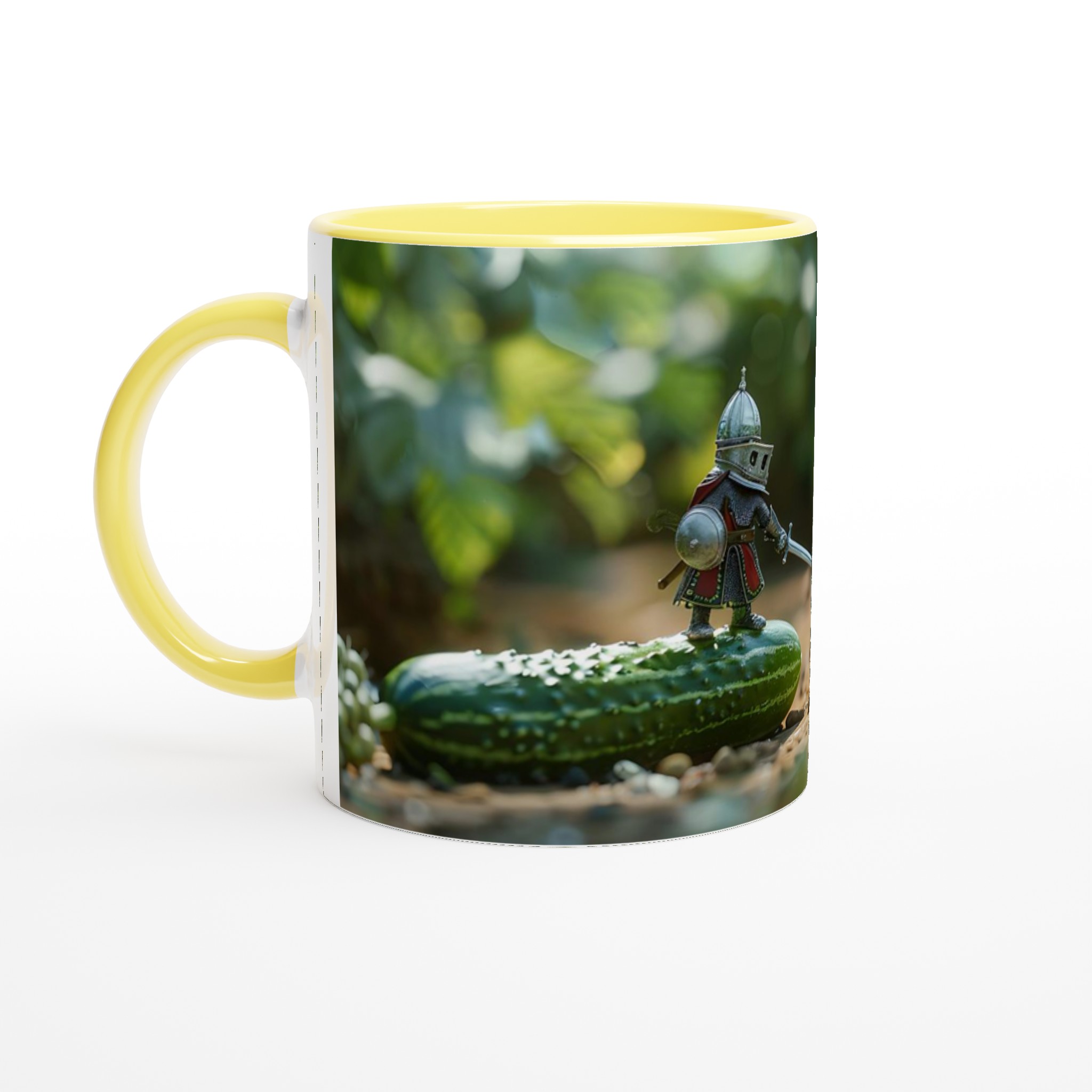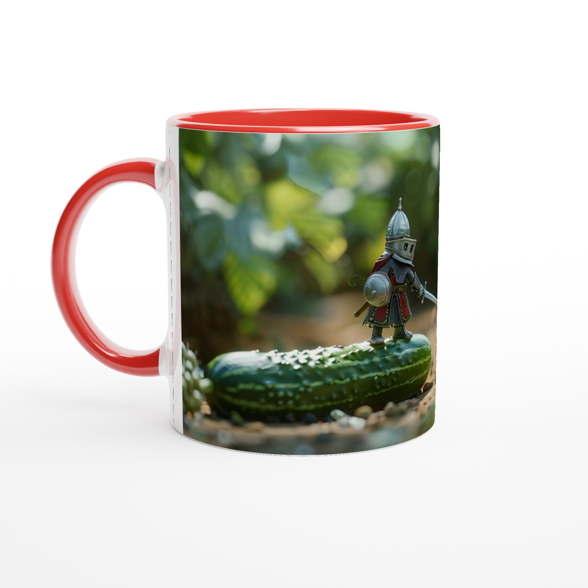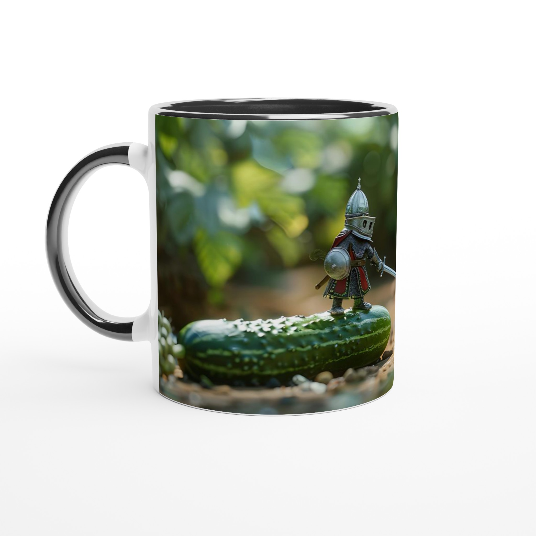 Ge din dag en dos av äventyr med denna unika keramiska mugg! Föreställ dig den tappre gurksoldaten som modigt möter den stora drakgurkan – en scen som garanterat väcker fantasin till liv varje gång du tar en klunk. Denna stilrena keramiska mugg blir snabbt en vardagsfavorit, perfekt för morgonkaffet, kvällens varma choklad eller när du bara vill njuta av en kopp te.