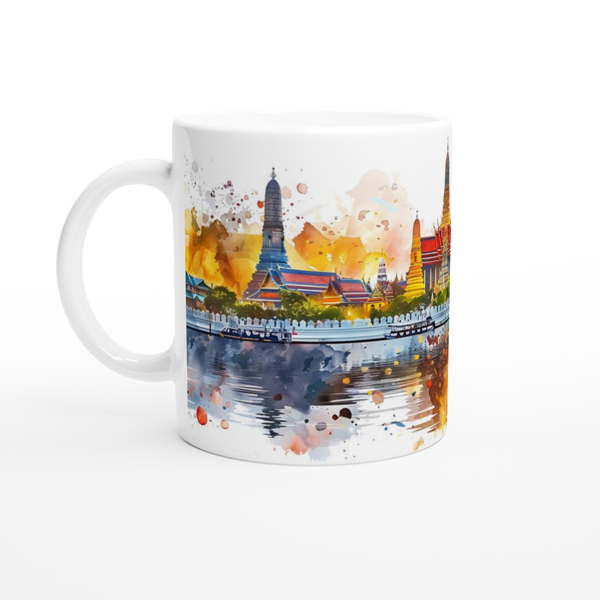 Fånga den pulserande energin och den storslagna skönheten i Bangkoks skyline med vår unika akvarellmugg. Varje detalj av stadens ikoniska arkitektur och det glittrande vattnet är omsorgsfullt återgivet med livfulla färger och en konstnärlig touch, perfekt för den som älskar resor, konst eller den thailändska kulturen. Det konstnärliga trycket ger en känsla av lugn och inspiration till varje klunk.