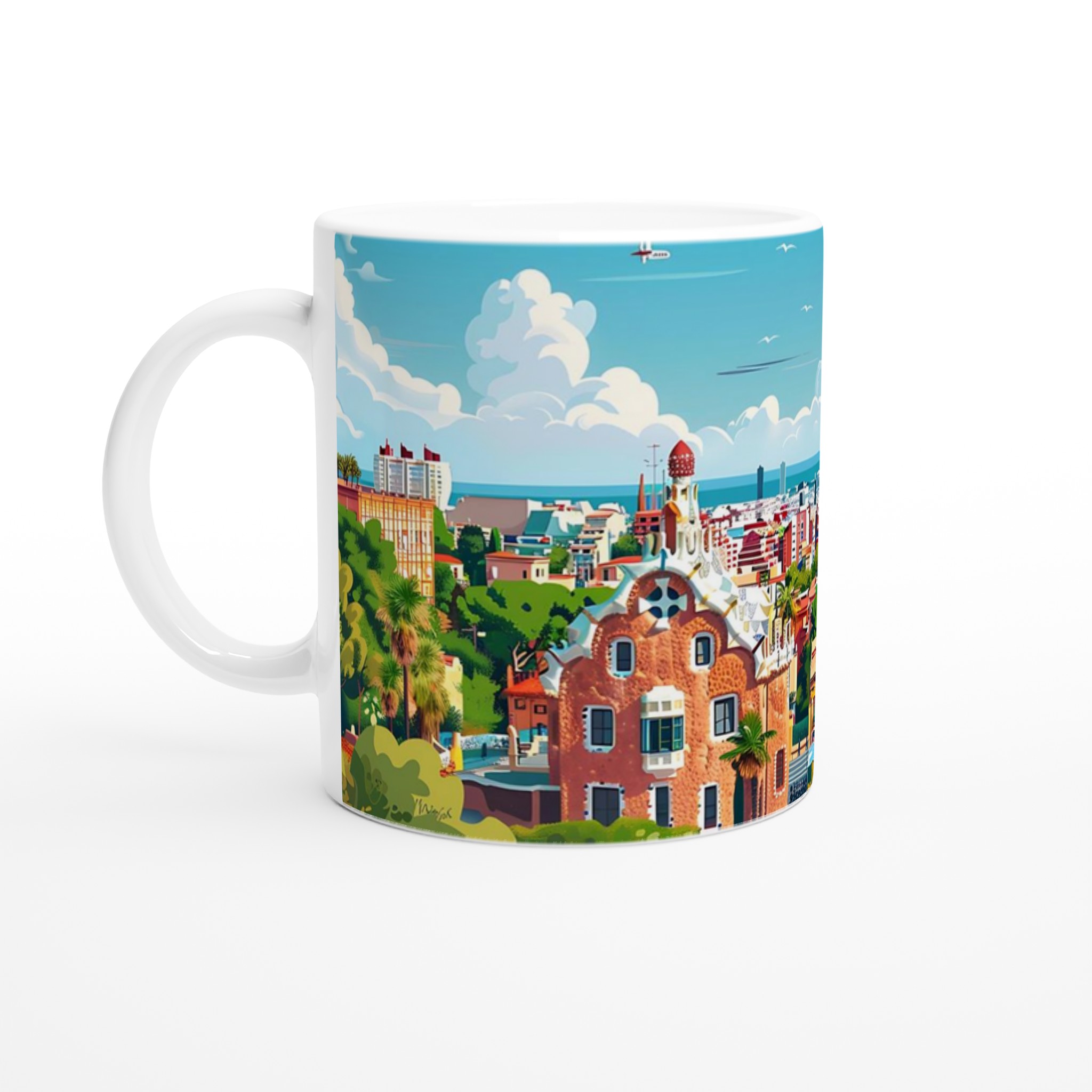 Inspirerad av Barcelonas soliga charm och arkitektoniska underverk, förvandlar denna mugg din fikapaus till en mini-semester. Med ett levande tryck som fångar stadens pulserande energi och unika estetik, är det mer än bara en mugg – det är ett konstverk för din hand.
