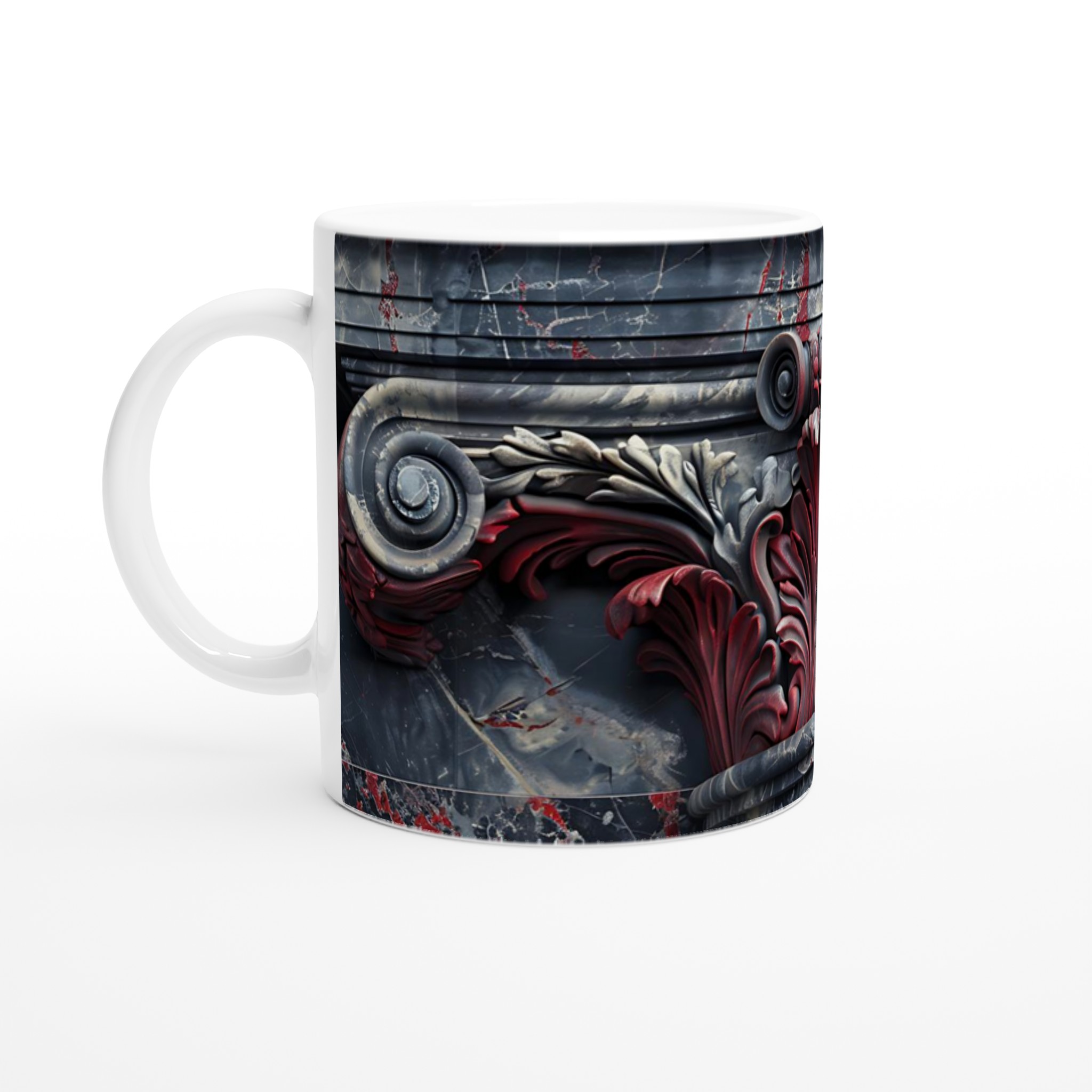 Inspirerad av den dramatiska skönheten hos barockens utsmyckningar, erbjuder denna keramiska mugg en unik touch till din dag. De rika, djupröda detaljerna mot en bakgrund av elegant grå marmor skapar en känsla av tidlös lyx och konstnärlig finess. Perfekt för den som uppskattar klassisk estetik med en modern twist, och vill addera karaktär till sin fikastund. Välj din favorit bland sju fantastiska färger för att matcha din stil.