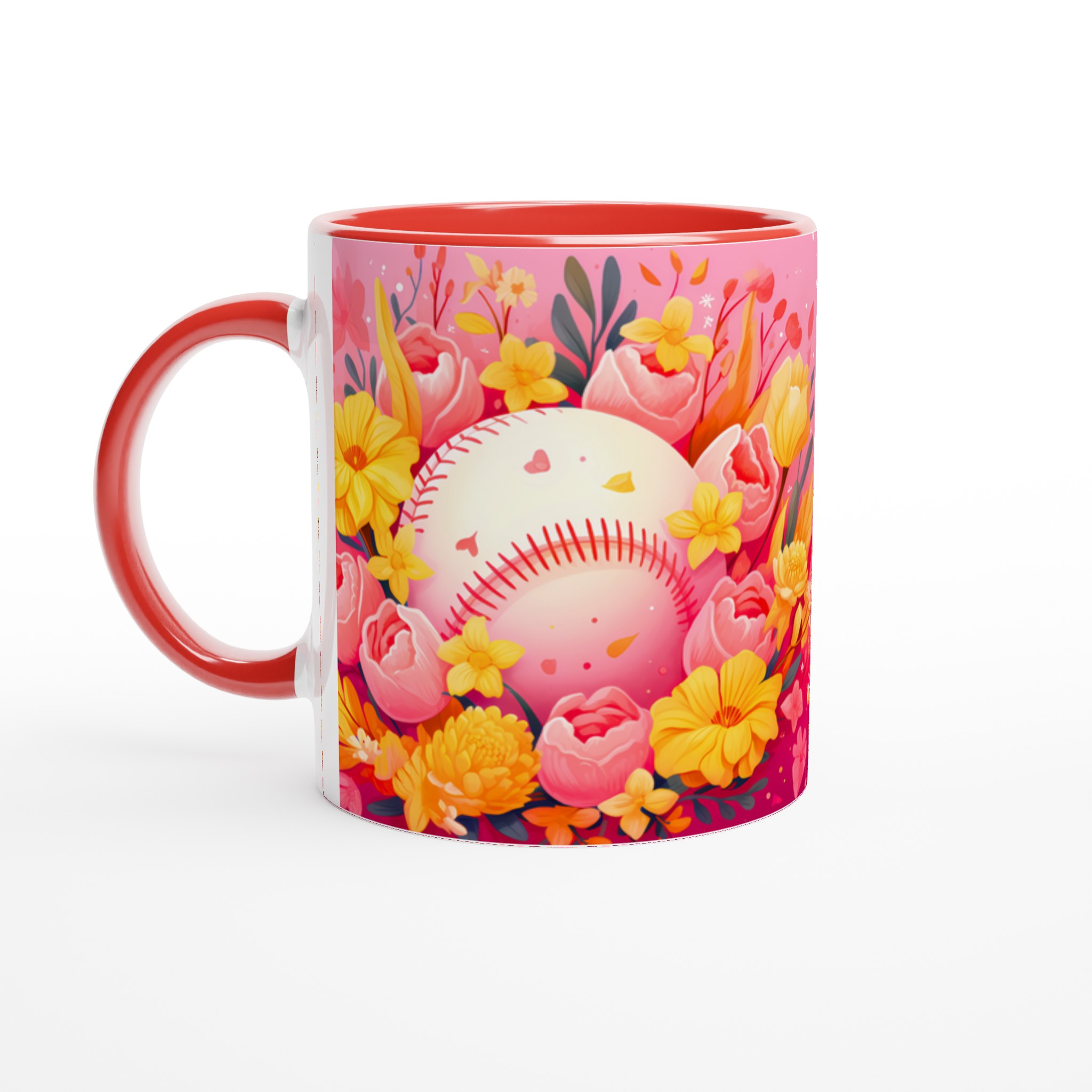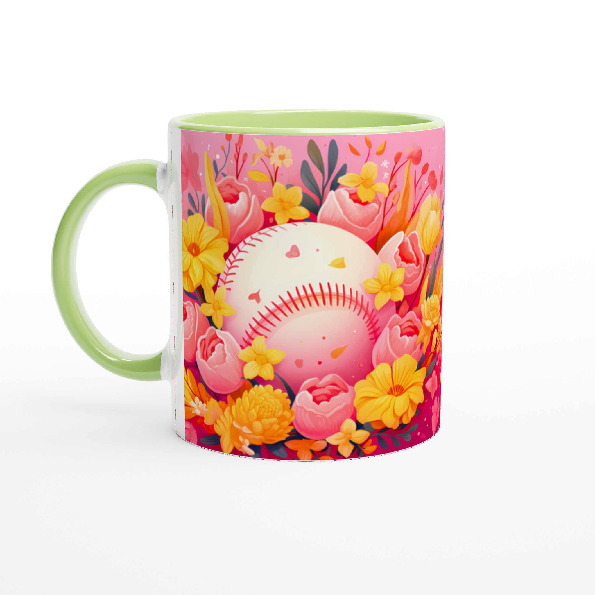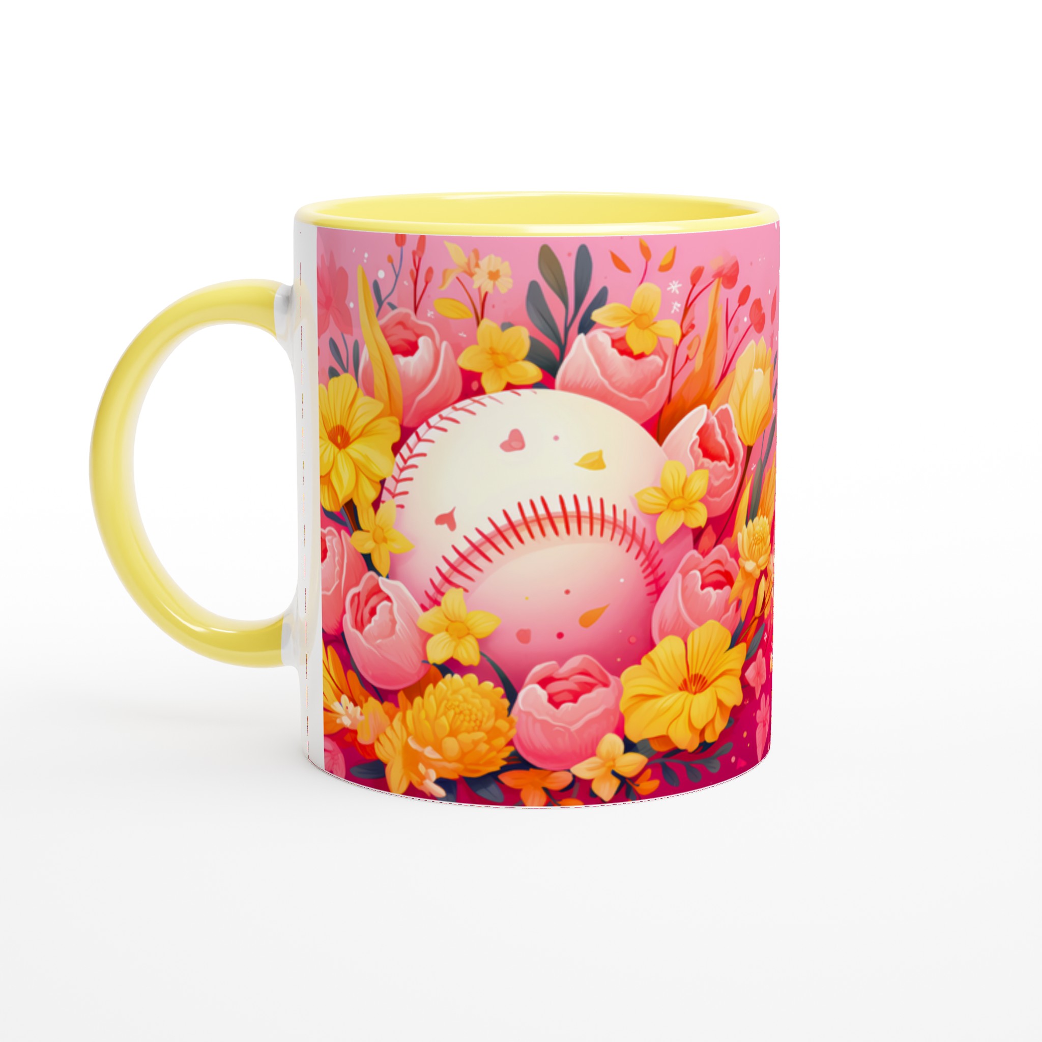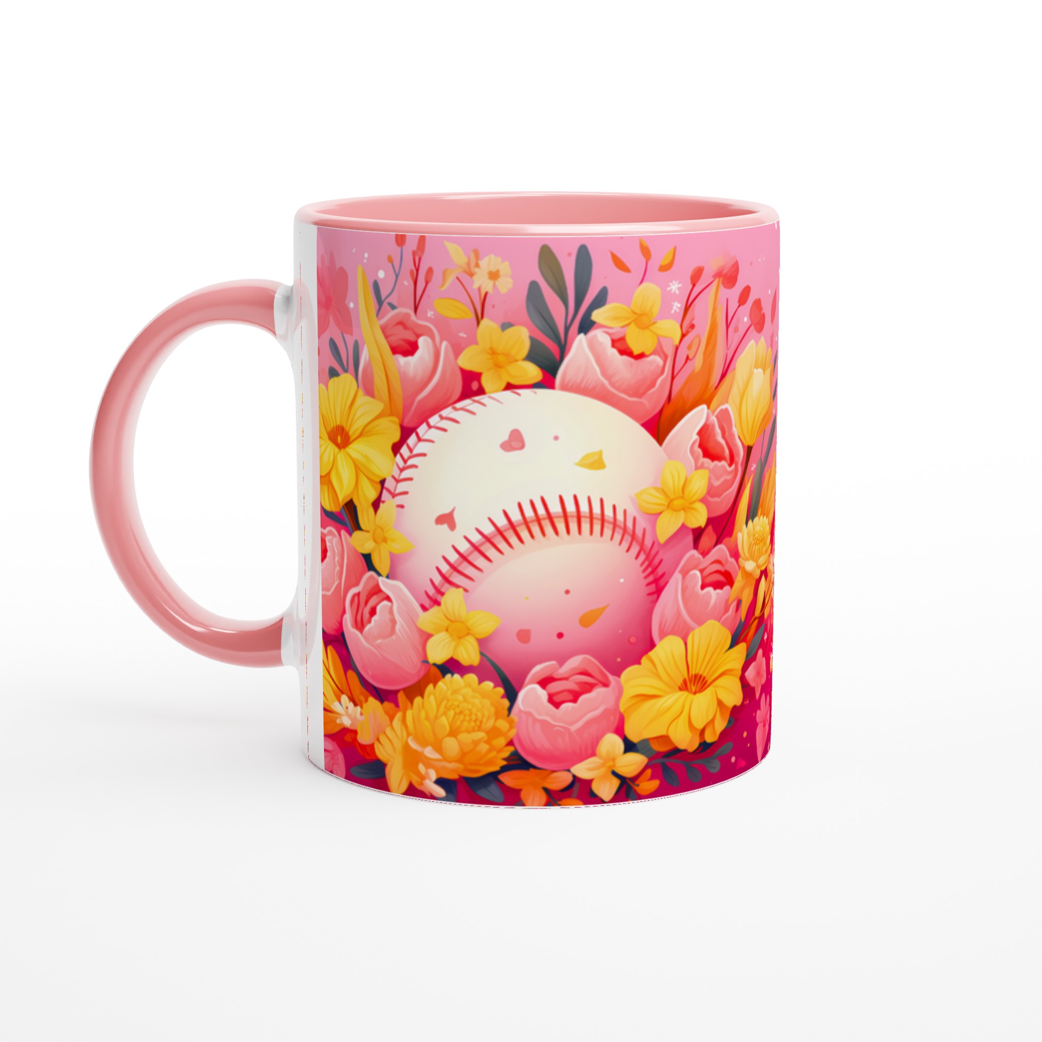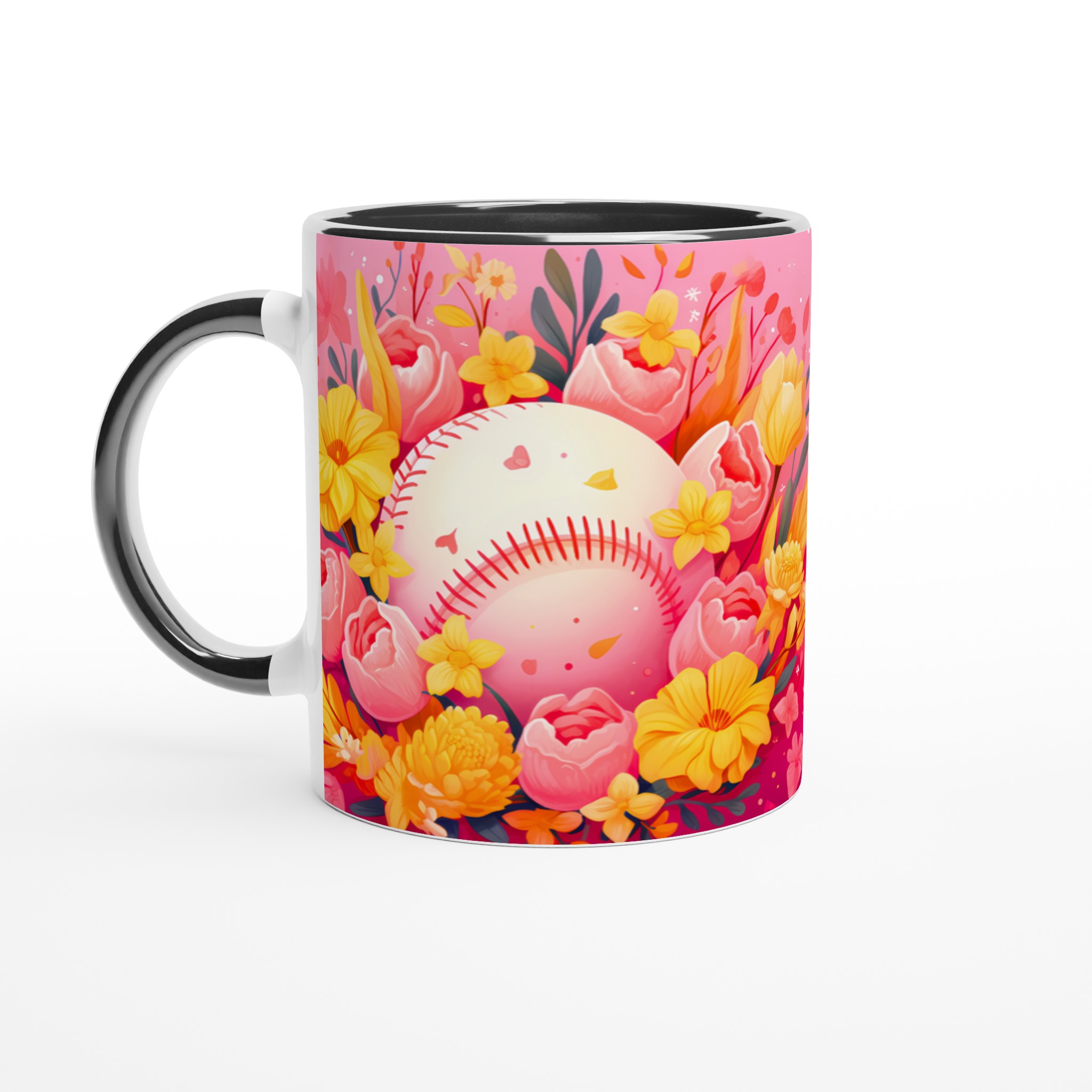 Fånga den glada känslan av vår och baseboll med denna charmiga keramiska mugg! Omsluten av en symfoni av rosa, gula och korallfärgade blommor, med en klassisk baseboll i centrum, blir denna mugg snabbt en vardagsfavorit. Perfekt för morgonkaffet, kvällens varma choklad eller när du bara vill njuta av en kopp te. Den blanka vita ytan gör att trycken framhävs med klara och levande färger, som håller sig fina även efter många turer i mikron och diskmaskinen.